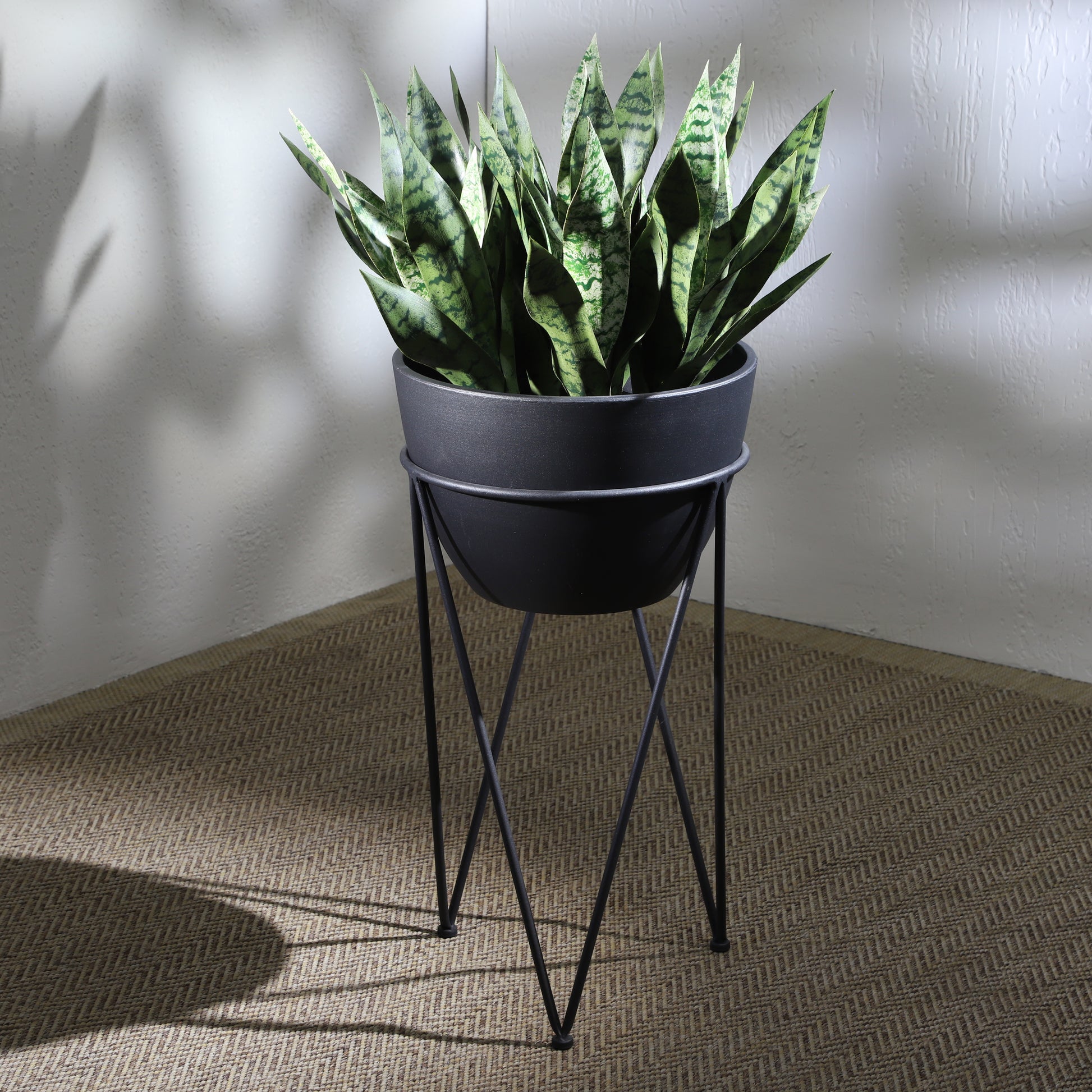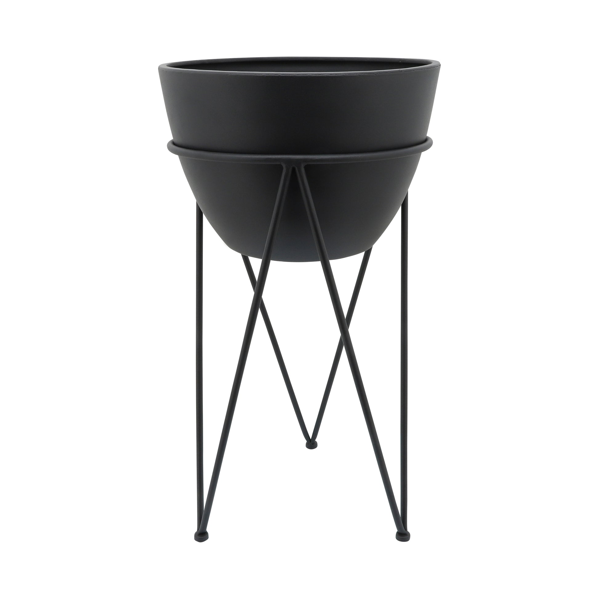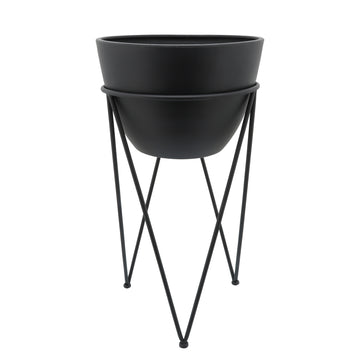 Metal 14" Planter In Stand, Black Black Iron
