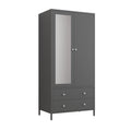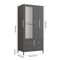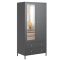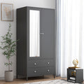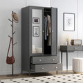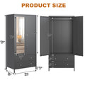 Metal Armoire Wardrobe Closet With 2 Drawers, Mirror Door And Hanging Rod, Metal Clothing Storage Cabinet, Garment Organizer With Magnetic Door Dark Grey Gray Bedroom Retro Steel