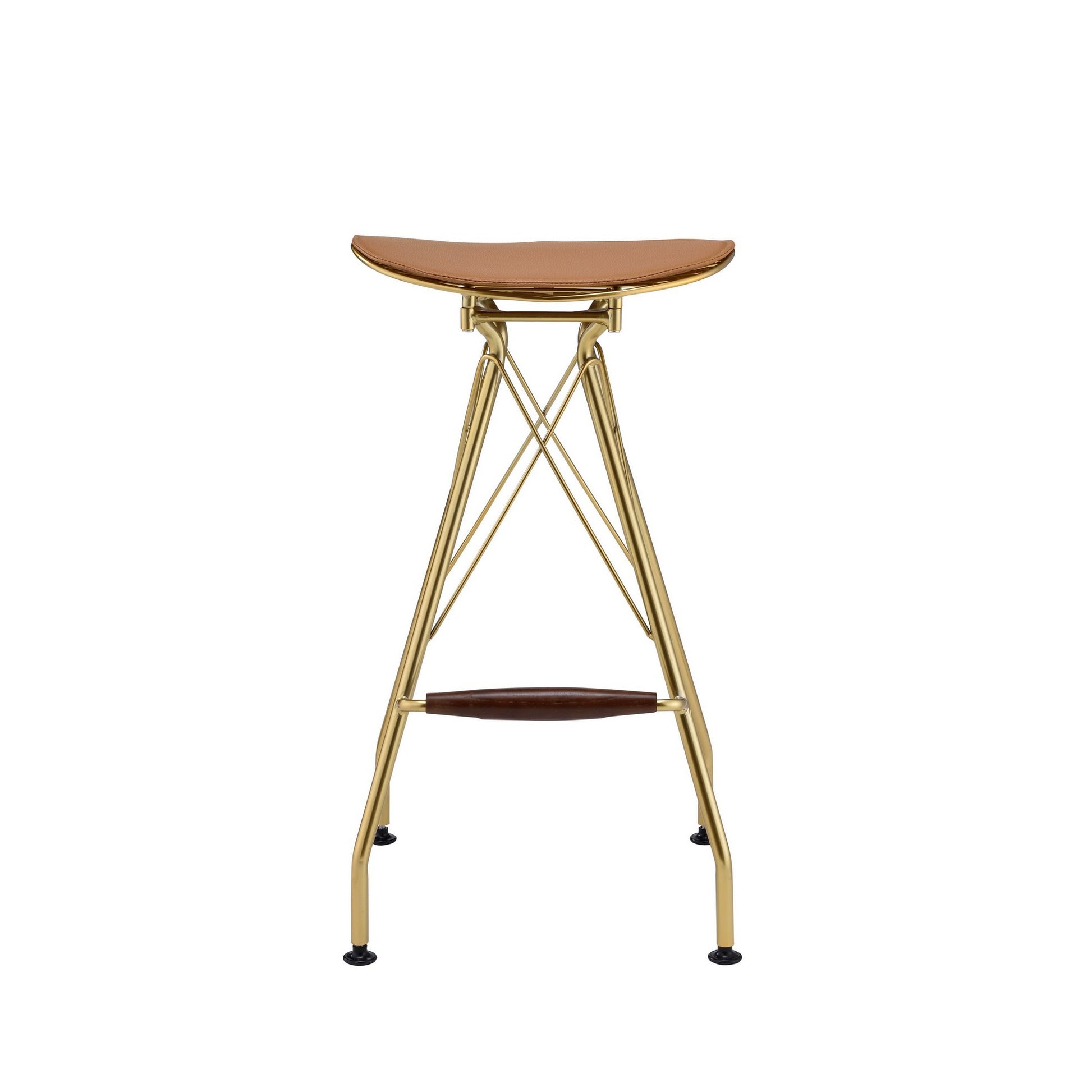 Metal Backless Barstool With Flared Legs And Braces Support, Set Of 2, Gold Gold Fabric Metal