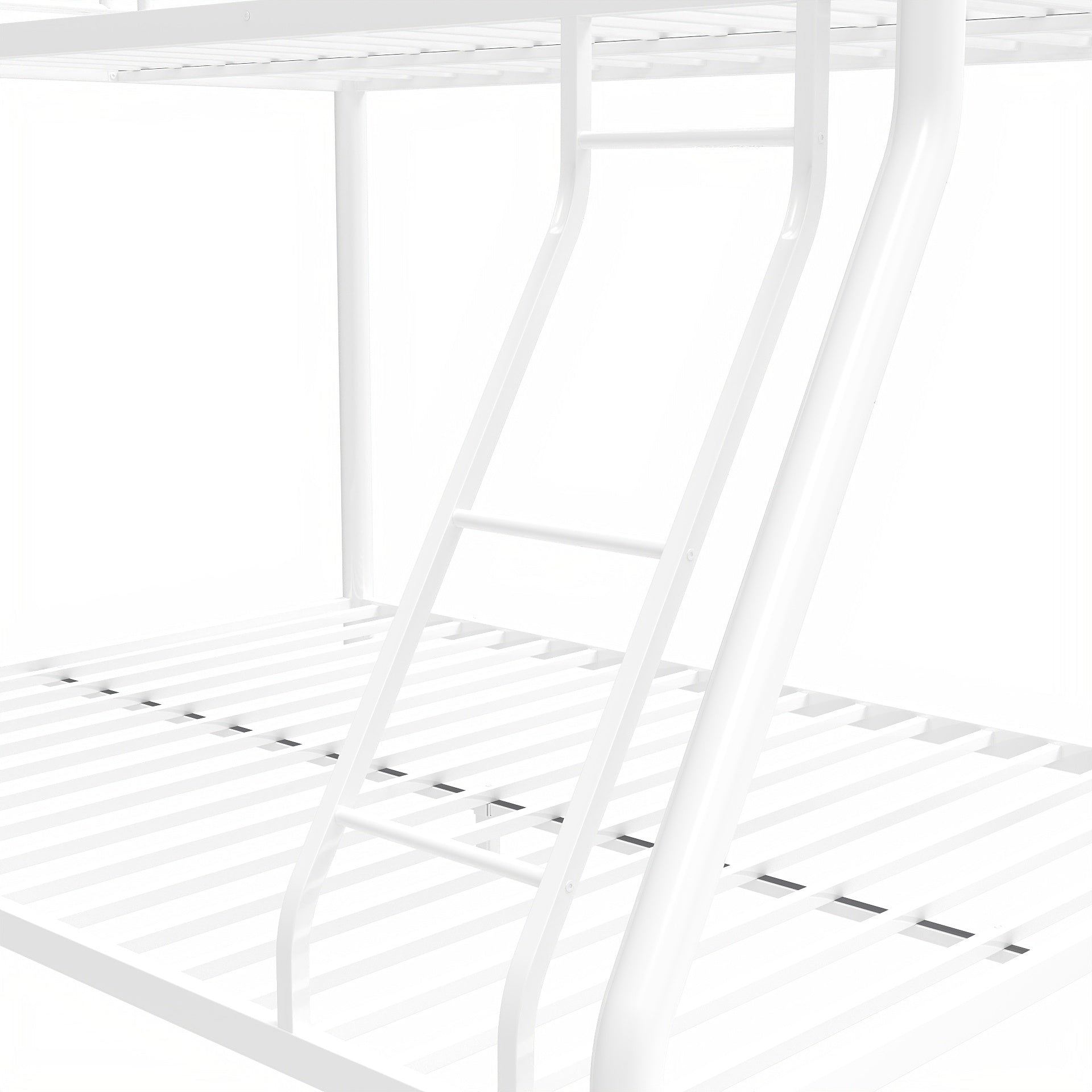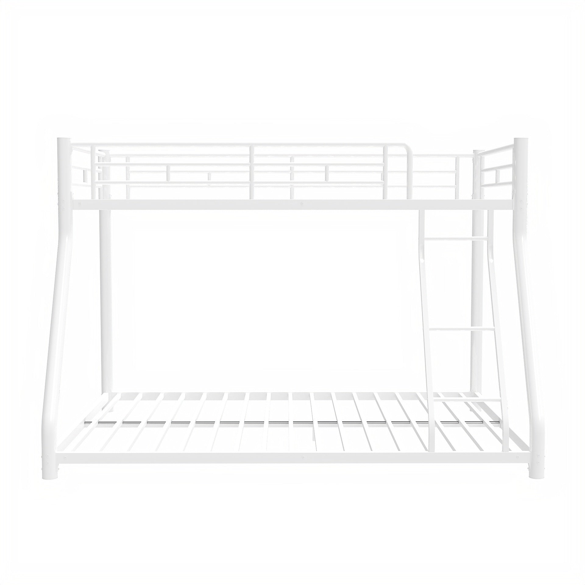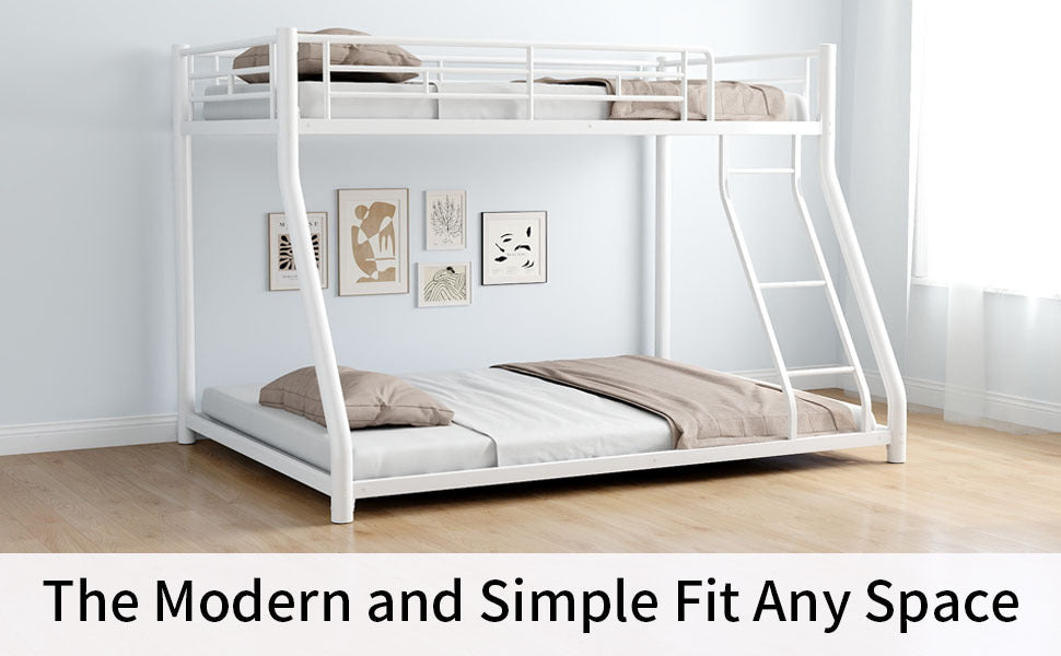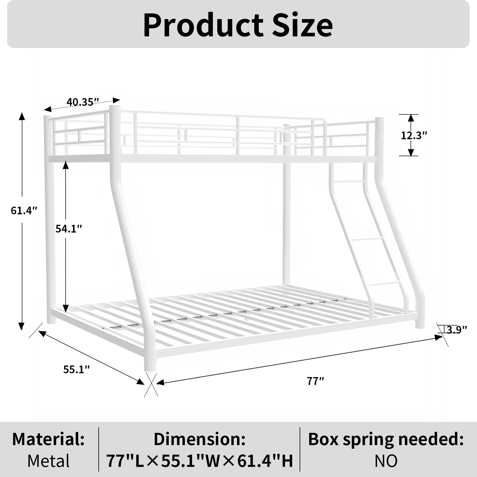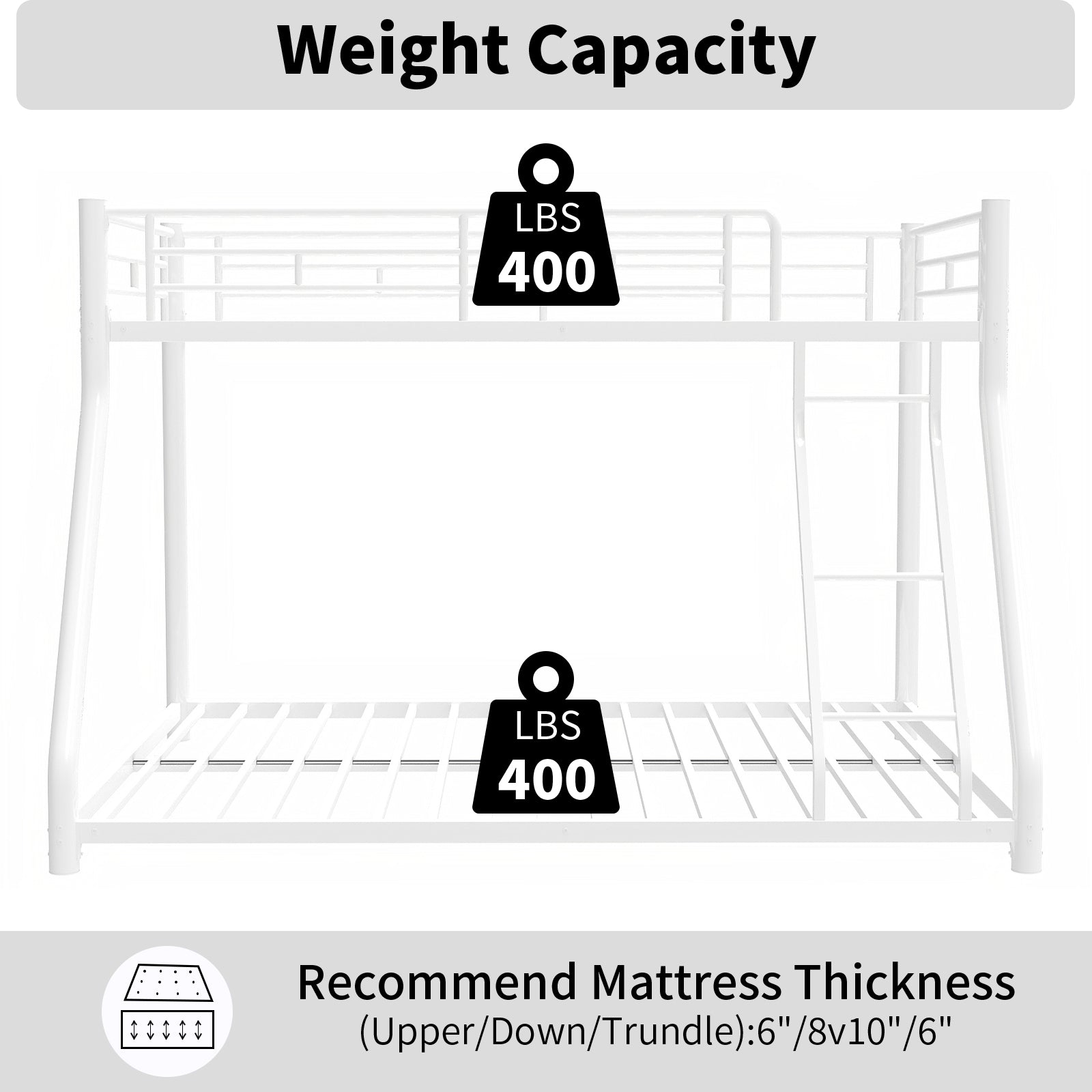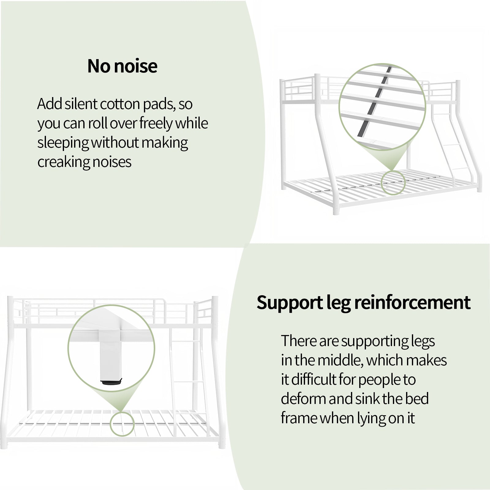 Metal Bunk Bed Twin Over Full Size With Removable Stairs, Heavy Duty Sturdy Frame With 12" Under Bed Storage For Teen & Adults, Teens, No Box Spring Needed, White Box Spring Not Required Full White Metal Bedroom Metal
