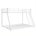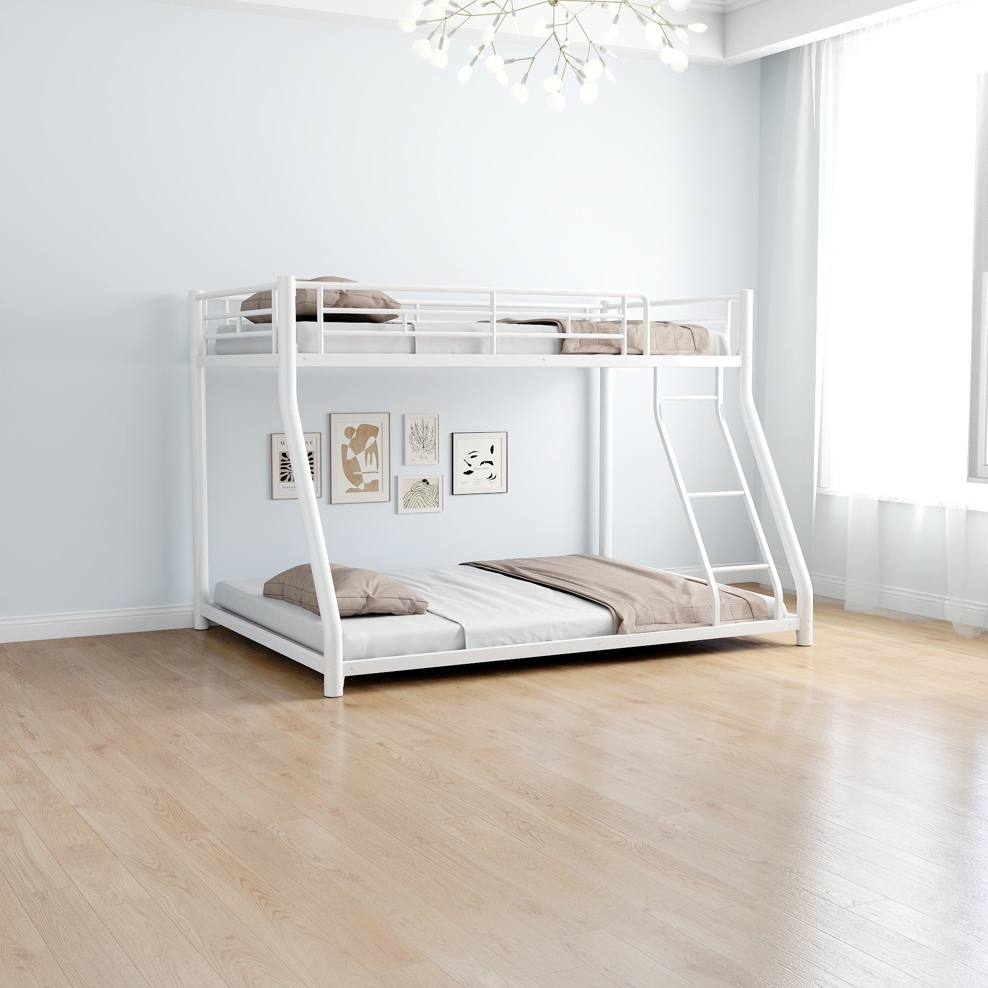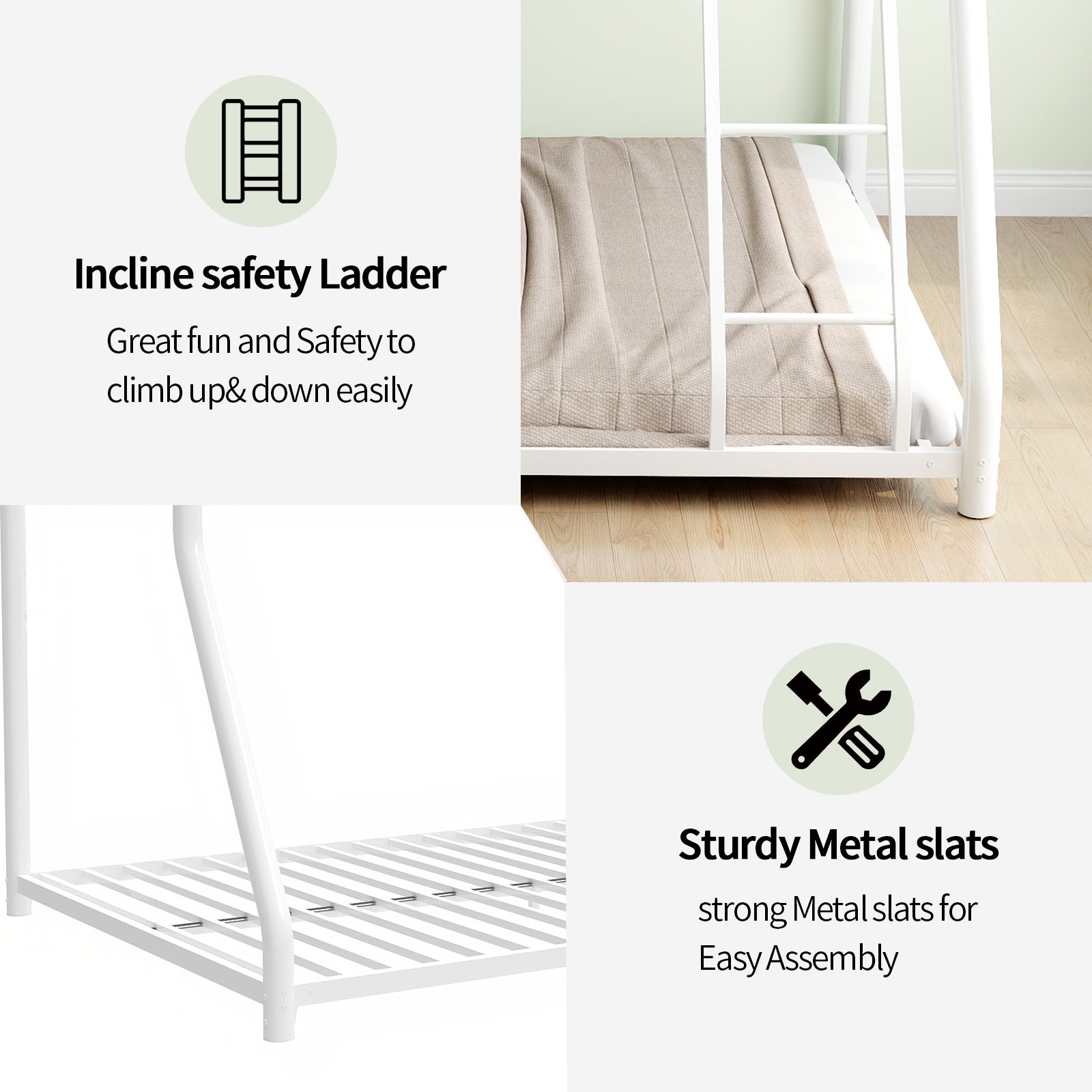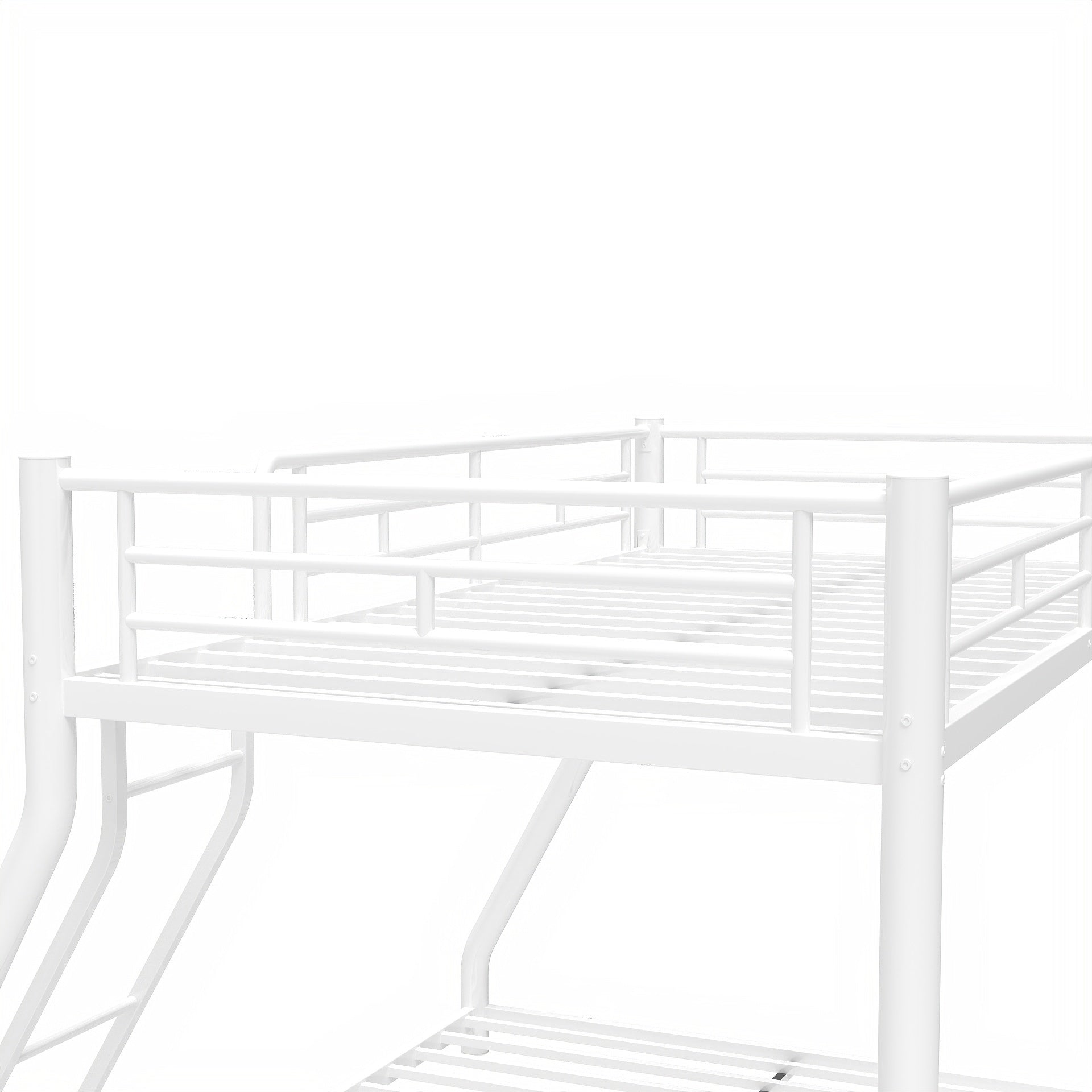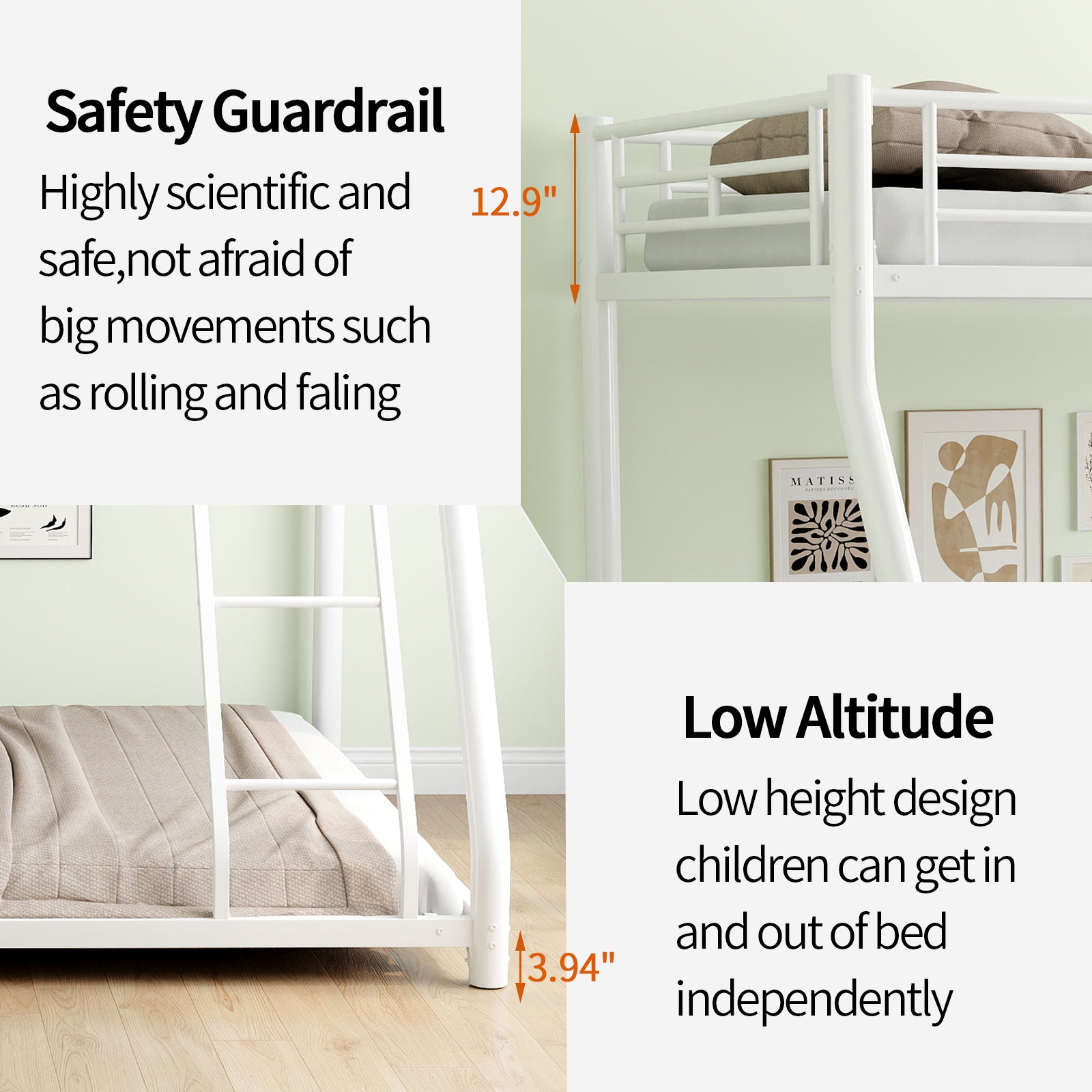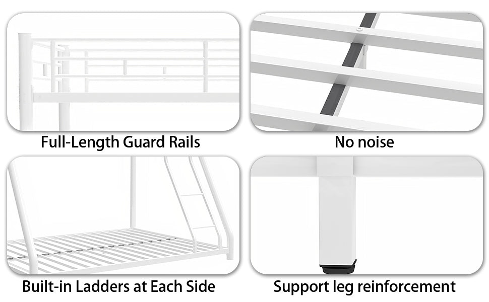 Metal Bunk Bed Twin Over Full Size With Removable Stairs, Heavy Duty Sturdy Frame With 12" Under Bed Storage For Teen & Adults, Teens, No Box Spring Needed, White Box Spring Not Required Full White Metal Bedroom Metal