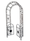 Metal Garden Arch With Doors Garden Arbor Trellis Climbing Plants Support Arch Outdoor Arch Wedding Arch Party Events Archway Black Black Iron