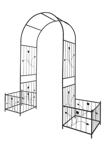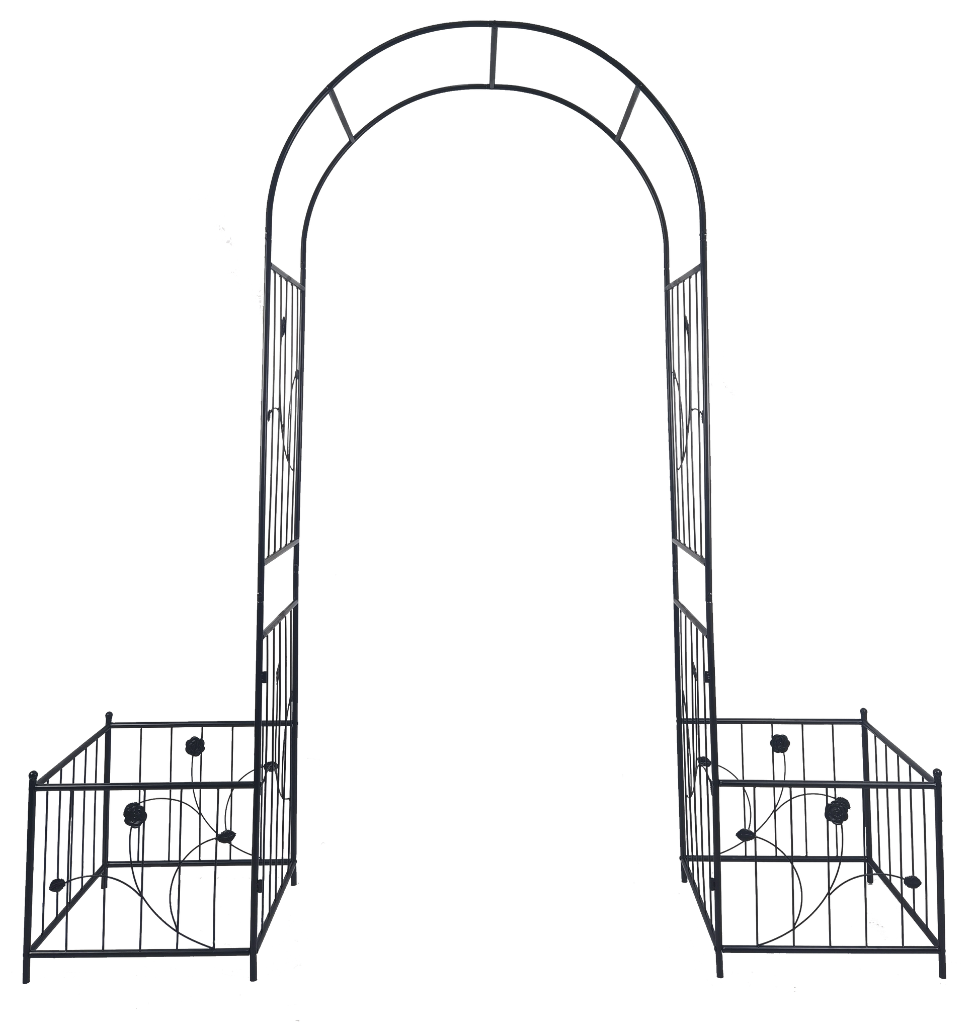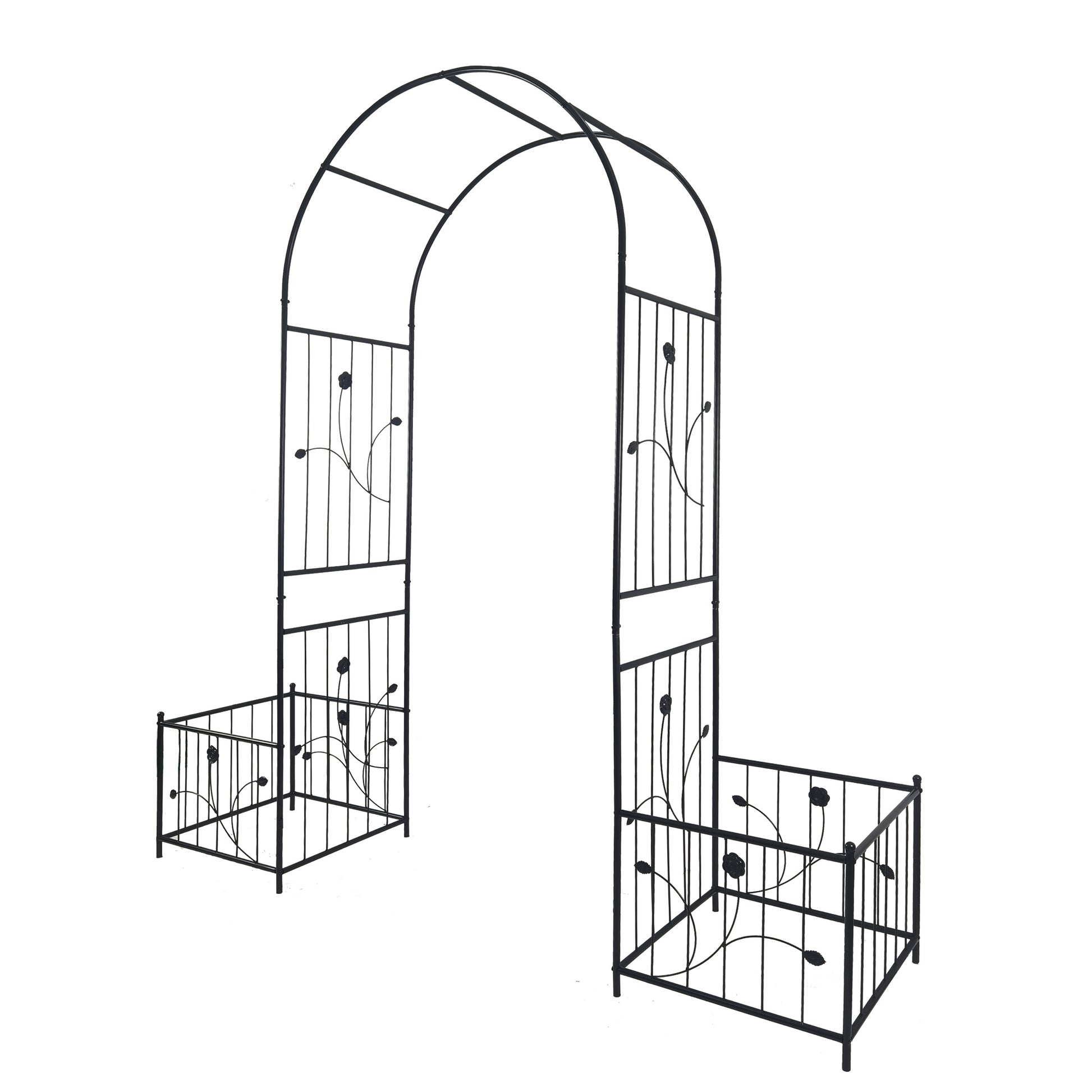 Metal Garden Arch With Two Plant Stands 79.5'' Wide X 86.6'' High Climbing Plants Support Rose Arch Outdoor Black Black Iron