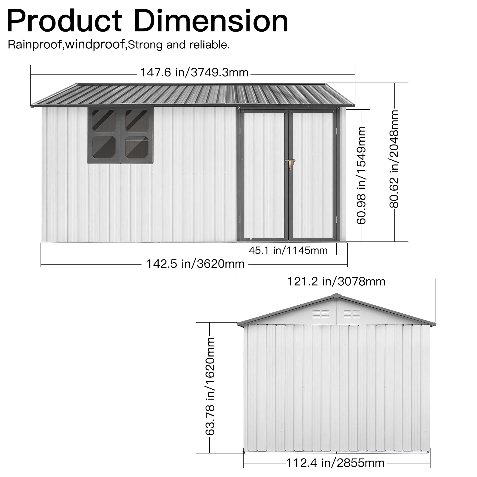 Metal Garden Sheds 10Ftx12Ft Outdoor White Grey With Window Grey White Metal