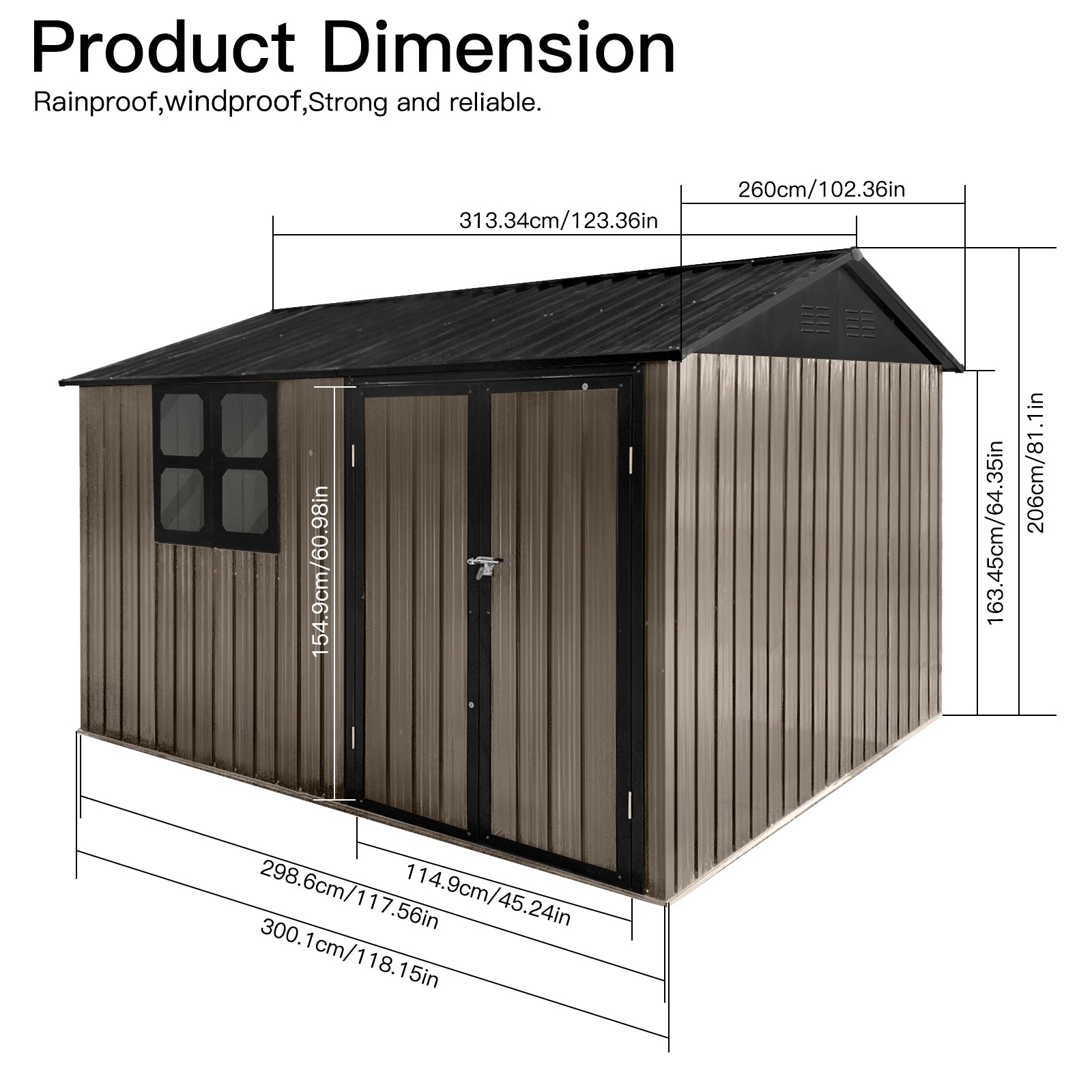 Metal Garden Sheds 10Ftx8Ft Outdoor Brown Black With Window Brown Metal