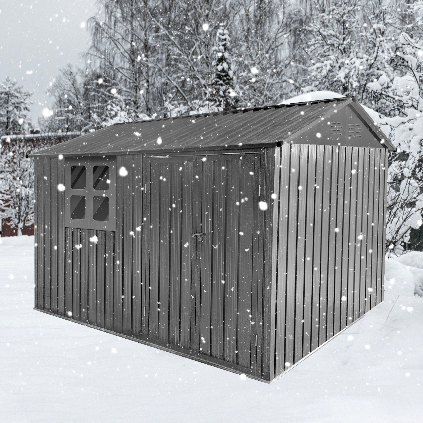 Metal Garden Sheds 6Ftx8Ft Outdoor Grey With Window Grey Metal