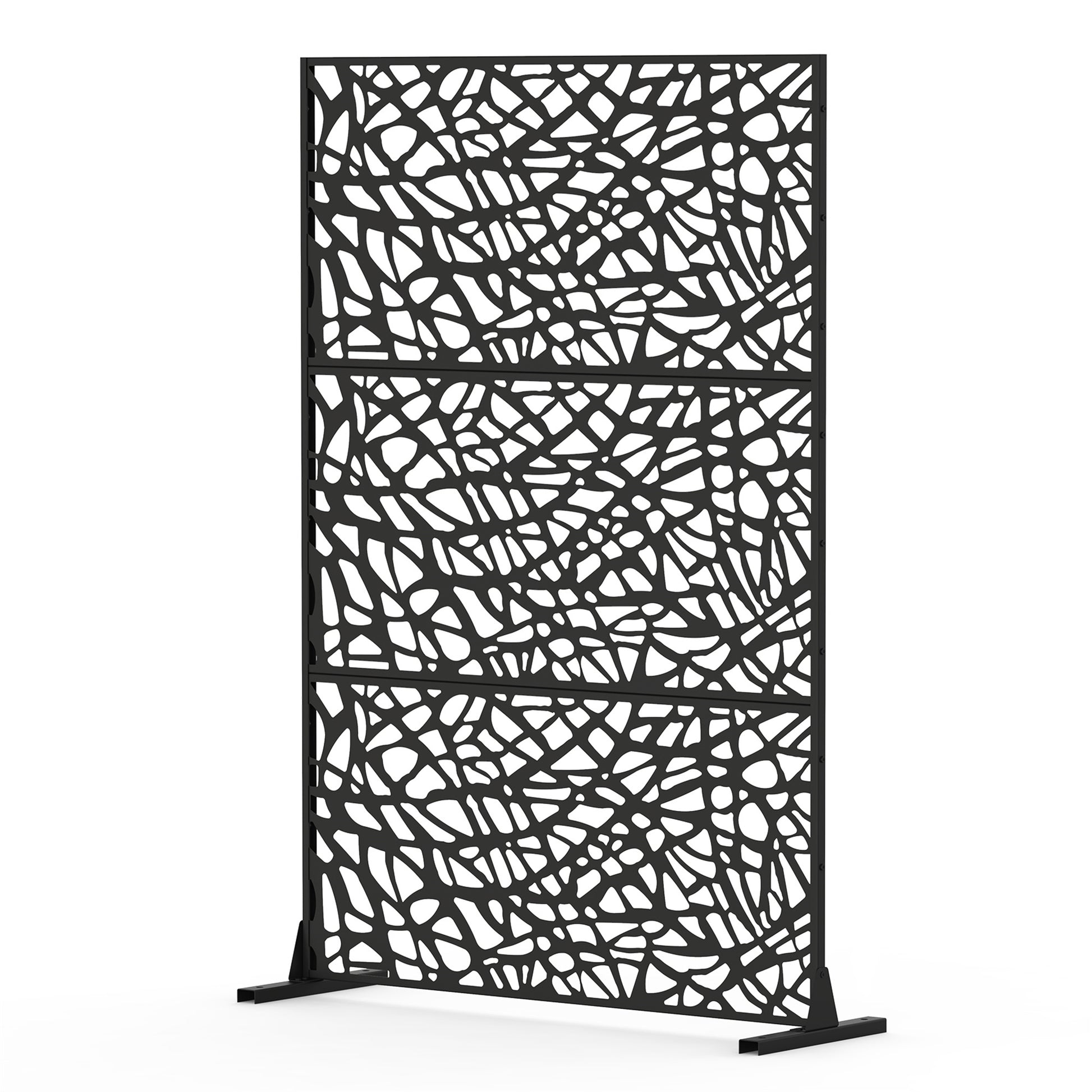 Metal Privacy Screens And Panels With Free Standing, Freestanding Outdoor Indoor Privacy Screen, Decorative Privacy Screen For Balcony Patio Garden, Room Divider, Mesh Shape Black Steel
