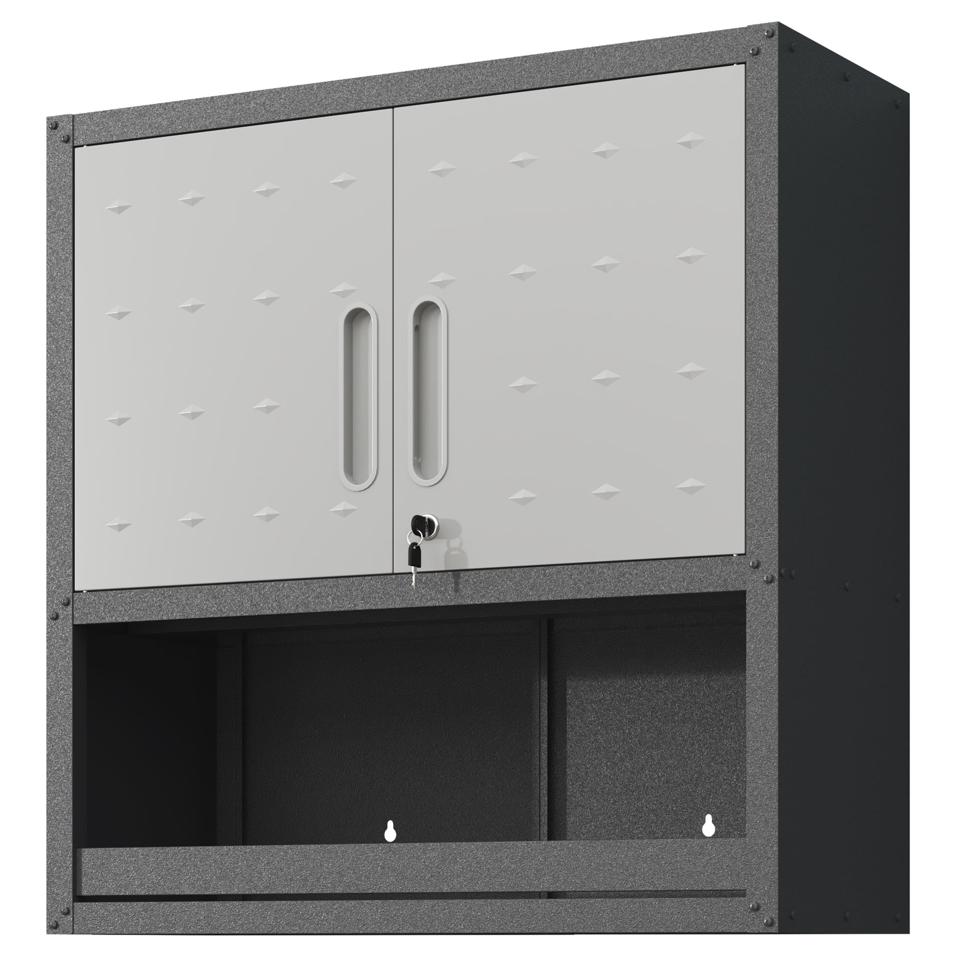 Metal Wall Mounted Tool Storage Cabinet With Locking Door And 1 Shelf 1 Opened Drawer For Garage Warehouse,Office,Assembly Required Black Gray Modern Metal