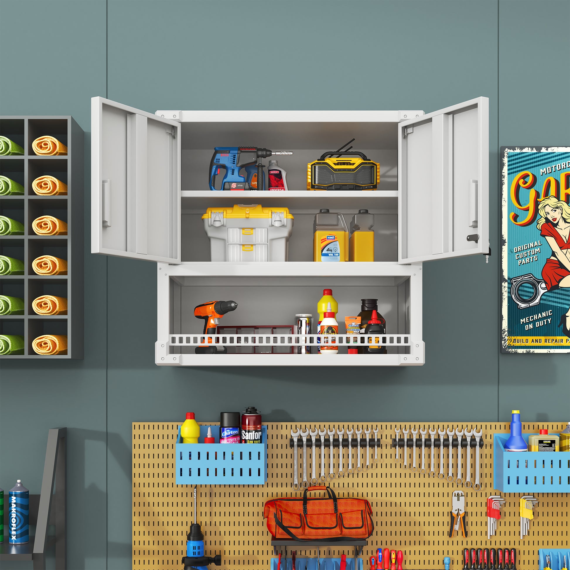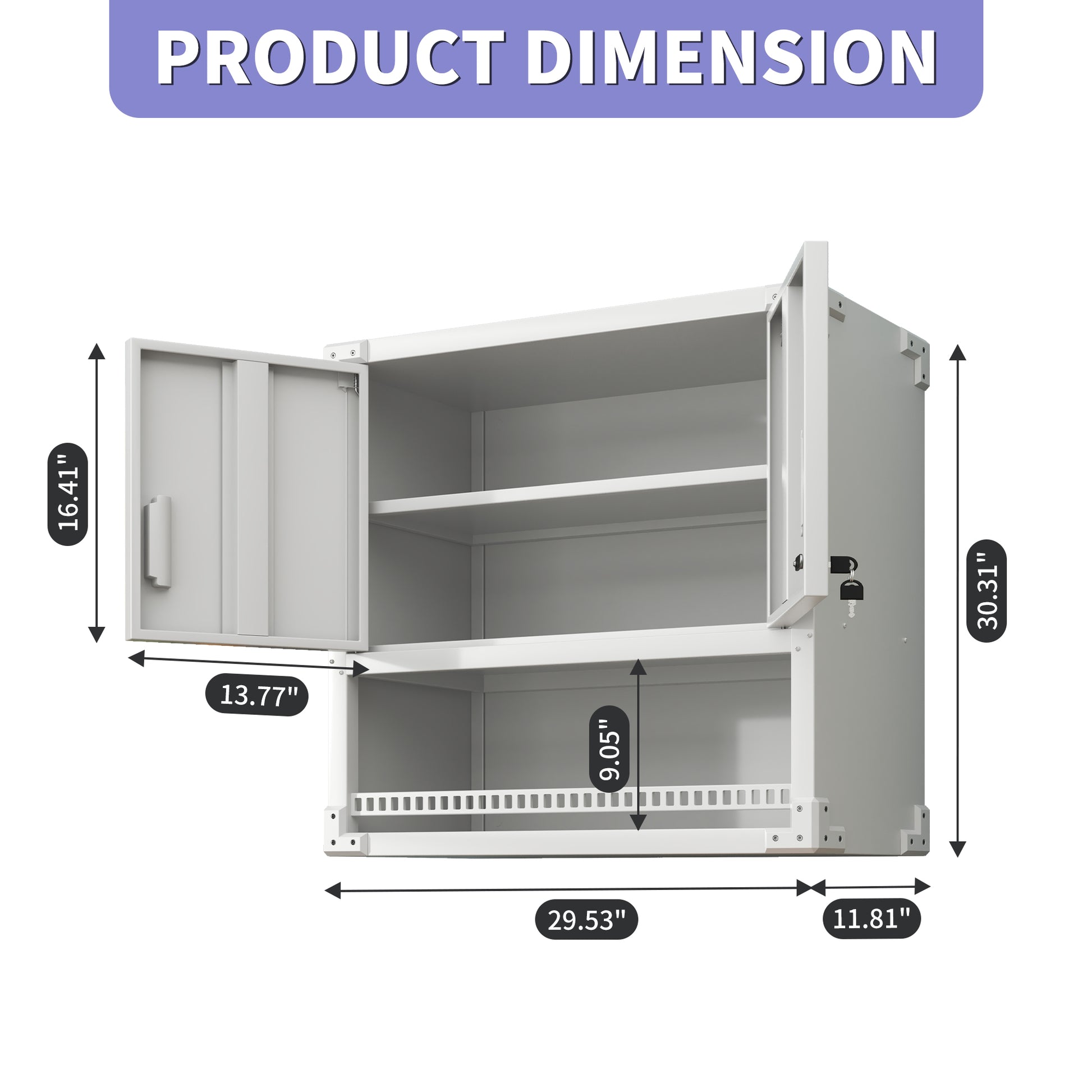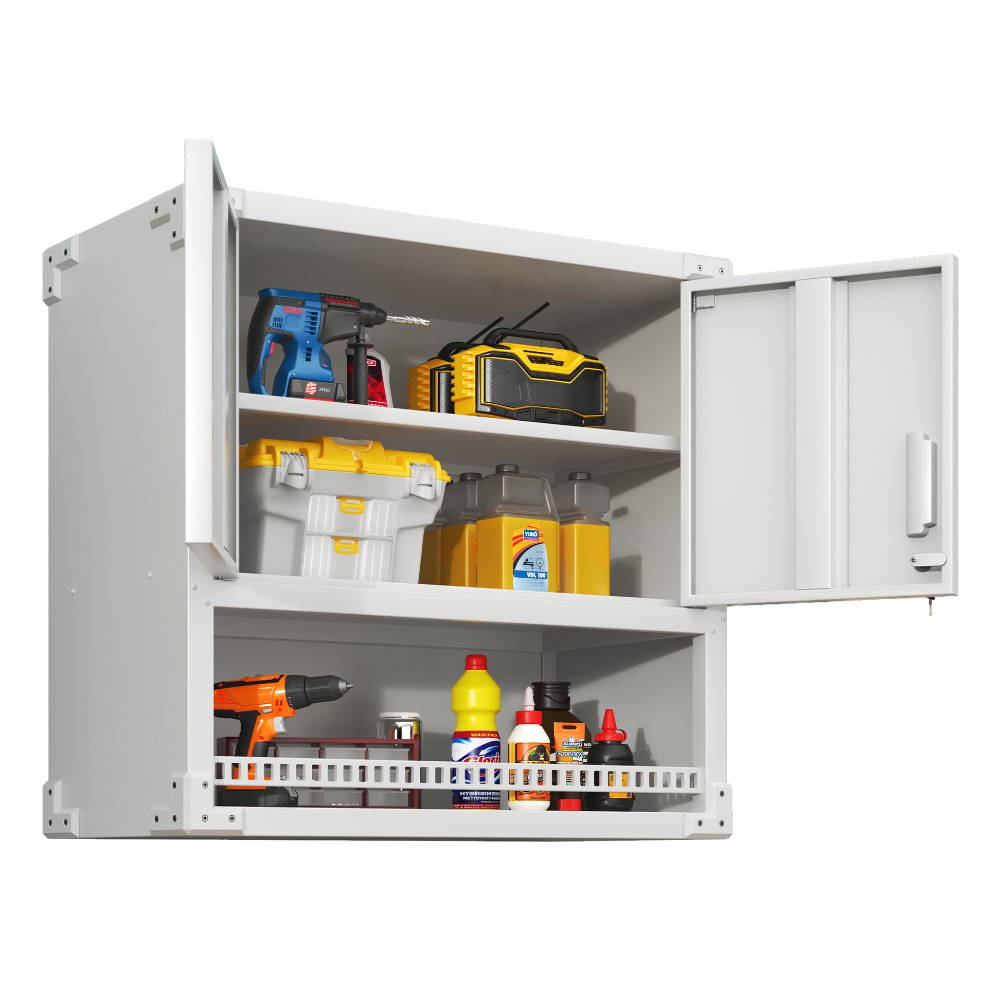 Metal Wall Mounted Tool Storage Cabinet With Locking Door And 1 Shelf 1 Opened Drawer For Garage Warehouse,Office,Assembly Required White Modern Metal
