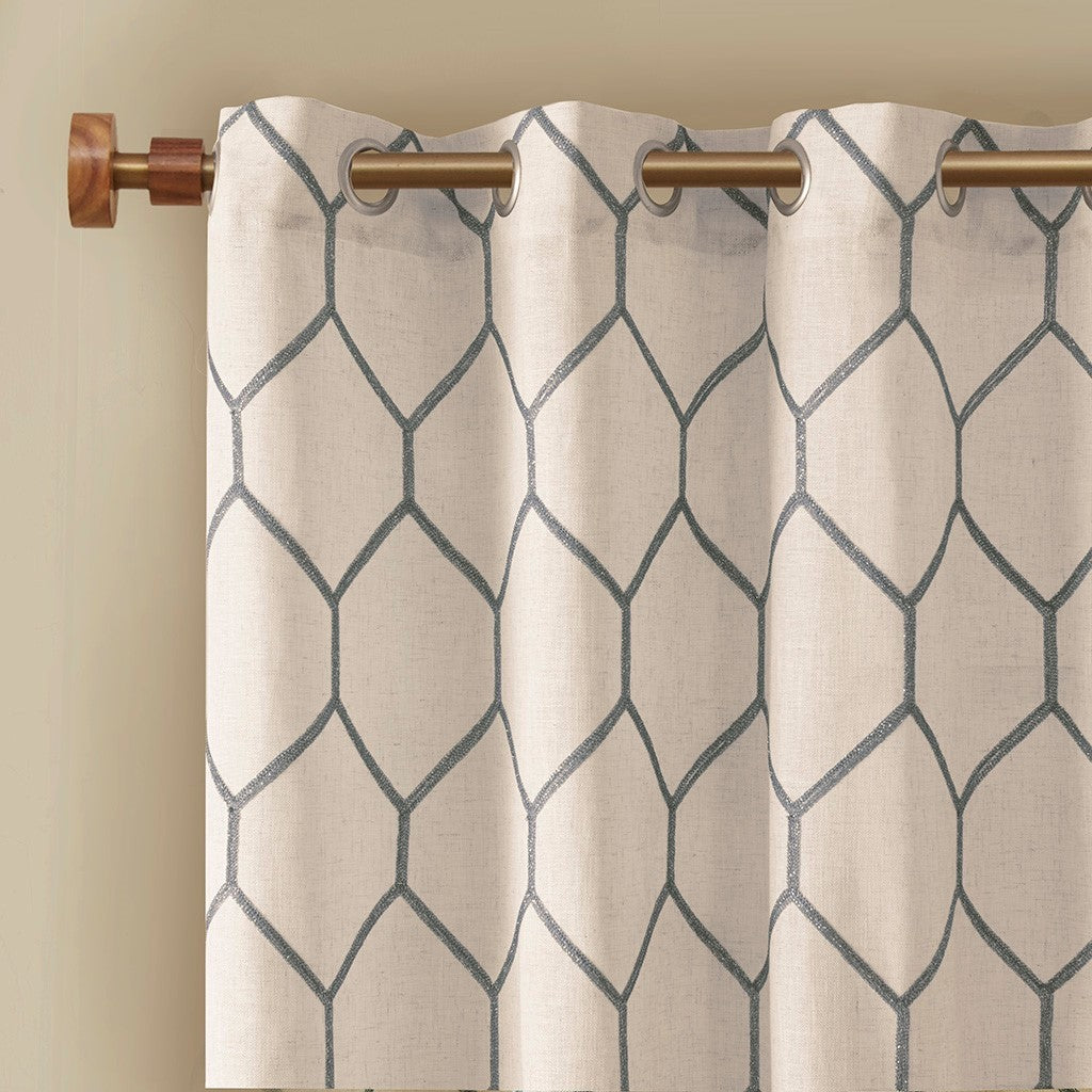 Metallic Geo Embroidered Curtain Panel Only 1 Pc Panel White Multi Polyester