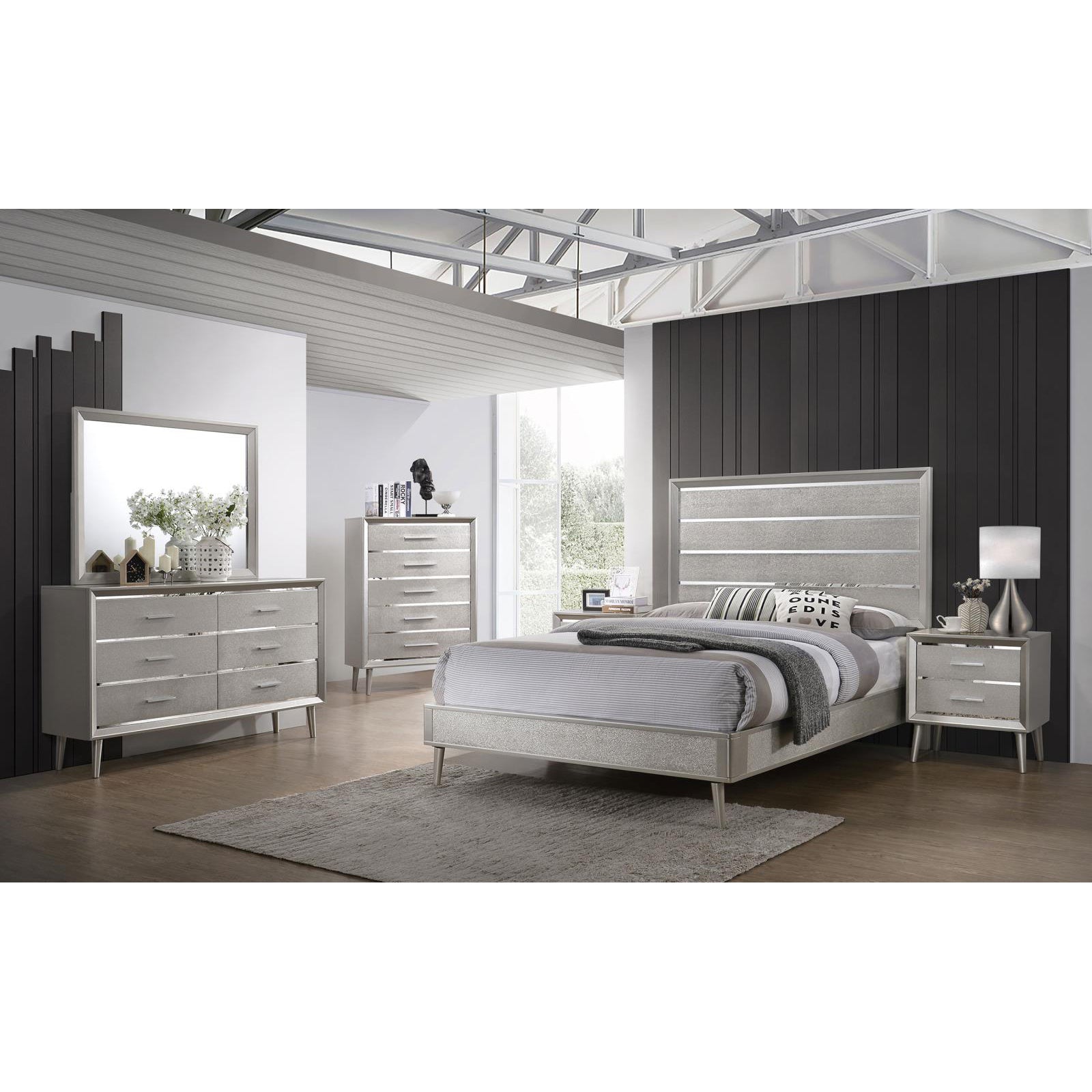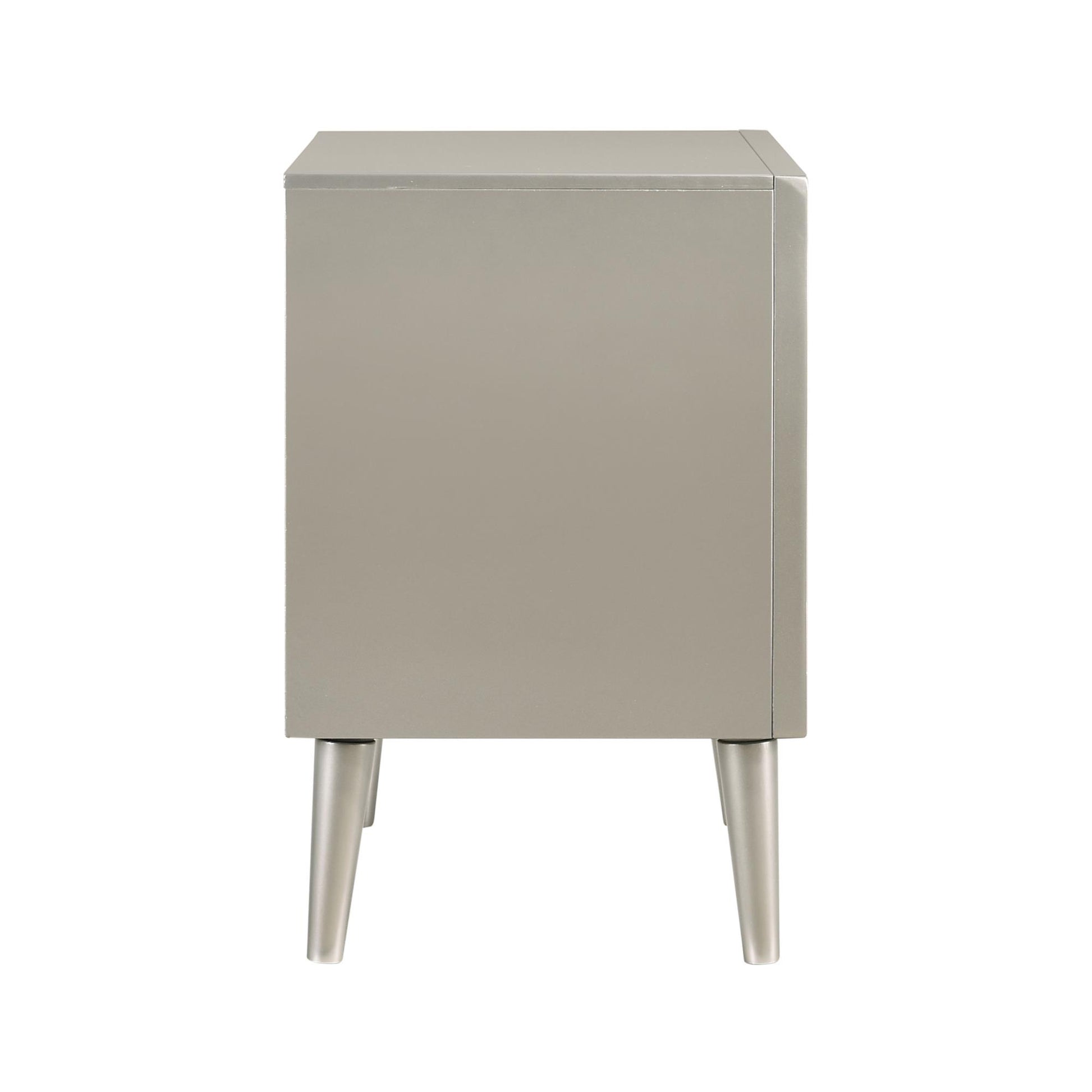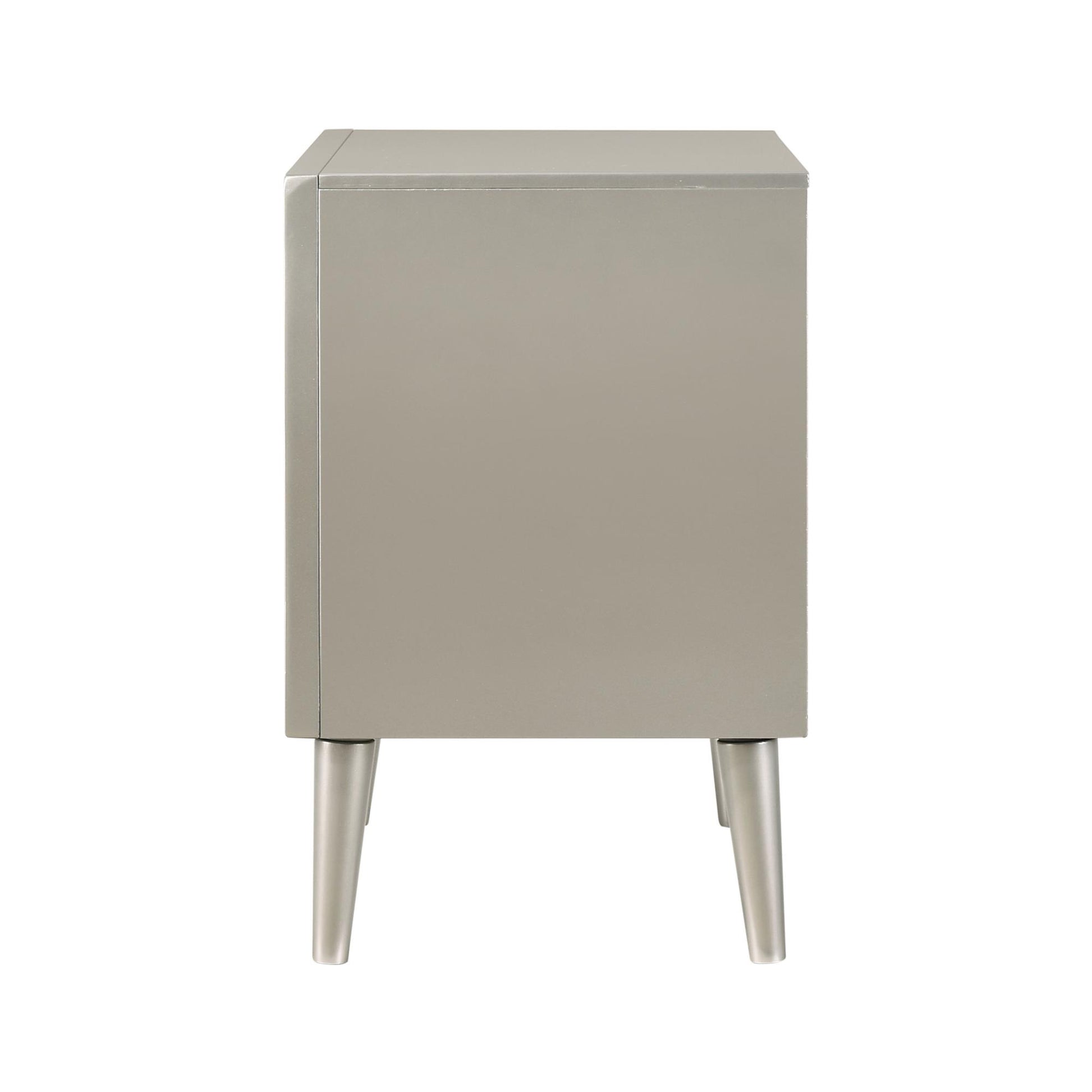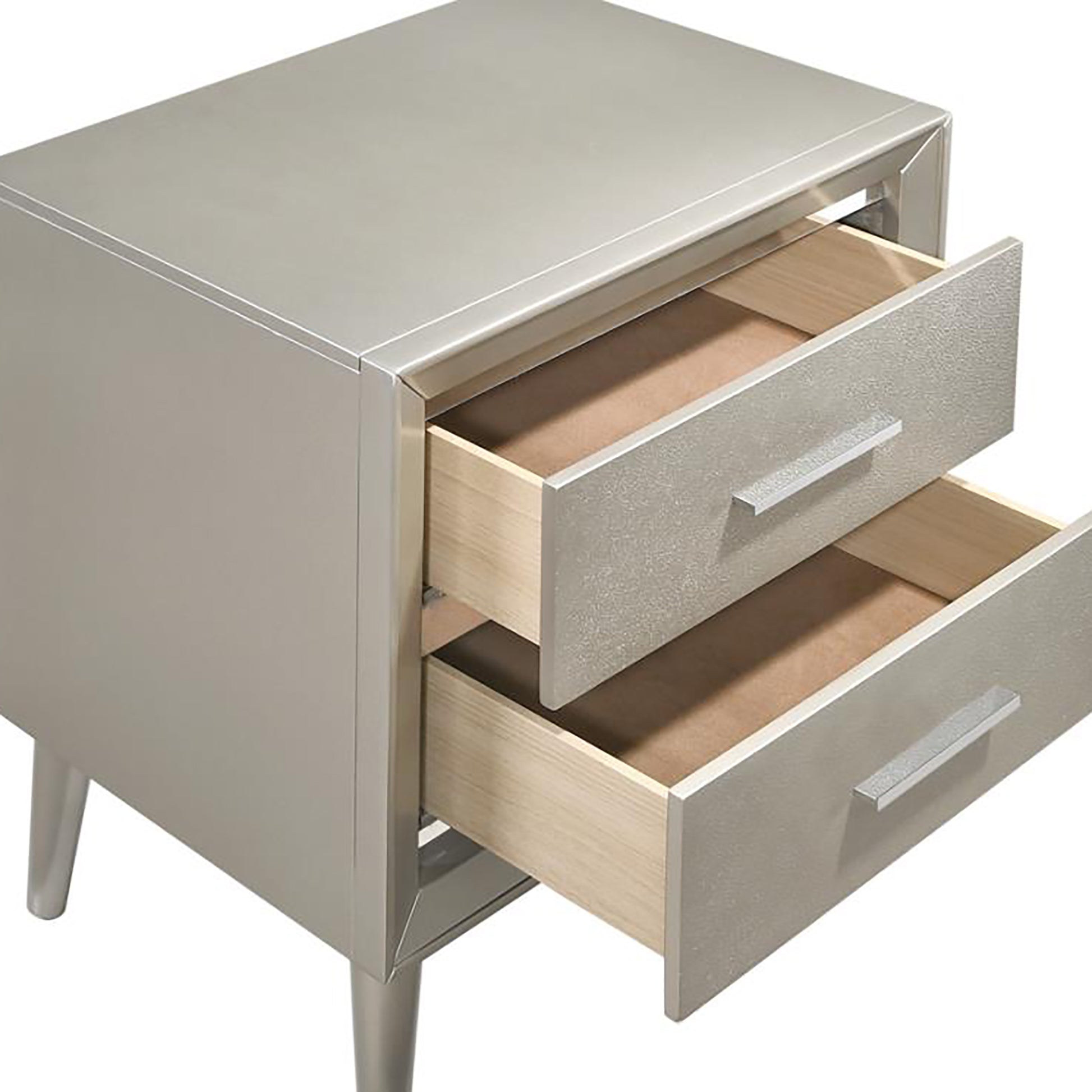 Metallic Sterling 2 Drawer Nightstand Silver Gray 2 Drawers Bedroom Drawer Storage Glam Rubberwood Felt Lined Drawers Wood