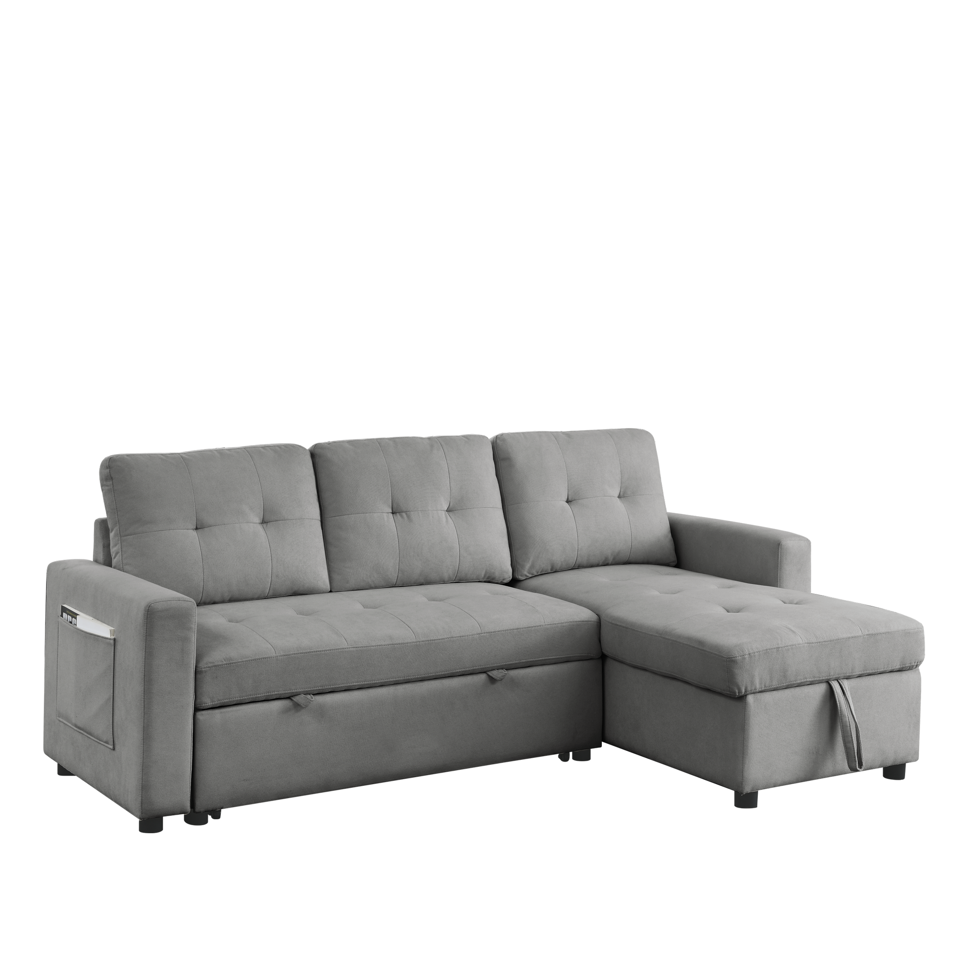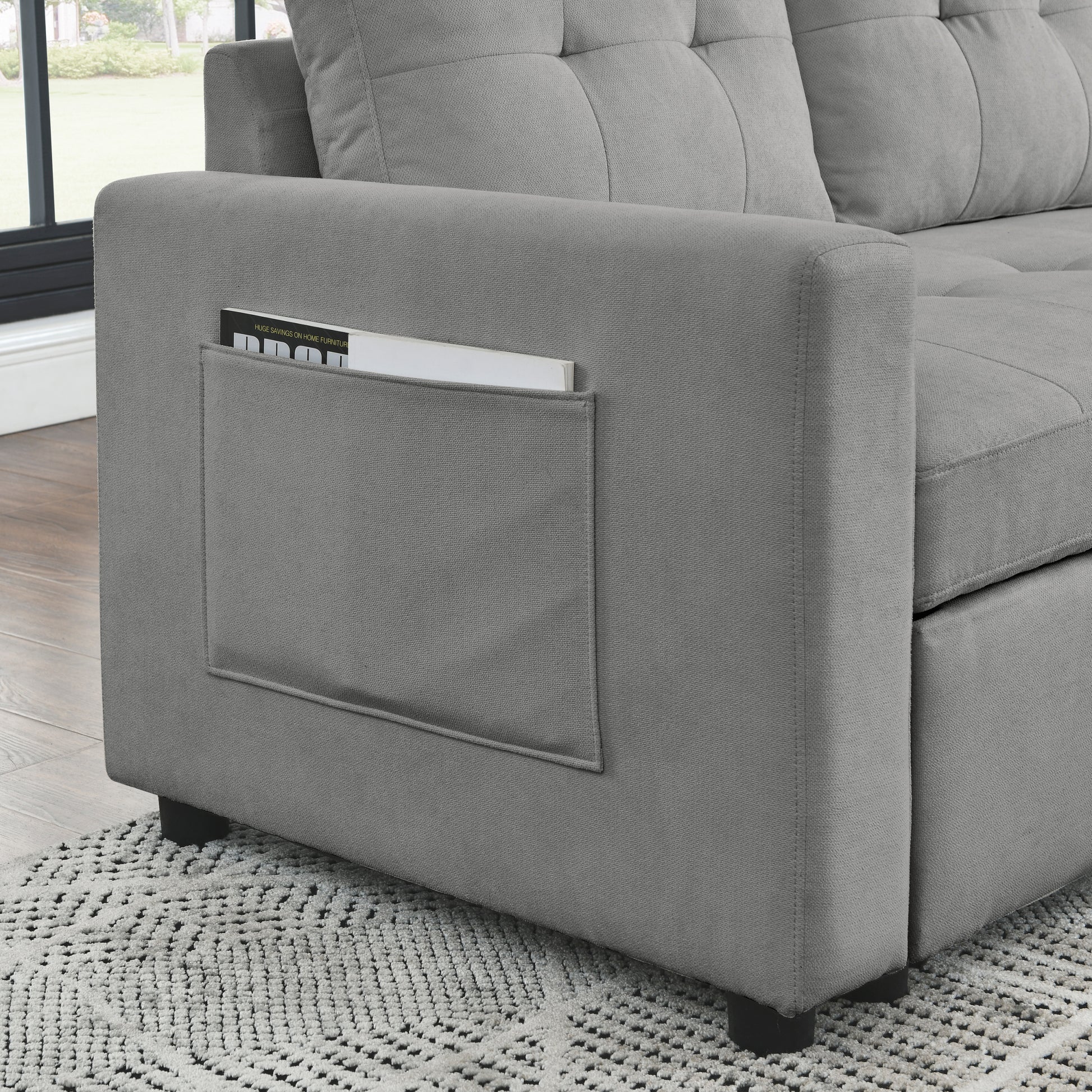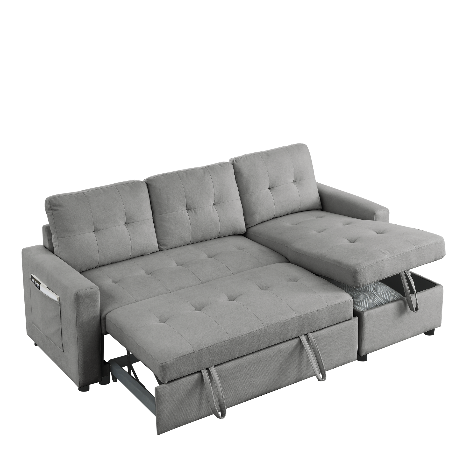Mh 78.5" Sleeper Sofa Bed Reversible Sectional Couch With Storage Chaise And Side Storage Bag For Small Space Living Room Furniture Set Grey Primary Living Space Eucalyptus Polyester Fabric