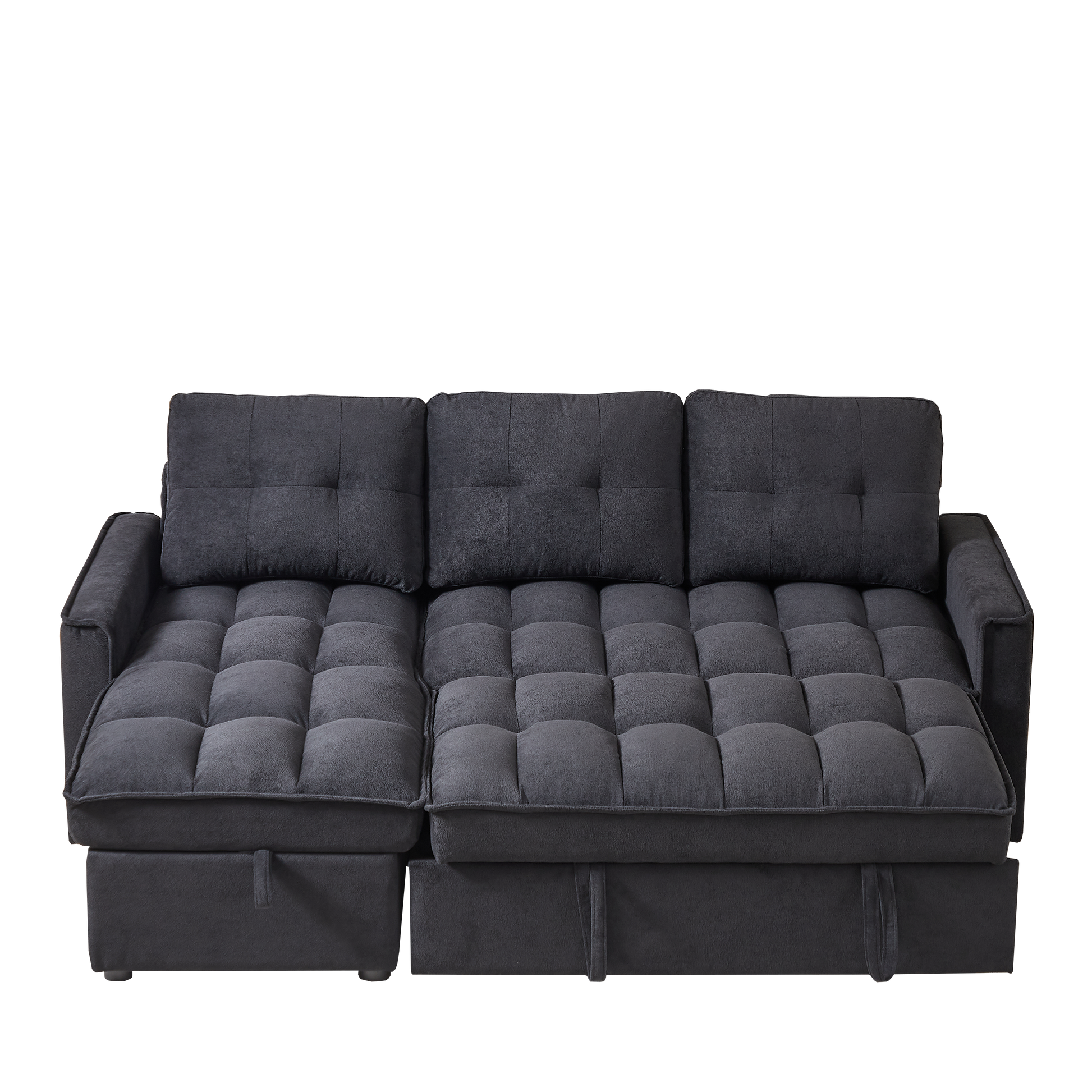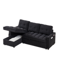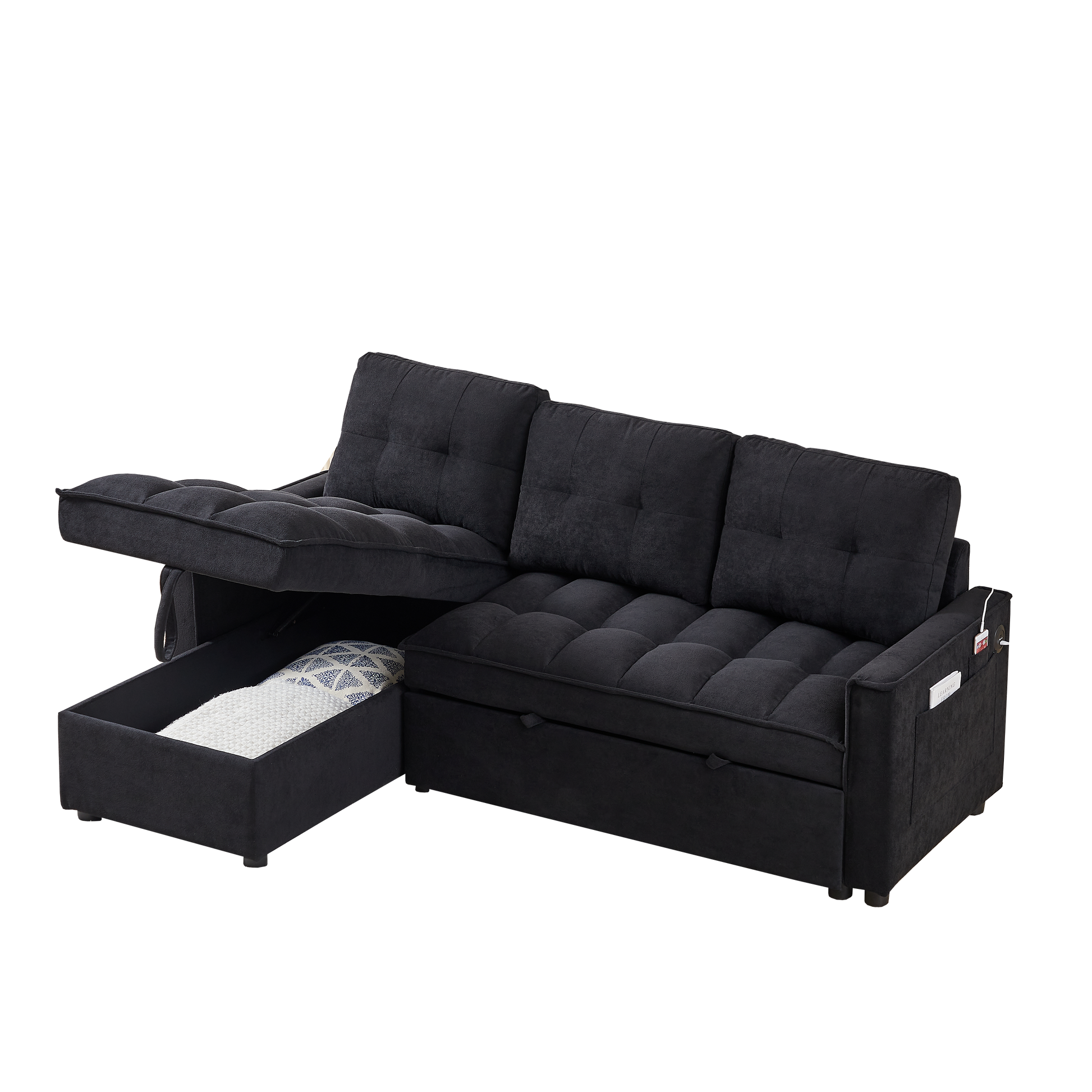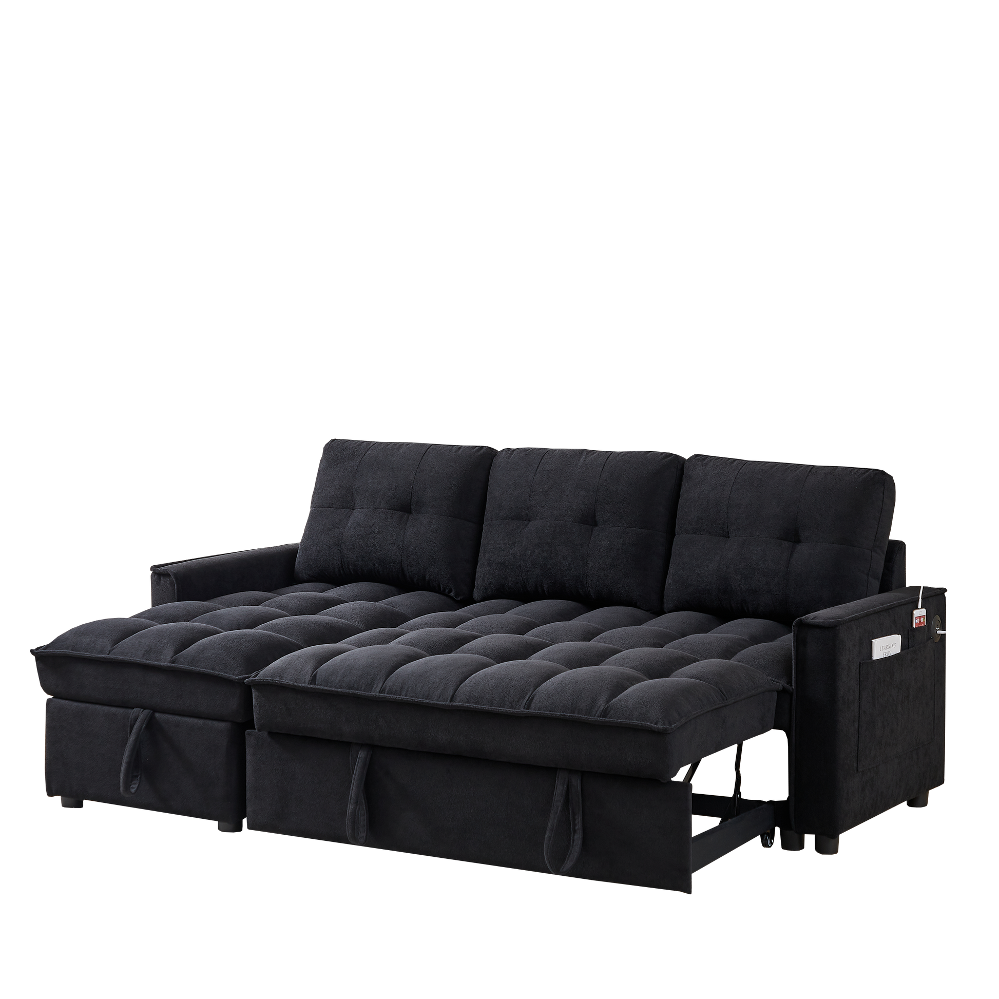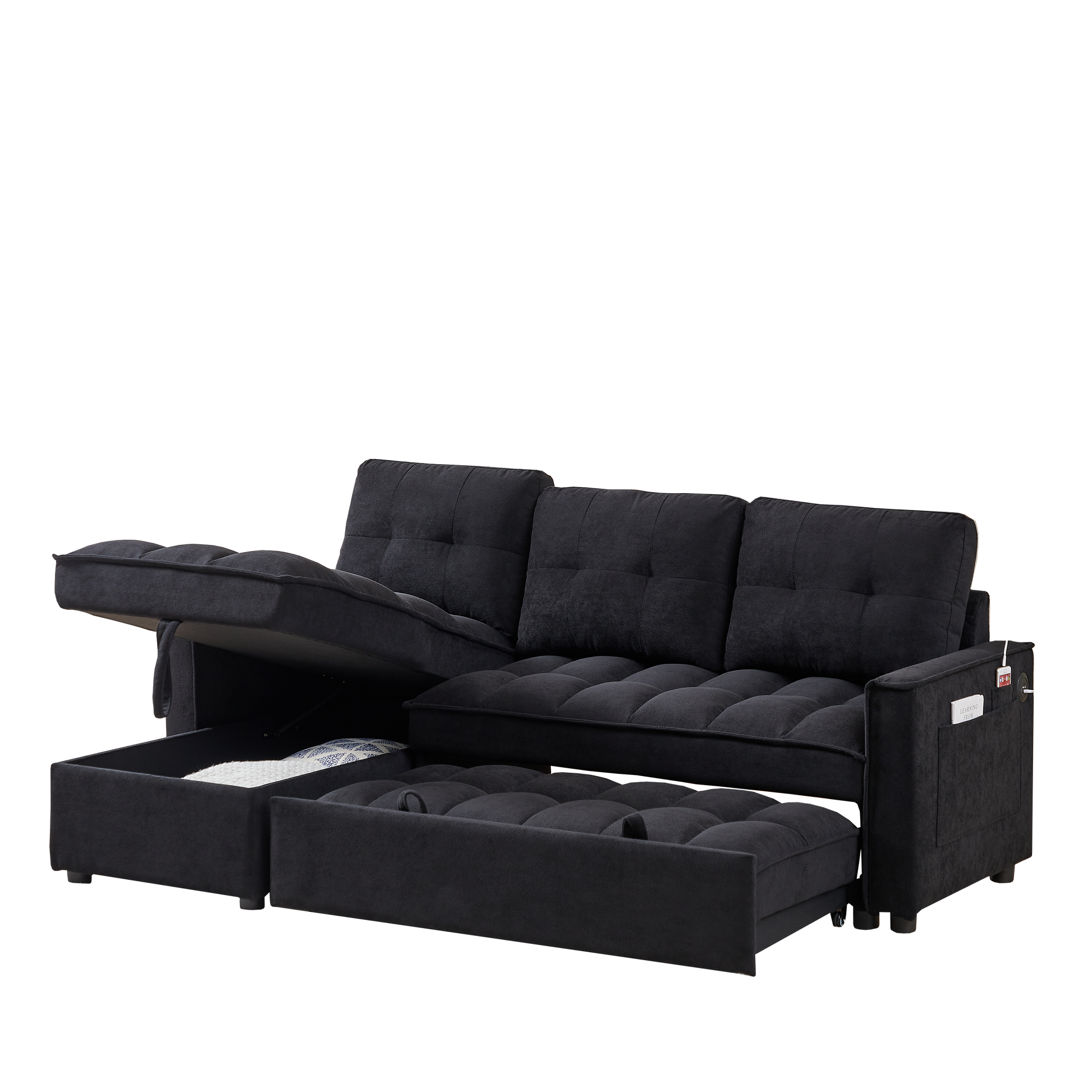 Mh 78.75" Reclining Sofa, Pull Out Sofa Bed With Usb And Tape C Charging Ports, L Shaped Sectional Sofa With Reclining Storage And Arm Side Organizer Pocket Features, Living Room Comfort Sofa Black