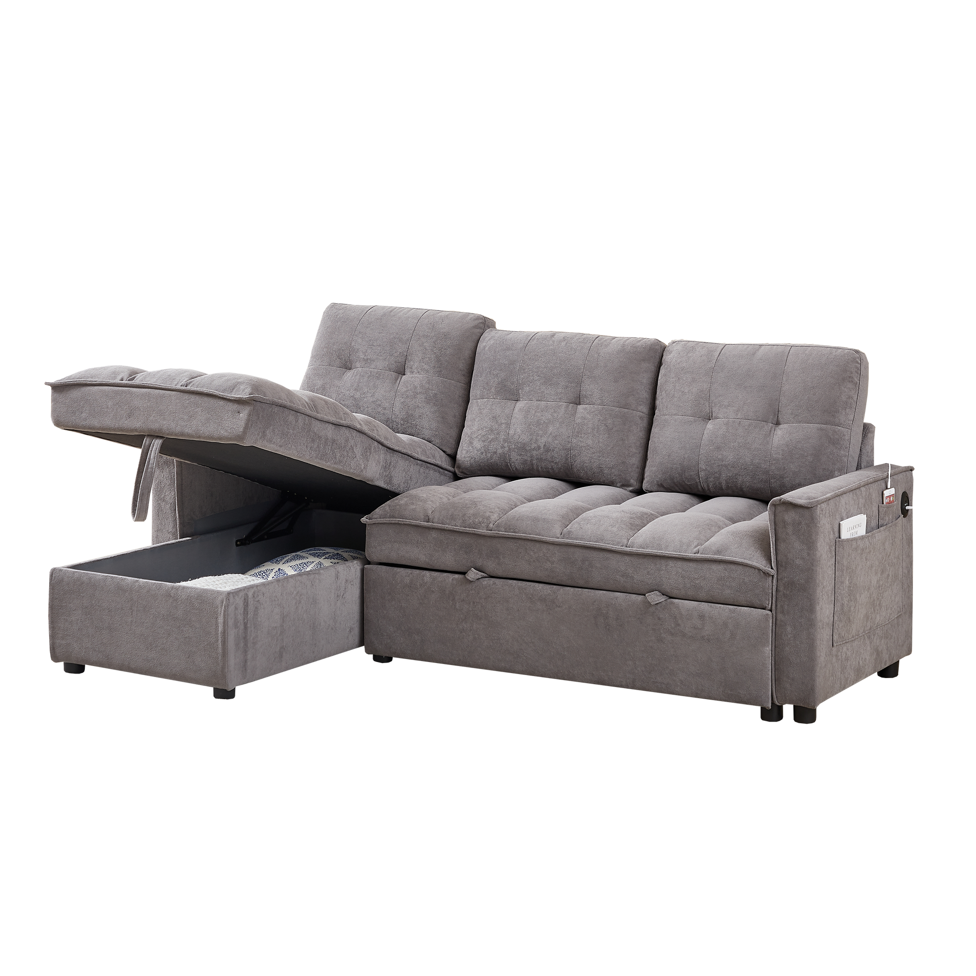 Mh 78.75" Reclining Sofa, Pull Out Sofa Bed With Usb And Tape C Charging Ports, L Shaped Sectional Sofa With Reclining Storage And Arm Side Organizer Pocket Features, Living Room Comfort Sofa Dark