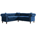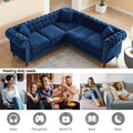 Mh 80" Deep Button Tufted Upholstered Roll Arm Luxury Classic Chesterfield L Shaped Sofa 3 Pillows Included, Solid Wood Gourd Legs, Blue Velvet S00011 Blue Velvet Polyester Velvet 5 Seat