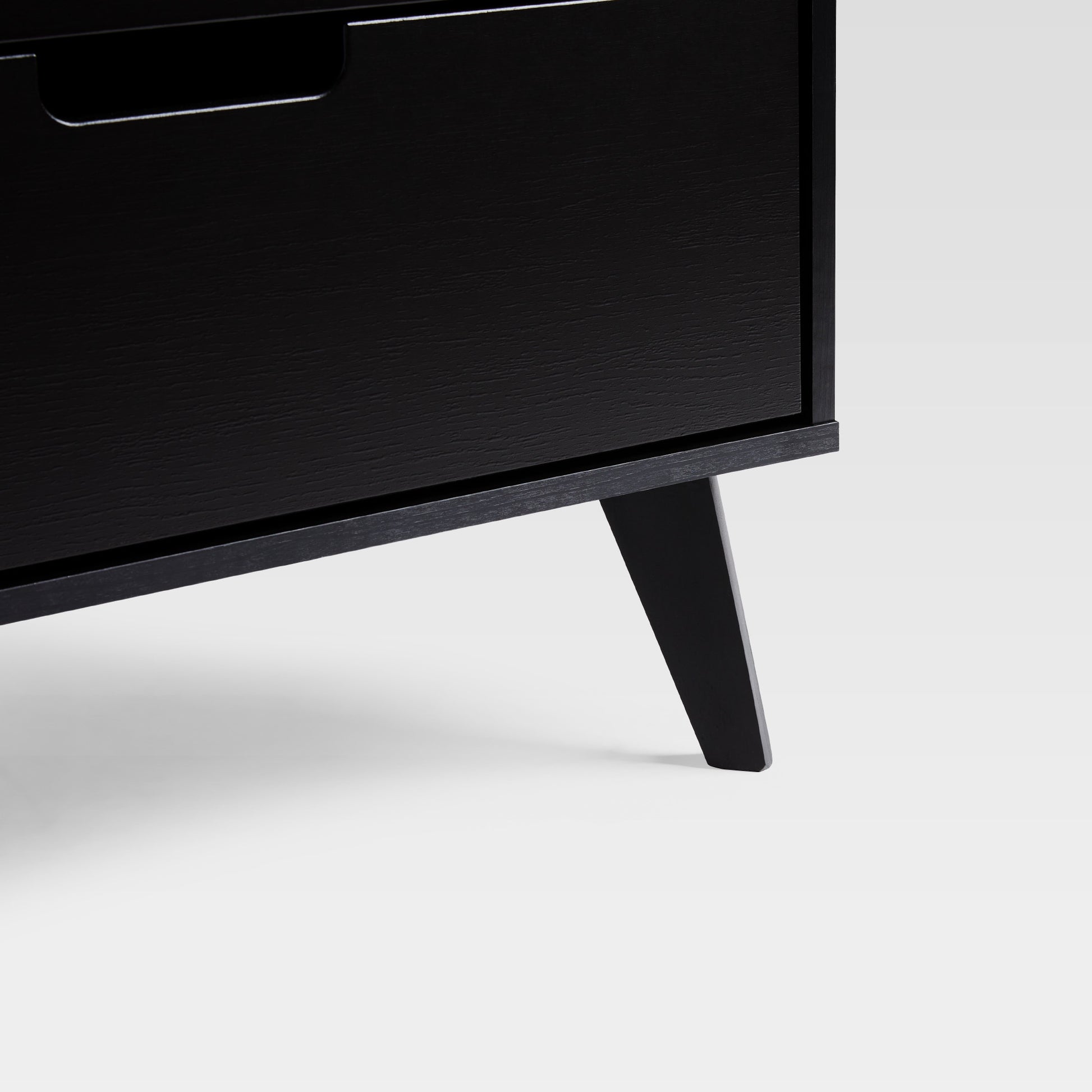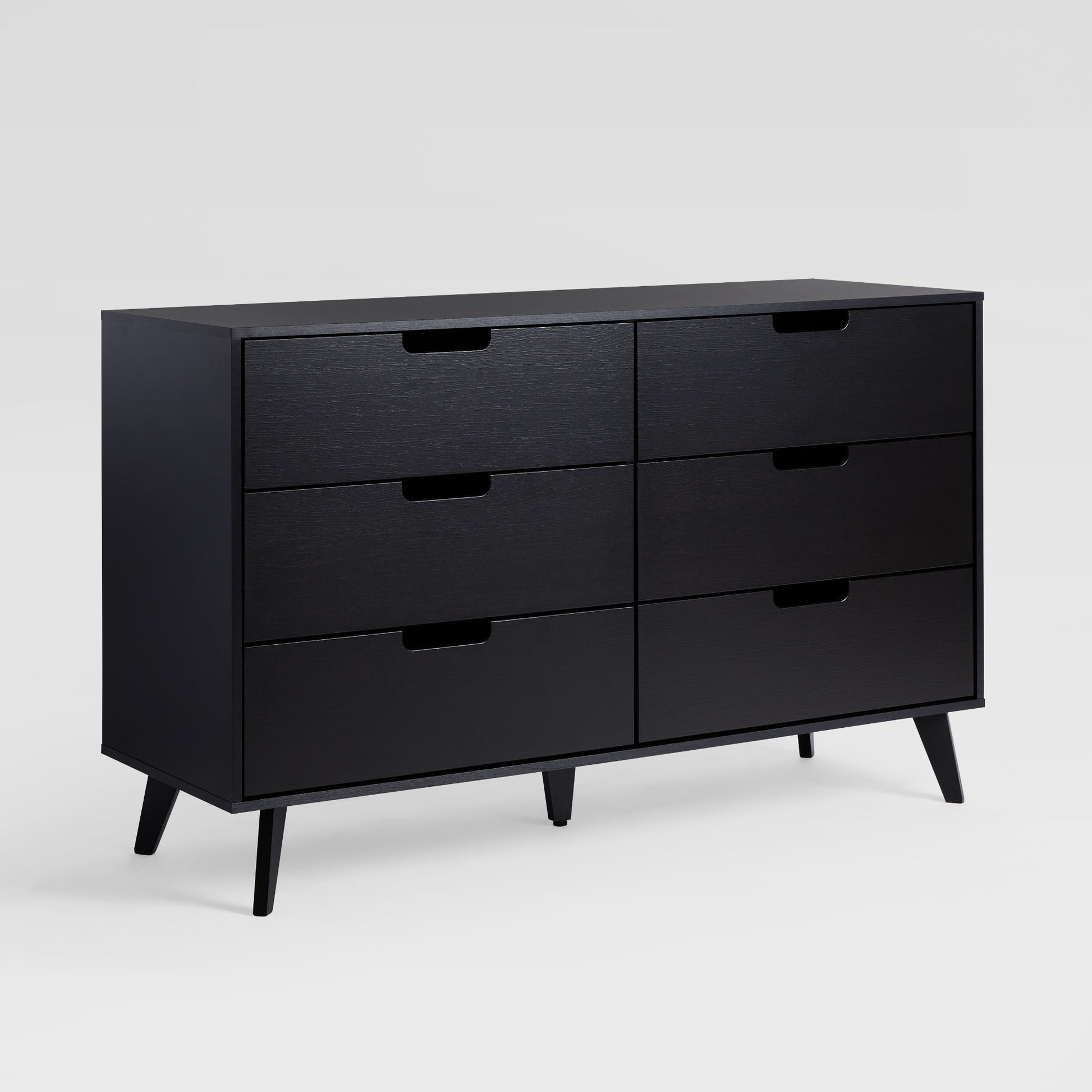 Mid Century Hans 6 Drawer Dresser With Cut Out Handles, Black Black Mdf Mdf