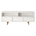 Mid Century Modern 3 Drawer Solid Wood Tv Stand For Tvs Up To 65" White White Pine