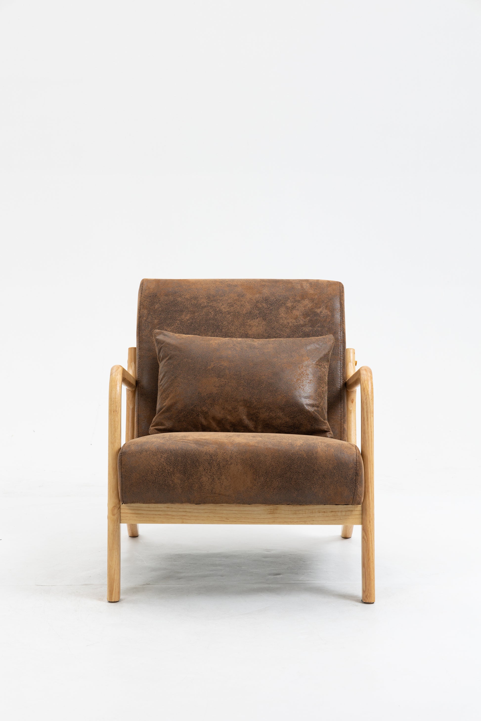 Mid Century Modern Accent Chair With Wood Frame, Upholstered Living Room Chairs With Waist Cushion, Reading Armchair For Bedroom Sunroom White Cotton Pu Leather