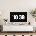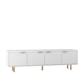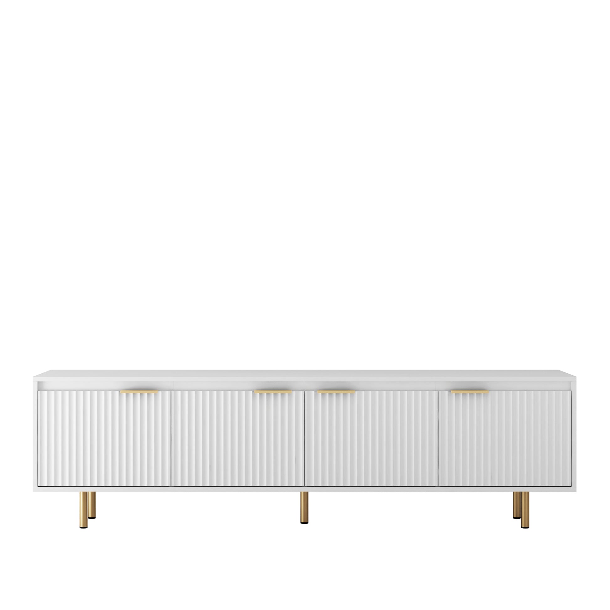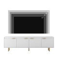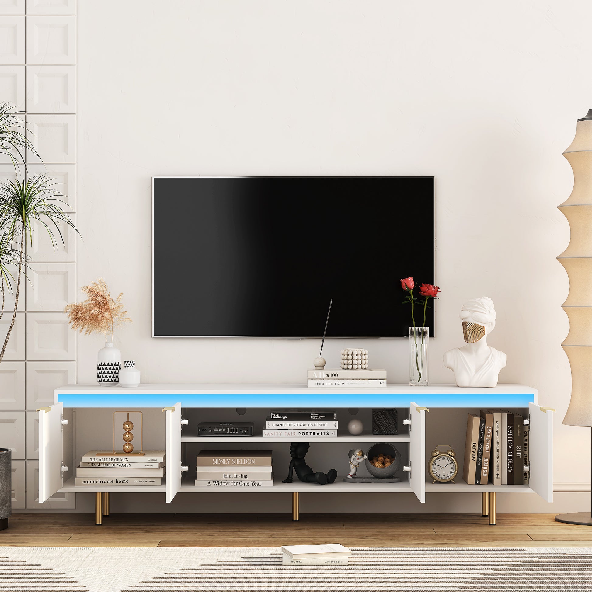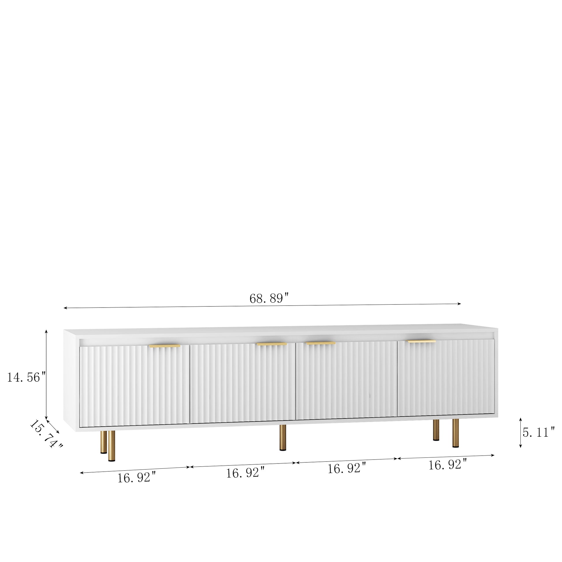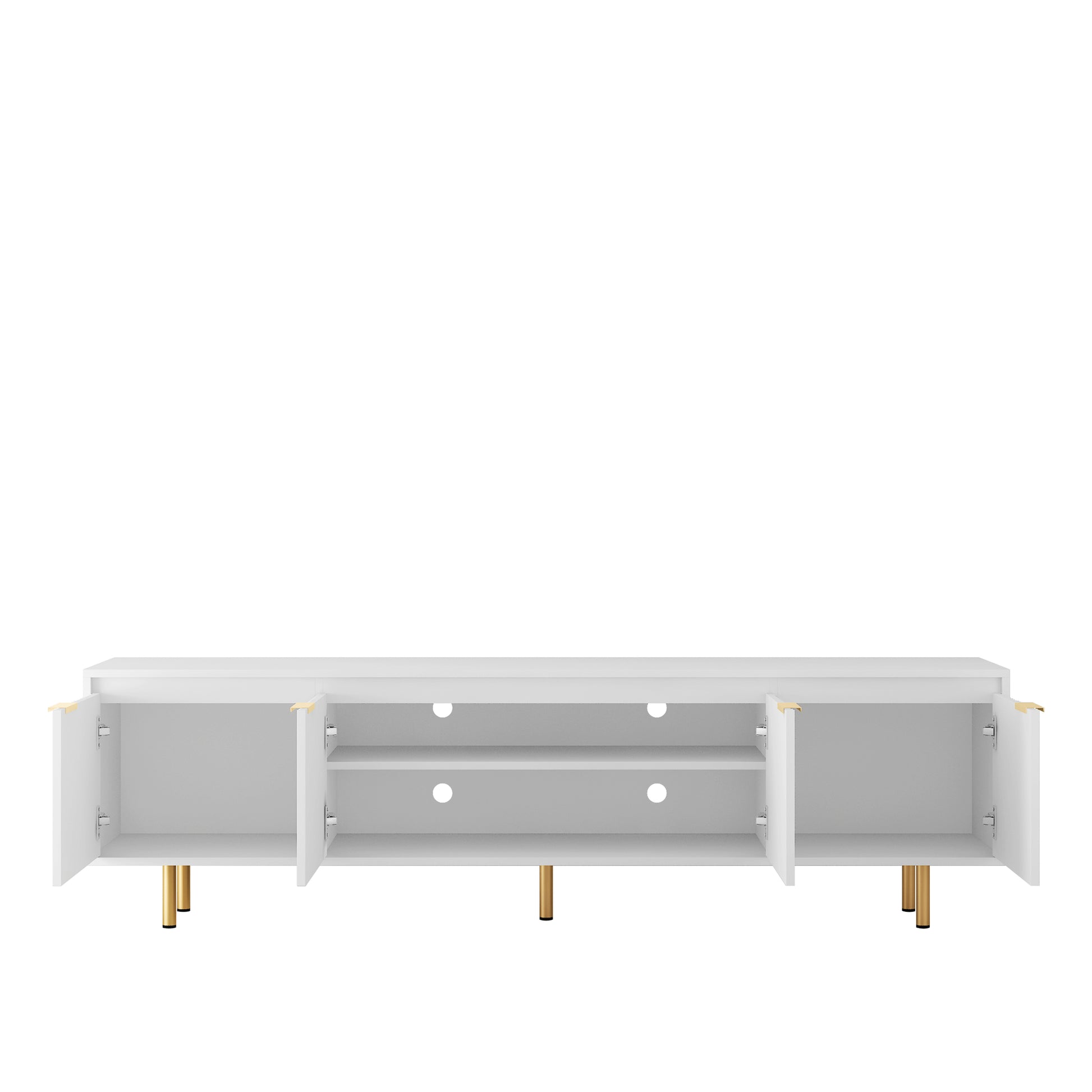 Mid Century Modern Led Tv Stand For 80 Inch Tv, Entertainment Center Wood Tv Stand, Fluted Trim Tv Stand With 4 Doors White 70 79 Inches Mdf