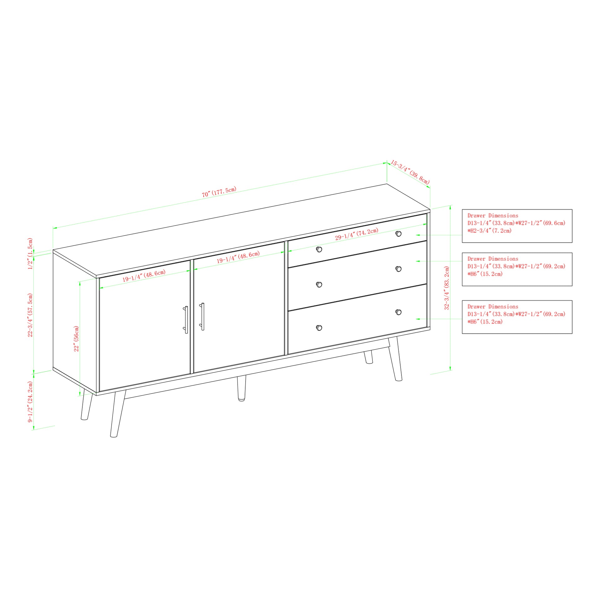 Mid Century Modern Minimalist 2 Door Sideboard Acorn Brown Mdf