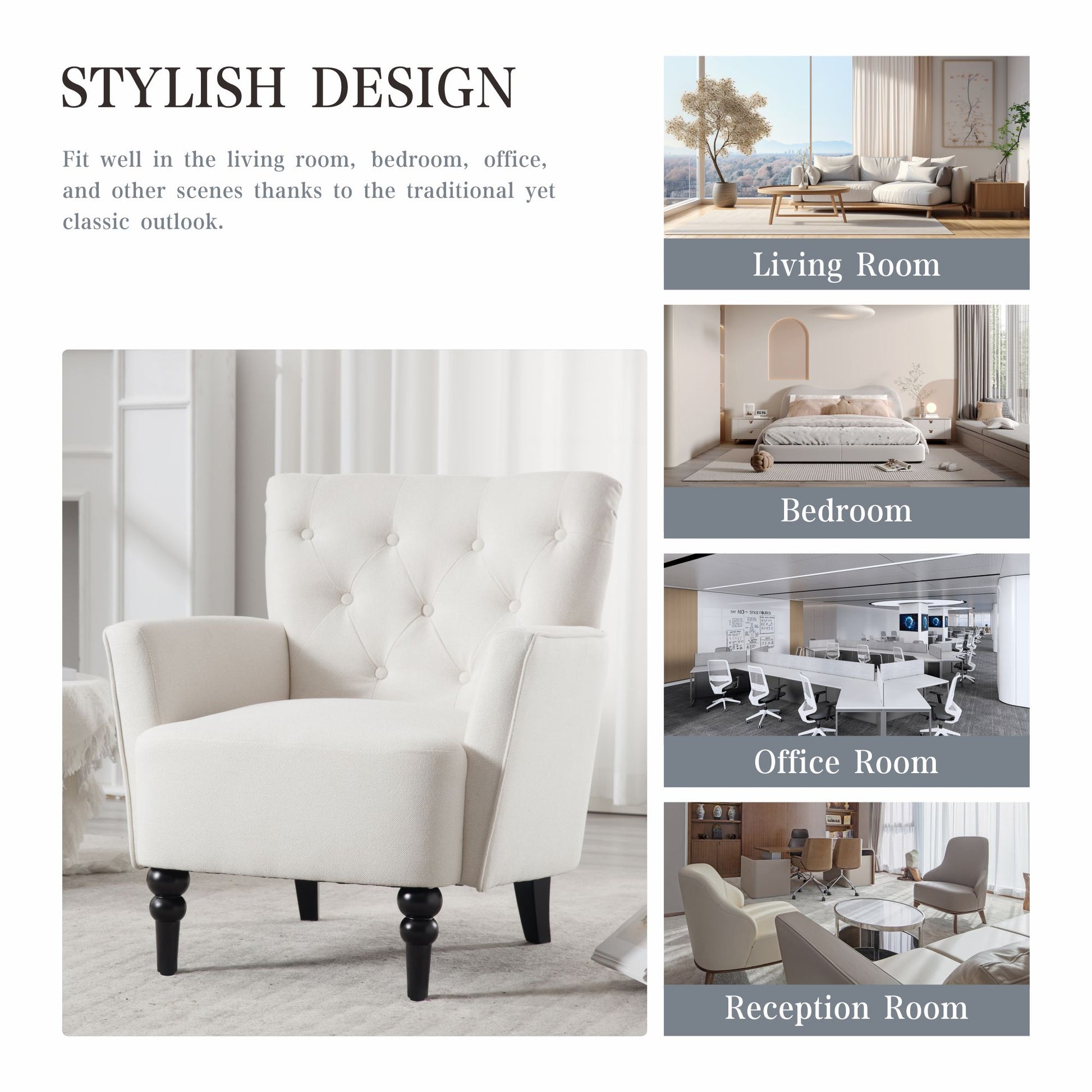 Mid Century Morden Arm Chair, Accent Chair With Ergonomic Cushion,Upholstered In Linen Fabric, Solid Wood Legs,Upholstered Single Sofa Club Chair For Living Room, Bedroom, Home Office,Cream. Cream Primary Living Space Mid Century Modern,Modern Rubberwood