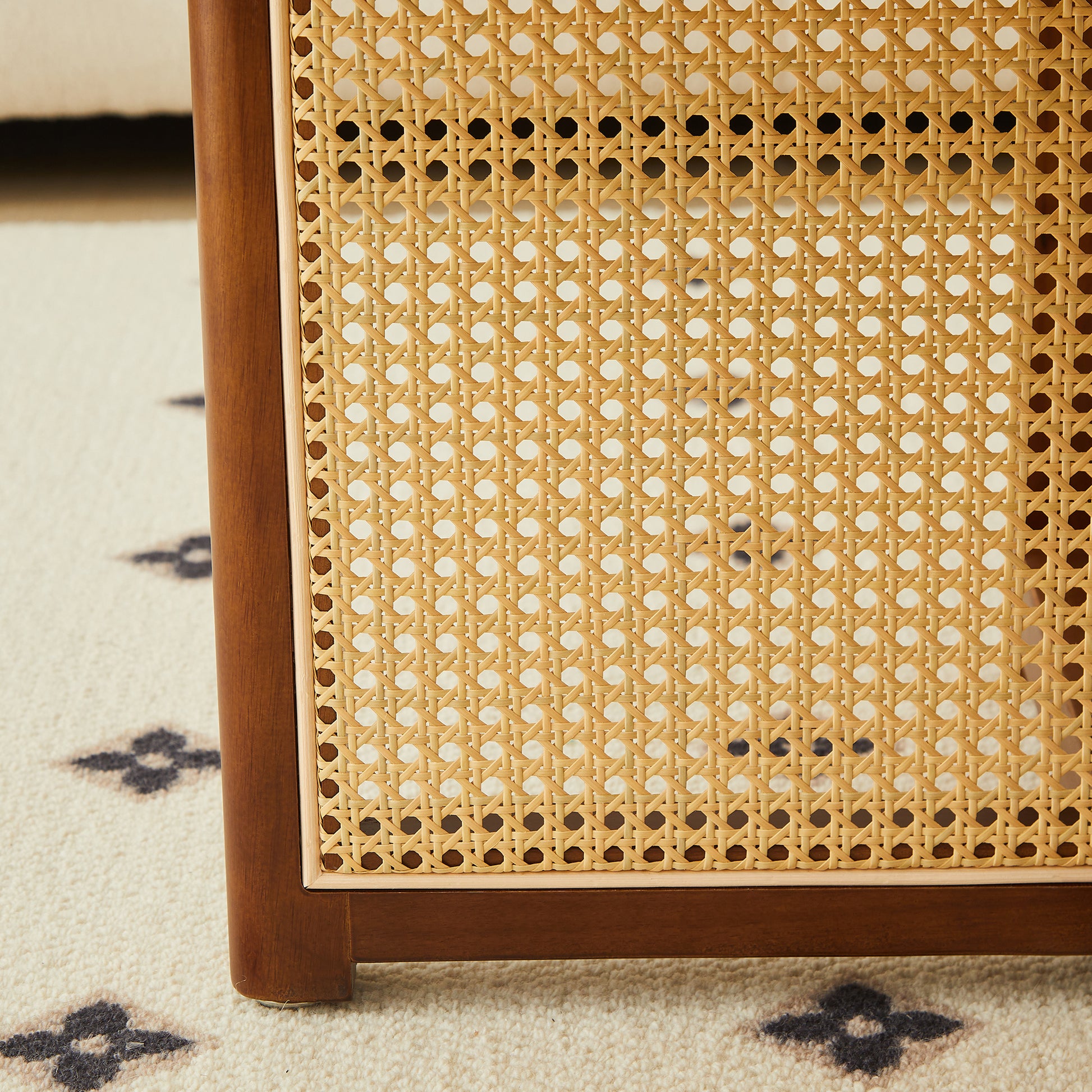 Mid Century Wooden Coffee Table With Pe Cane Stand, 31.5 Inch Round Solid Wood Bohemian Style Coffee Table, Unique Central Cocktail Table For Living Rooms, Apartments And Offices Walnut Rubber Wood