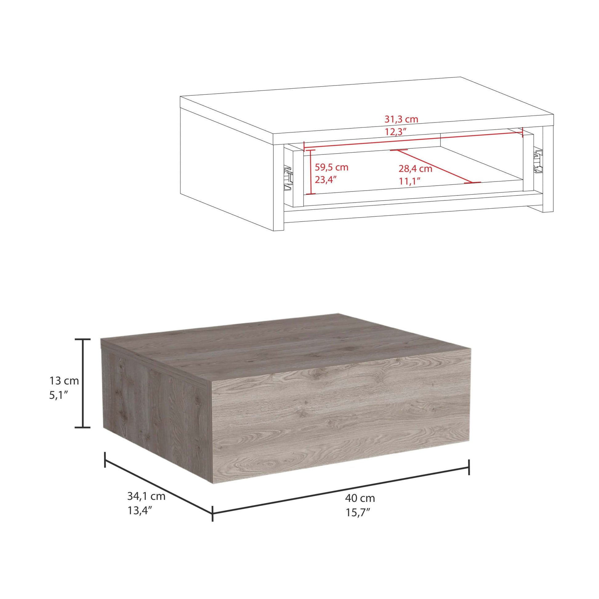 Milano Floating Nightstandend Table, Side Table Wall Mounted With Drawer Light Gray Bedroom Gray Particle Board Particle Board