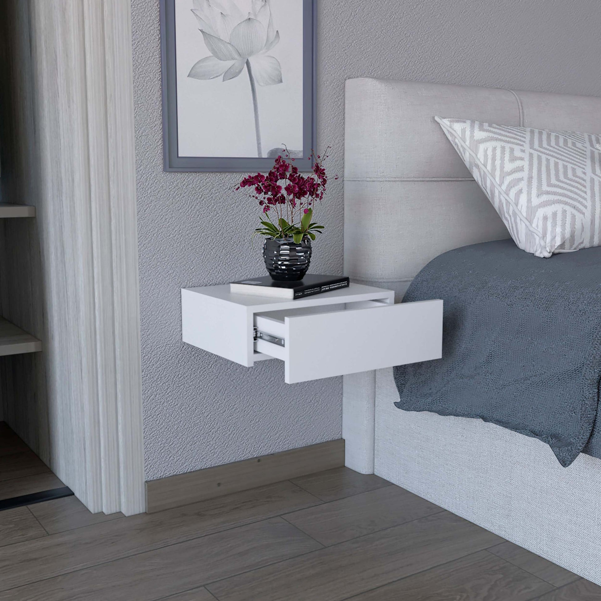 Milano Floating Nightstandend Table, Side Table Wall Mounted With Drawer White Bedroom White Particle Board Particle Board