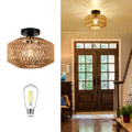 Mini Rattan Flush Mount Light With Dimmable Led Bulb Brown Rattan