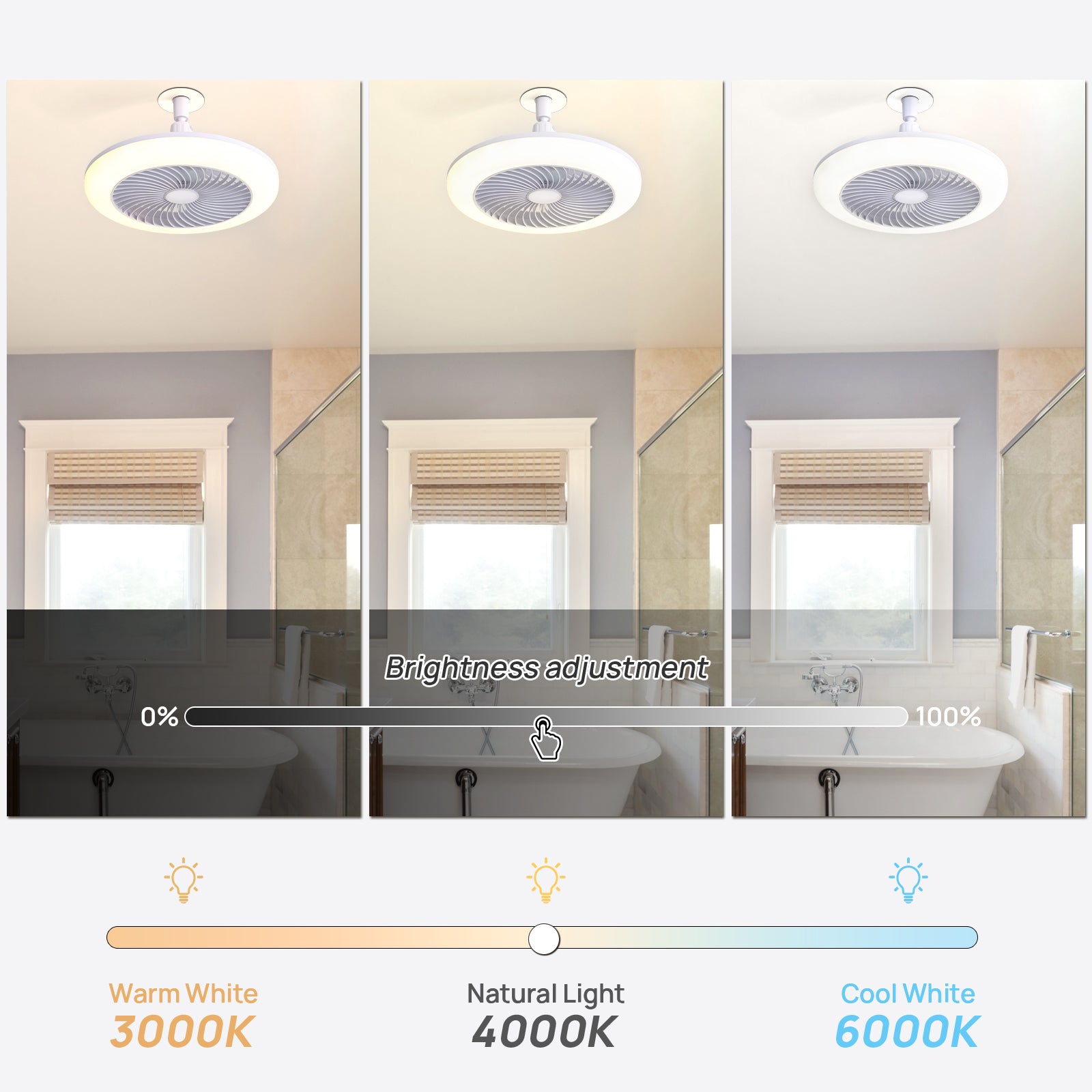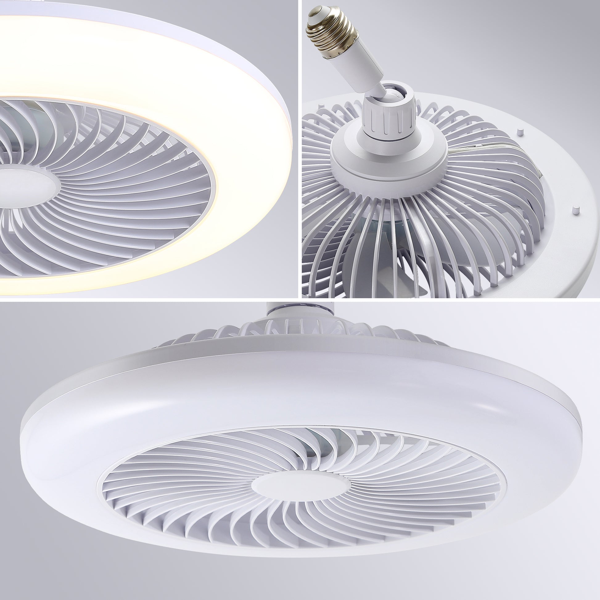 Mini Size 8 Inch Enclosed Socket E26 Ceiling Fan Light 3 Speeds 3 Light Color Dimming And Timing For Small Room Kitchen White Pc