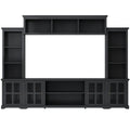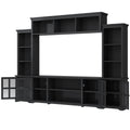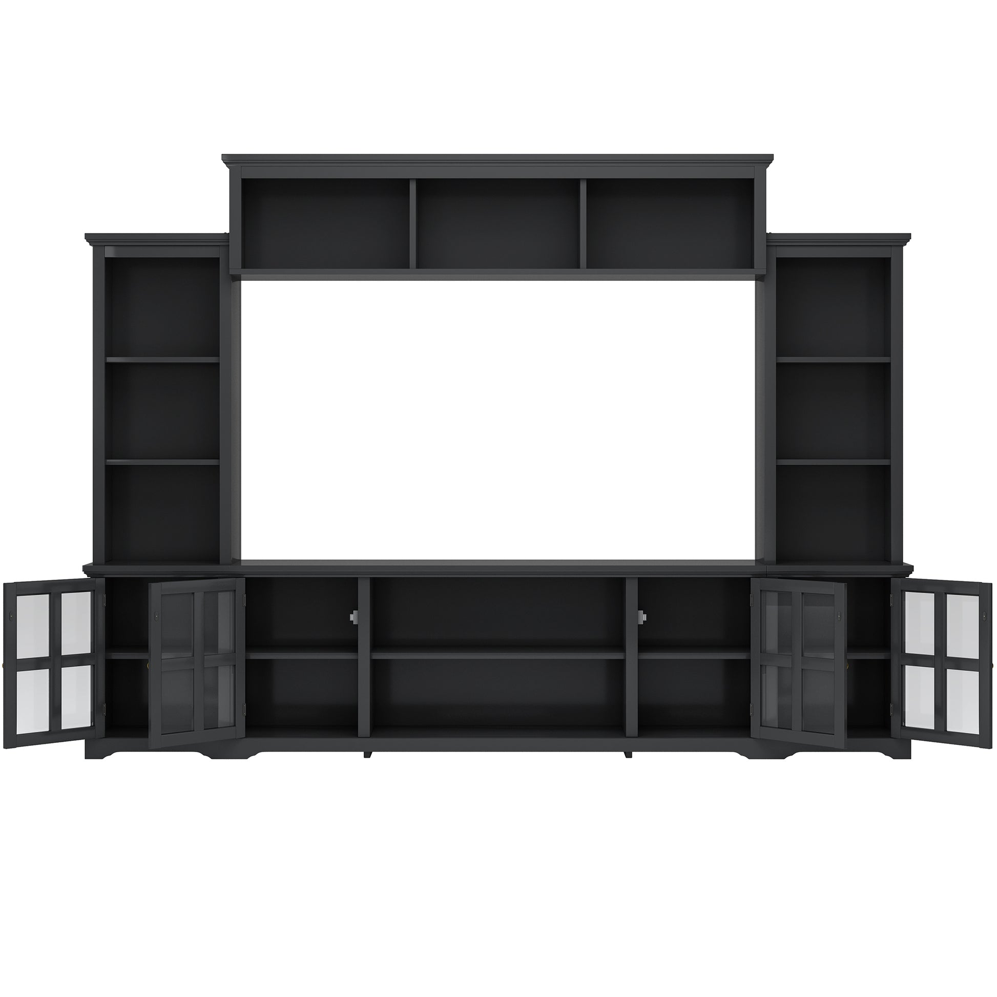 Minimalism Style Entertainment Wall Unit With Bridge, Modern Tv Console Table For Tvs Up To 70", Multifunctional Tv Stand With Tempered Glass Door, Black Black 70 79 Inches Particle Board