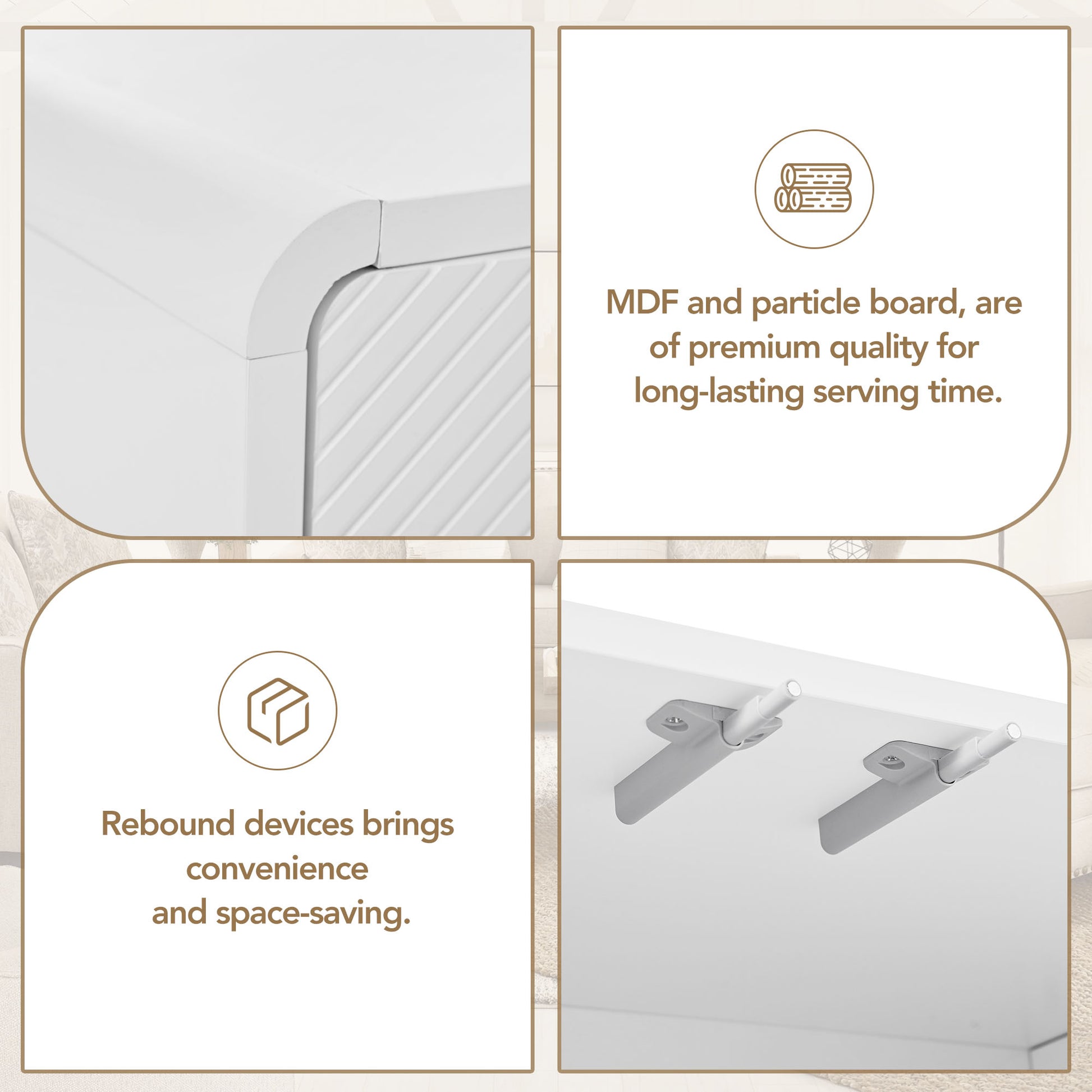 Minimalist Style 60"L Large Storage Space Sideboard With 4 Doors And Rebound Device For Living Room And Entryway White White Mdf