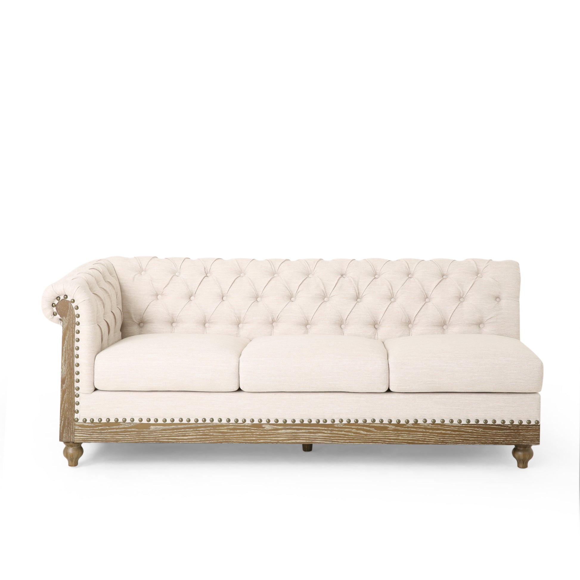 Mirod Comfy Large Sectional Sofa With Wooden Legs, Retro Style For Living Room Beige Fabric 6 Seat