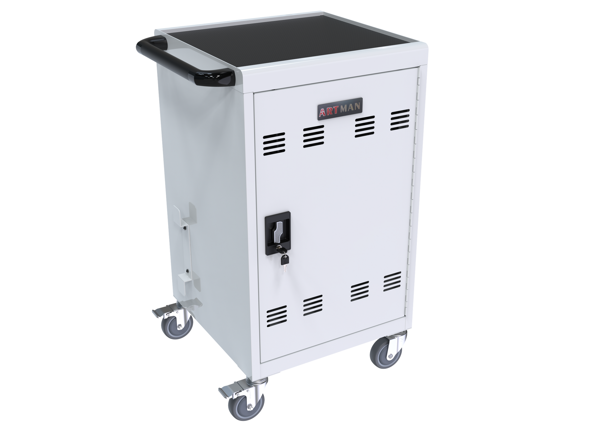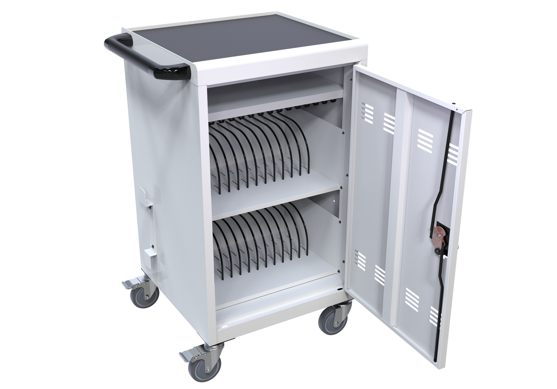 Mobile Charging Cart And Cabinet For Tablets Laptops 32 Device White Antique White Steel
