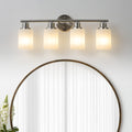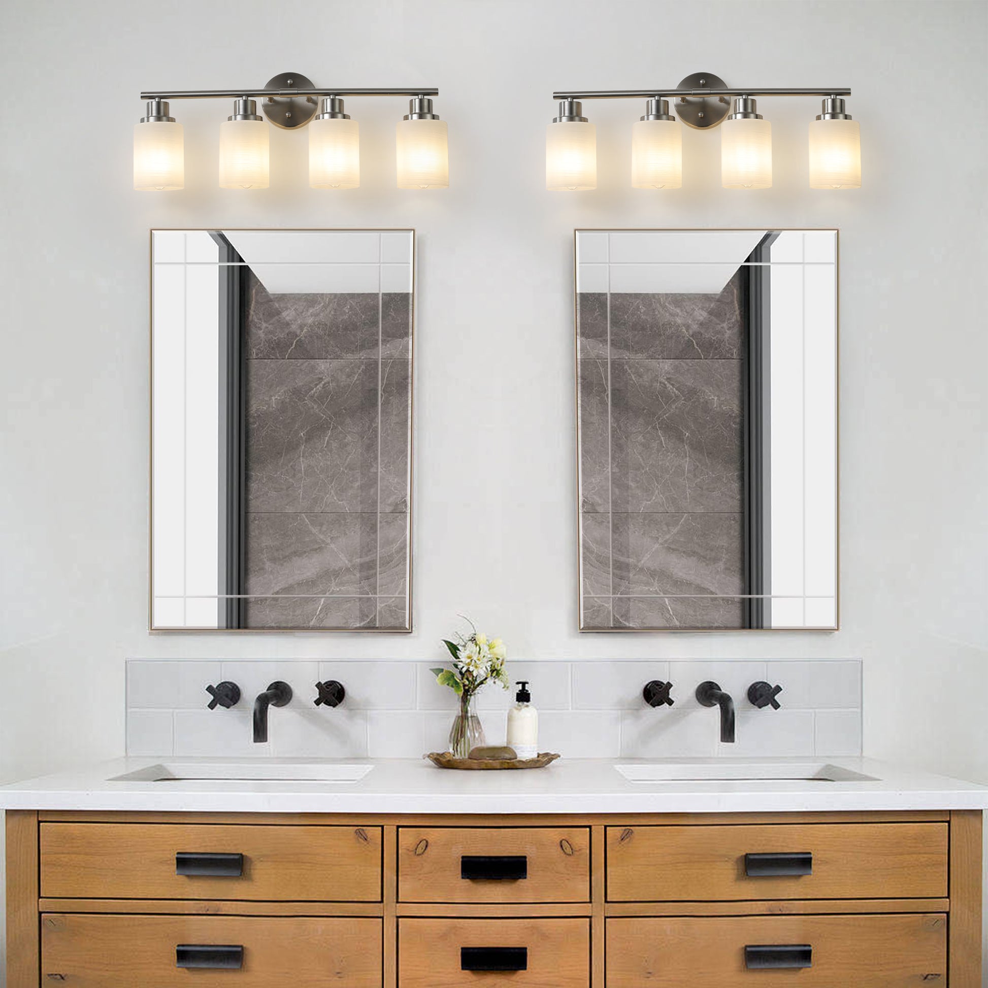 Modern 4 Light Vanity Wall Sconce, Brushed Nickel Finish With Frosted Glass Shades For Bathroom Or Hallway Lighting No Bulbs Brushed Nickel Glass,Iron