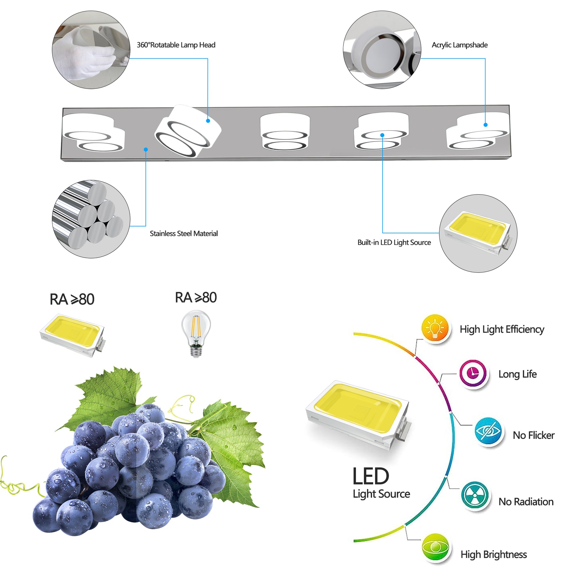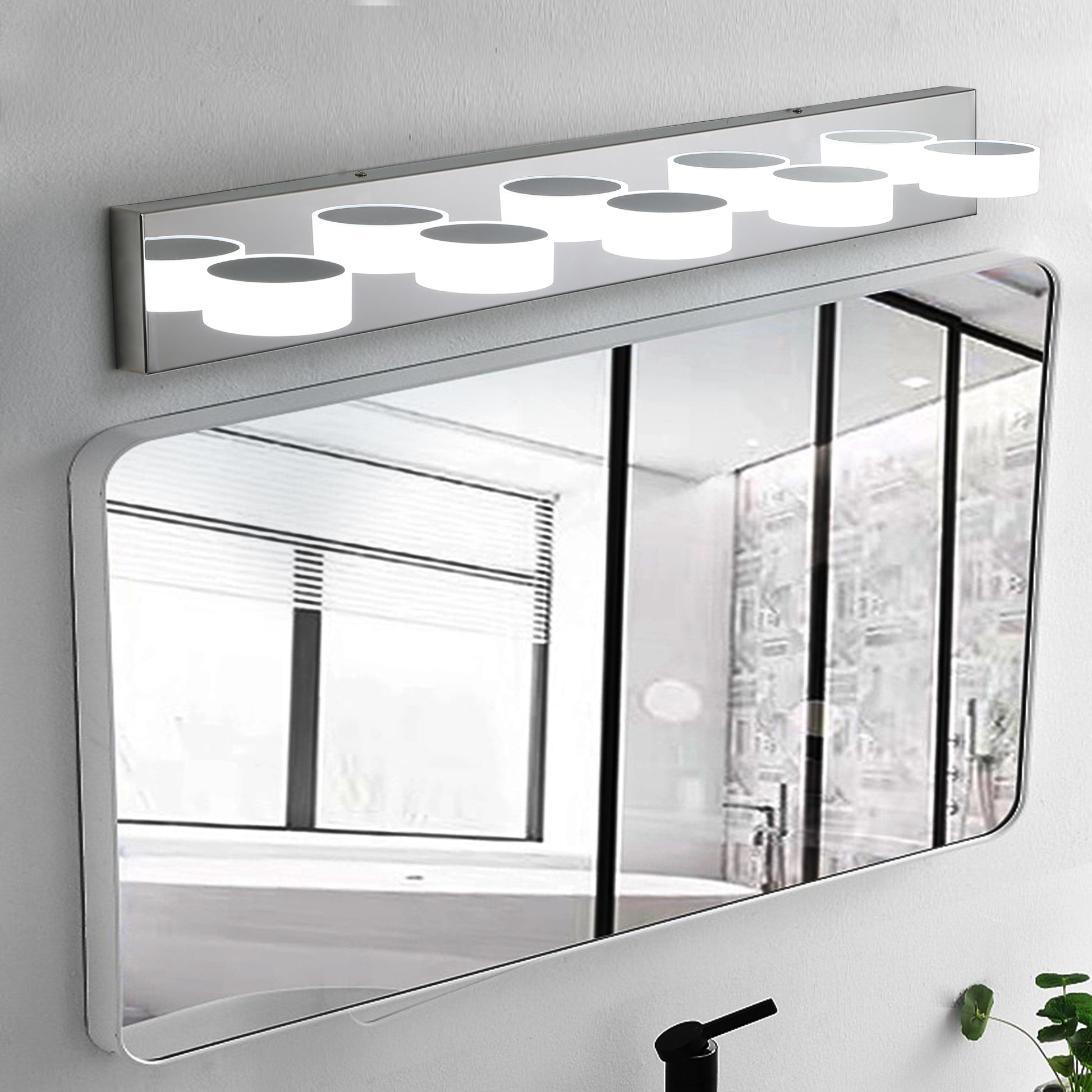 Modern 5 Light Led Vanity Light Fixture Chrome Finish With Acrylic Light Shades Energy Efficient Bathroom Wall Sconce Dimmable, 37 Inch Length Chrome Acrylic,Stainless Steel