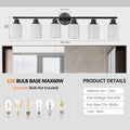 Modern 6 Light Vanity Bathroom Mirror Light, Frosted White Glass With Black Iron Frame, Contemporary Wall Sconce For Bedroom, Bathroom, And Dressing Room No Bulbs Black,White Glass,Iron