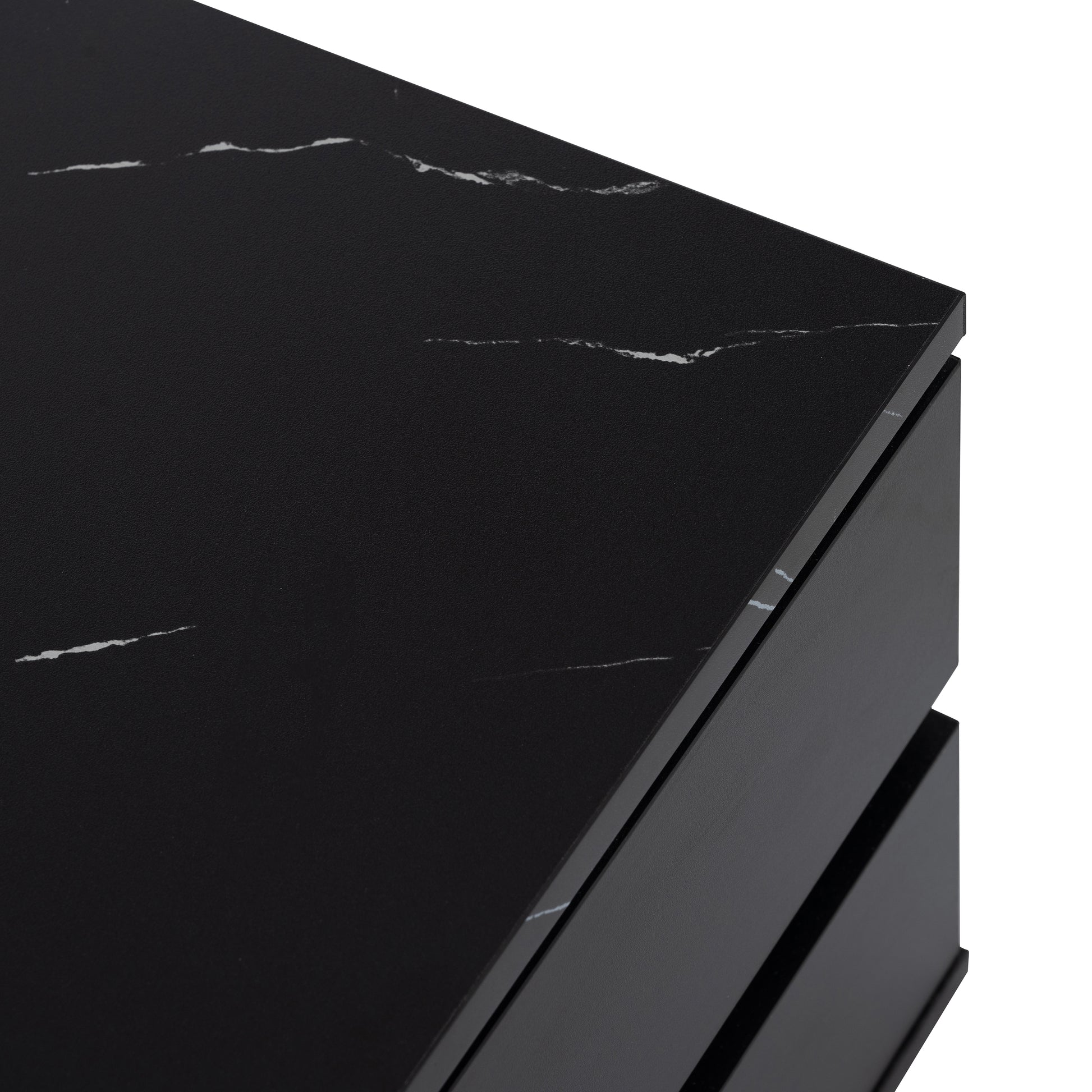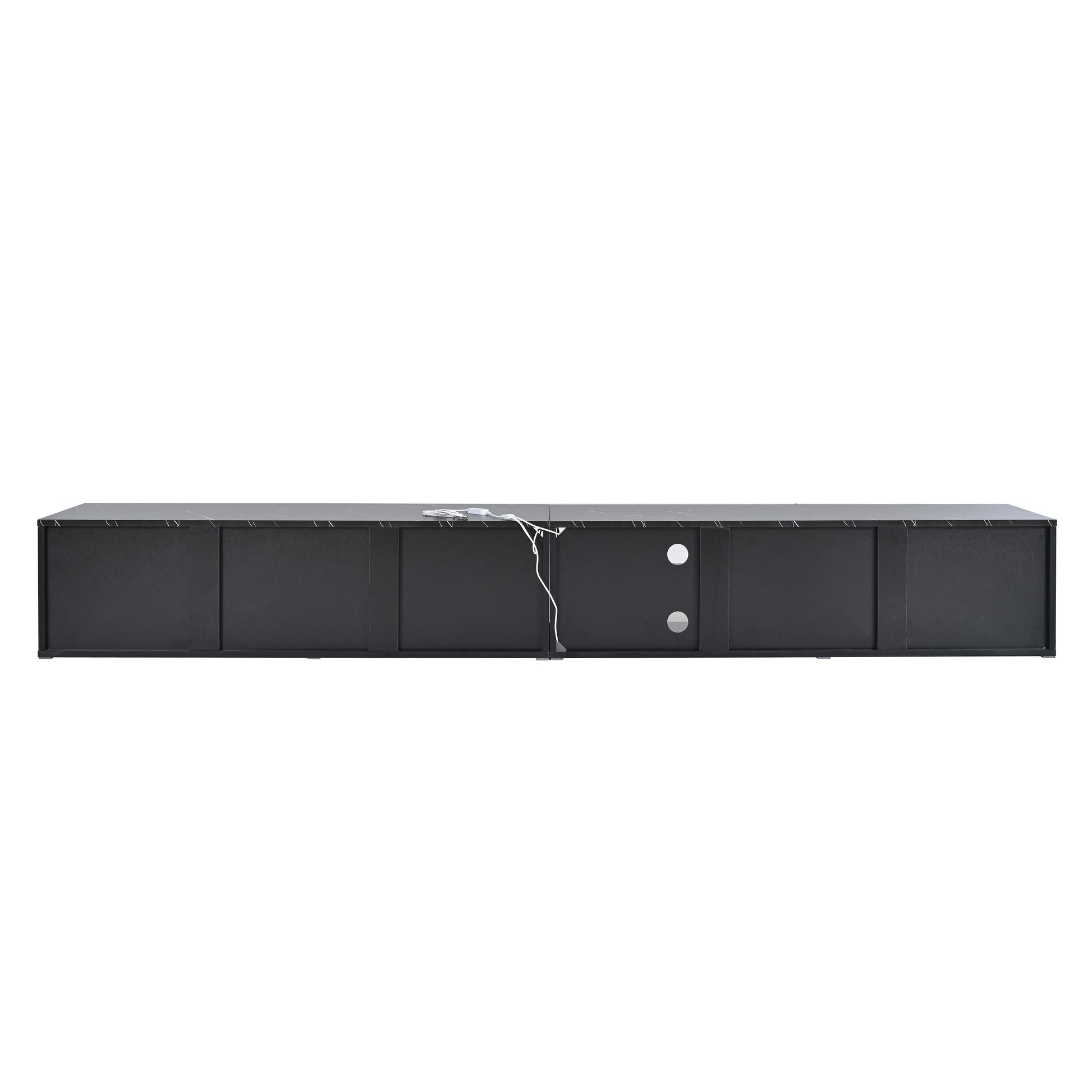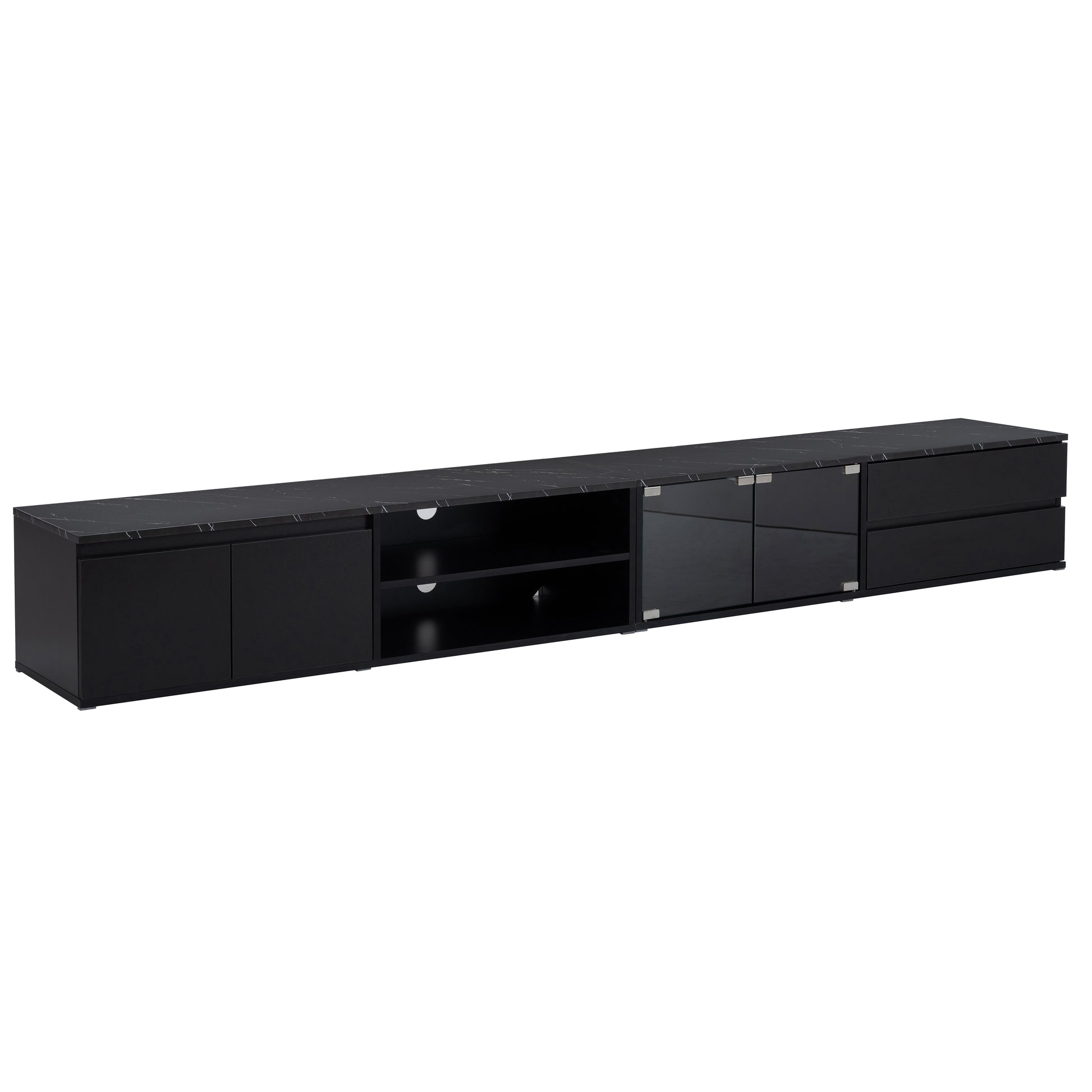 Modern App Controlled Led Tv Stand For Tvs Up To 105'', Faux Marble Tabletop Media Console With Tempered Glass Doors, Entertainment Center With 2 Drawers & Cabinets For Living Room, Black Black 90 Inches Or Larger Particle Board Mdf
