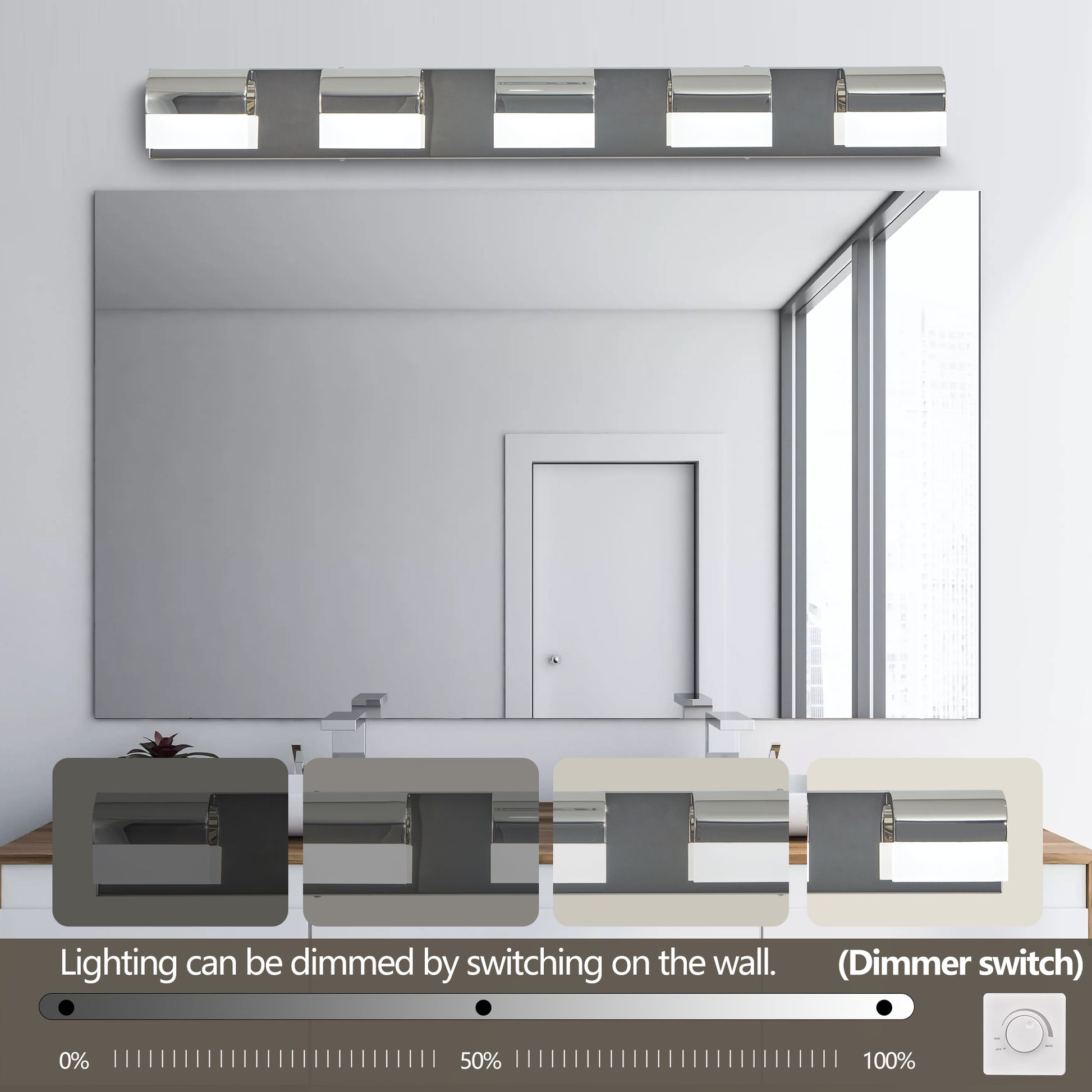 Modern Bathroom Vanity Lighting 5 Light Led Vanity Lights Over Mirror Bath Wall Lighting Chrome Modern Acrylic Stainless Steel