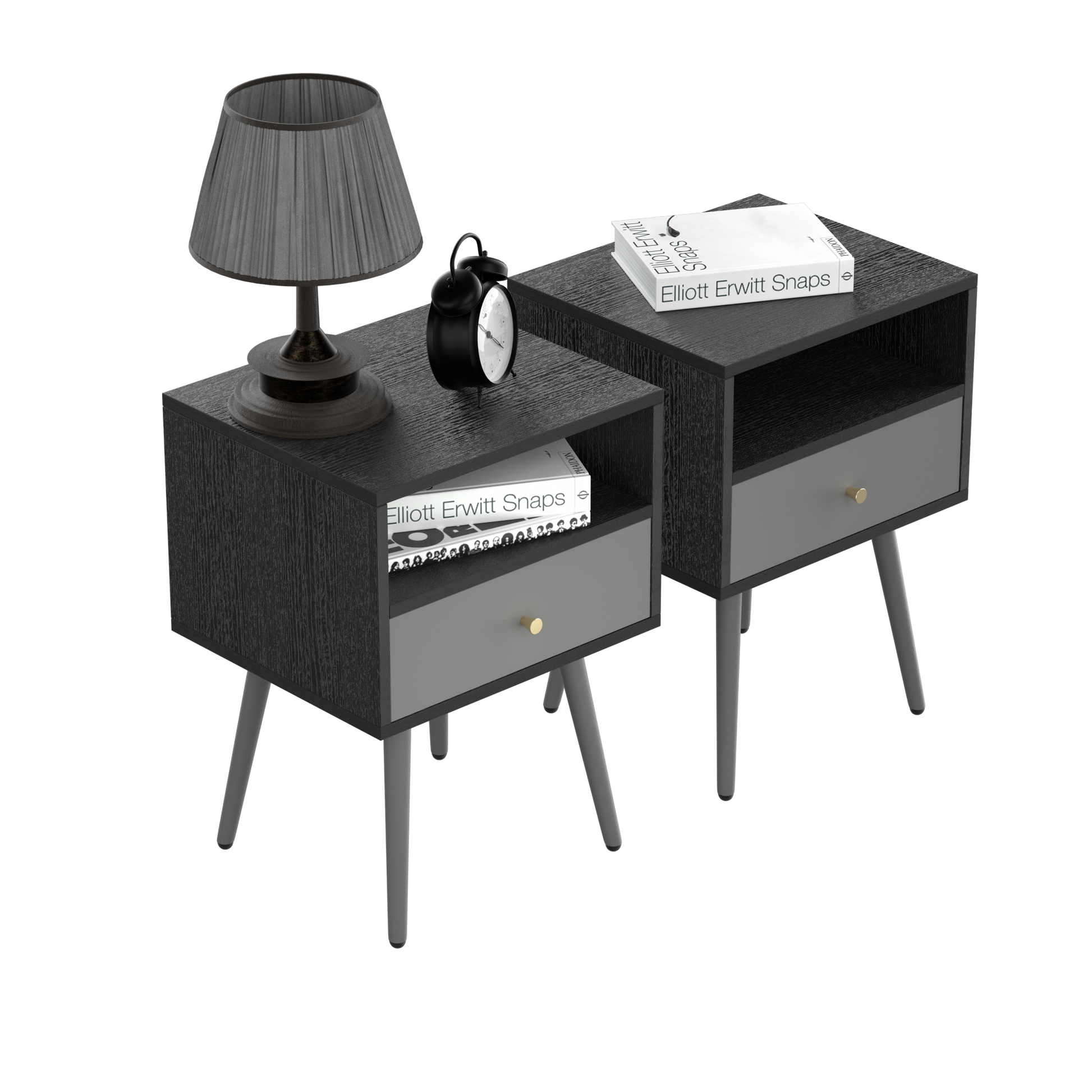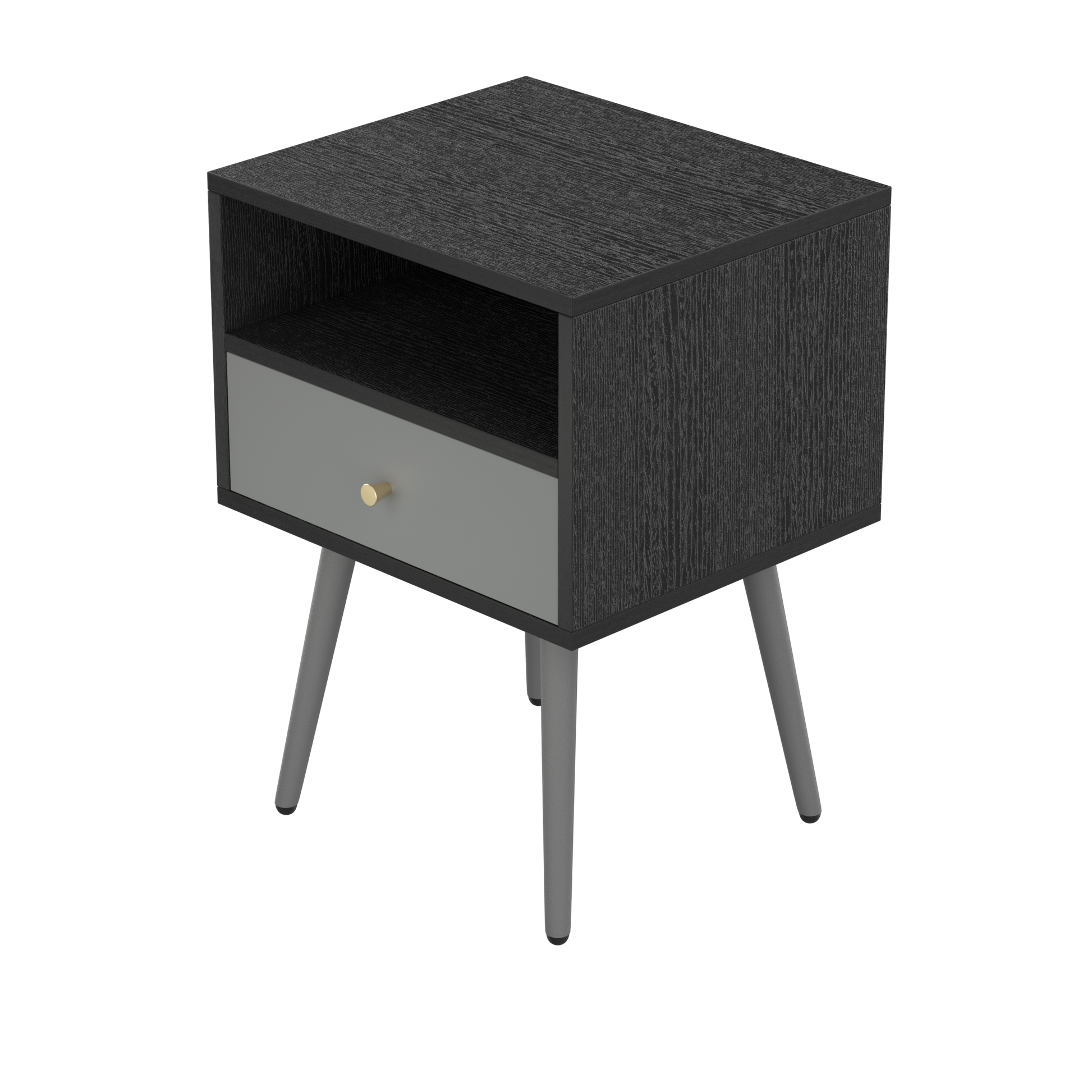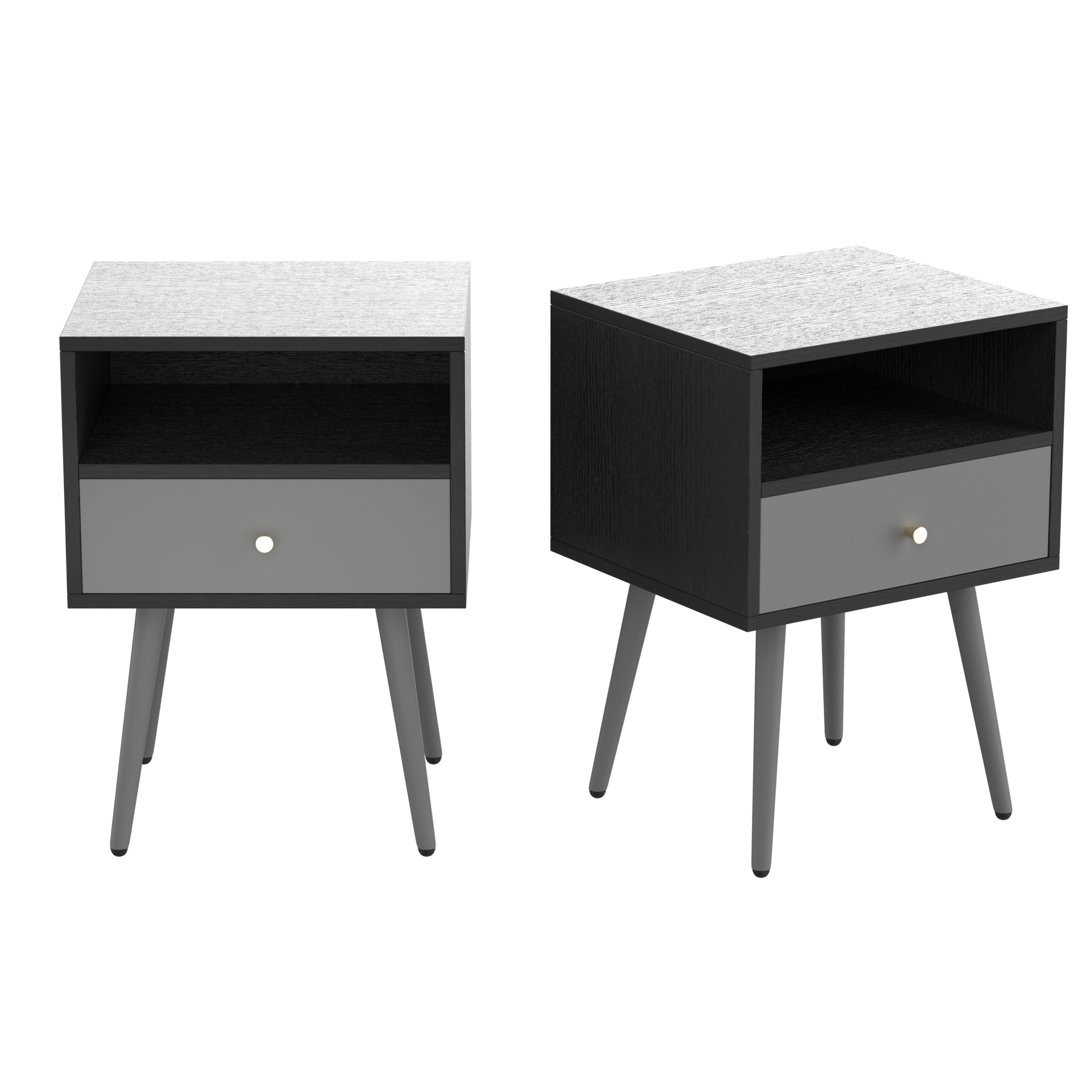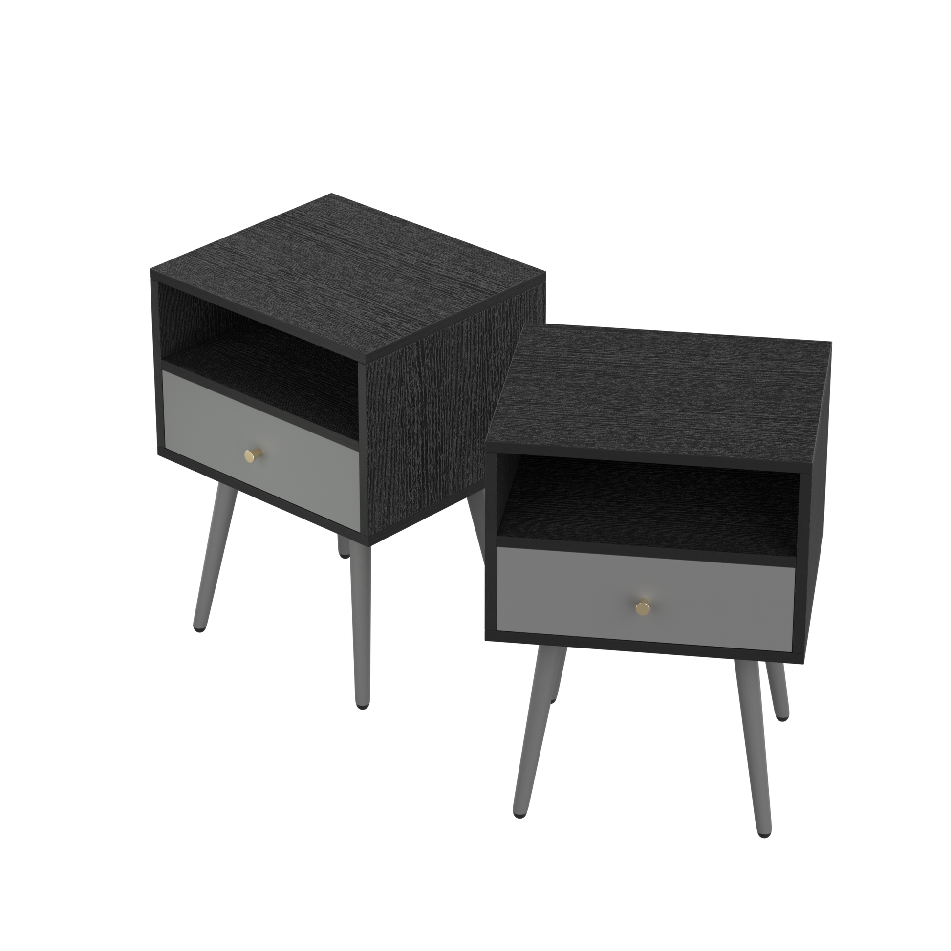 Modern Bedside Tables Set Of 2,Nightstand With 1 Storage Drawer Chic Simple Assembly End Side Table,Sofa Table,For Bedroom Living Room Office 2Pcs,Dark Grey Dark Gray Metal & Wood
