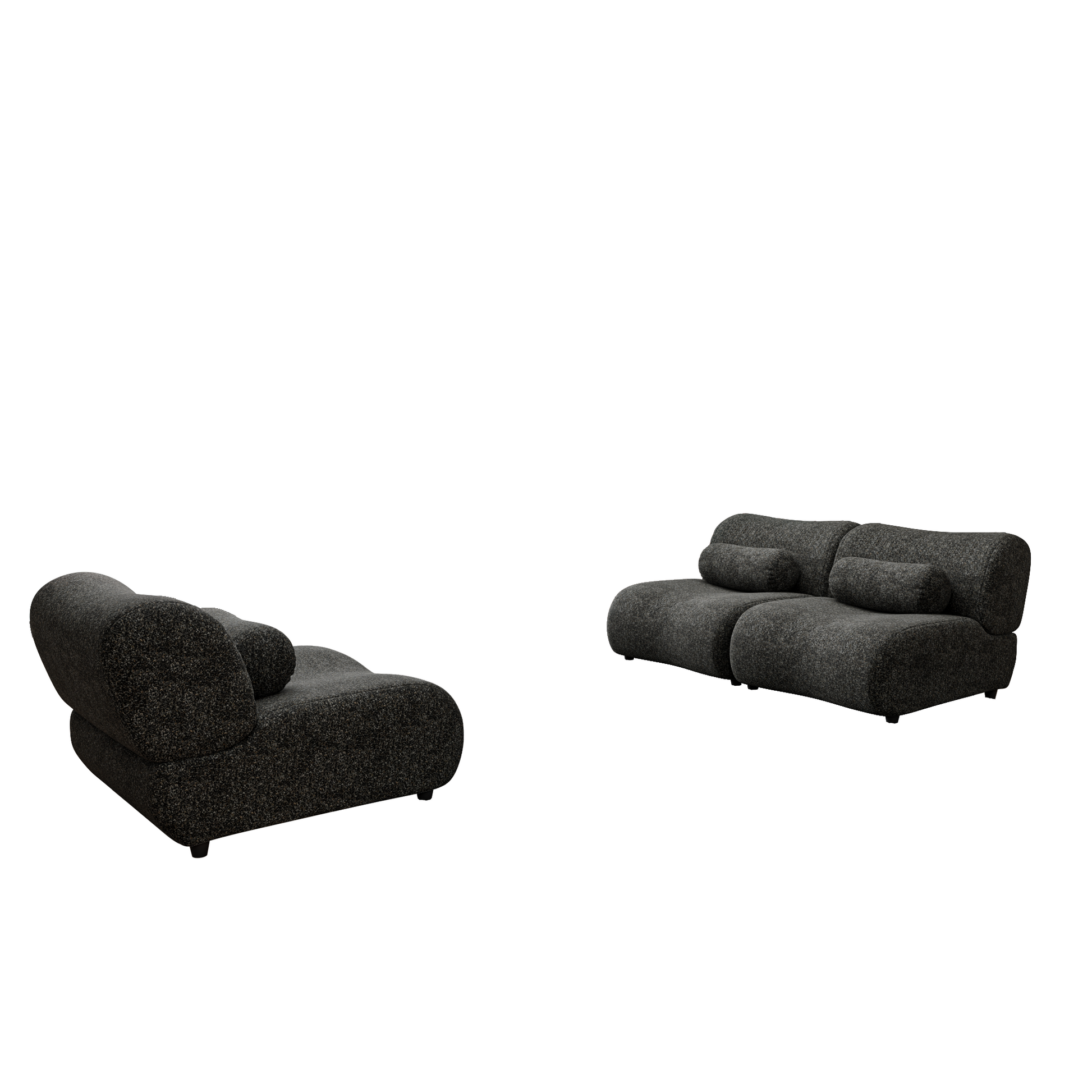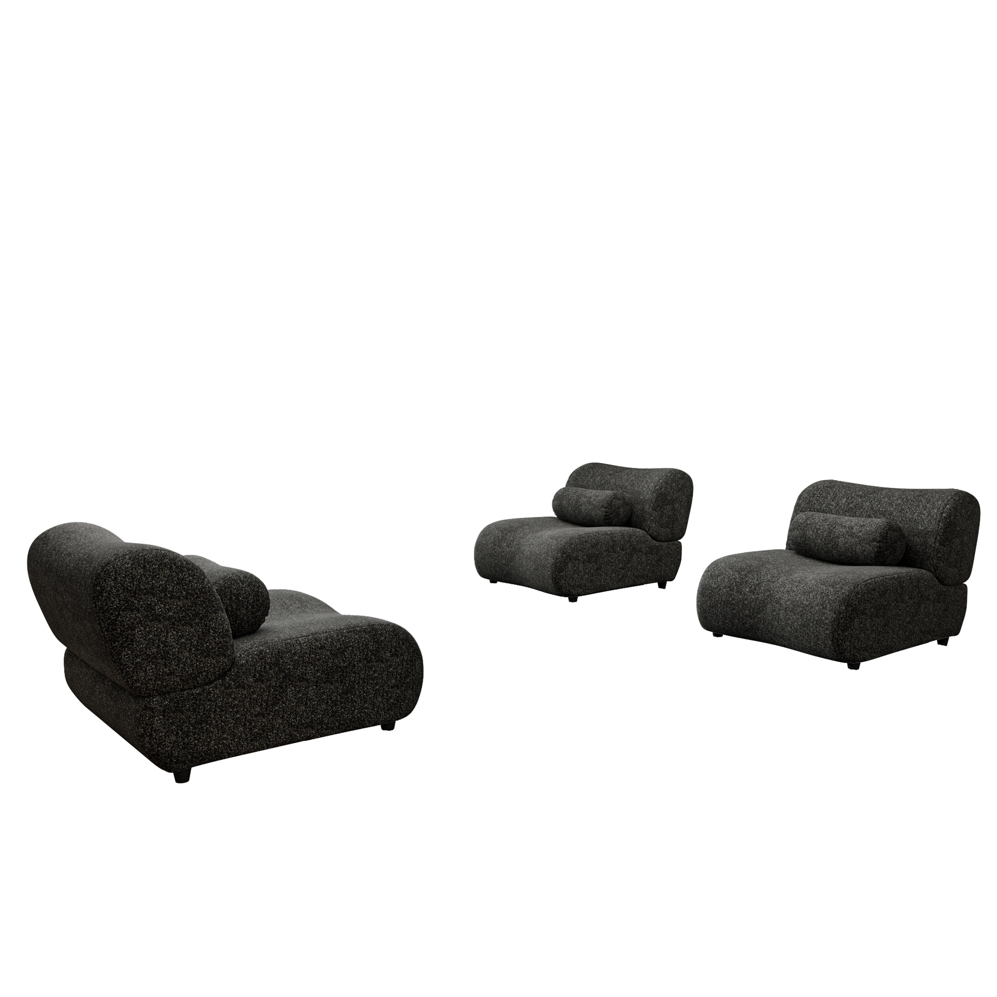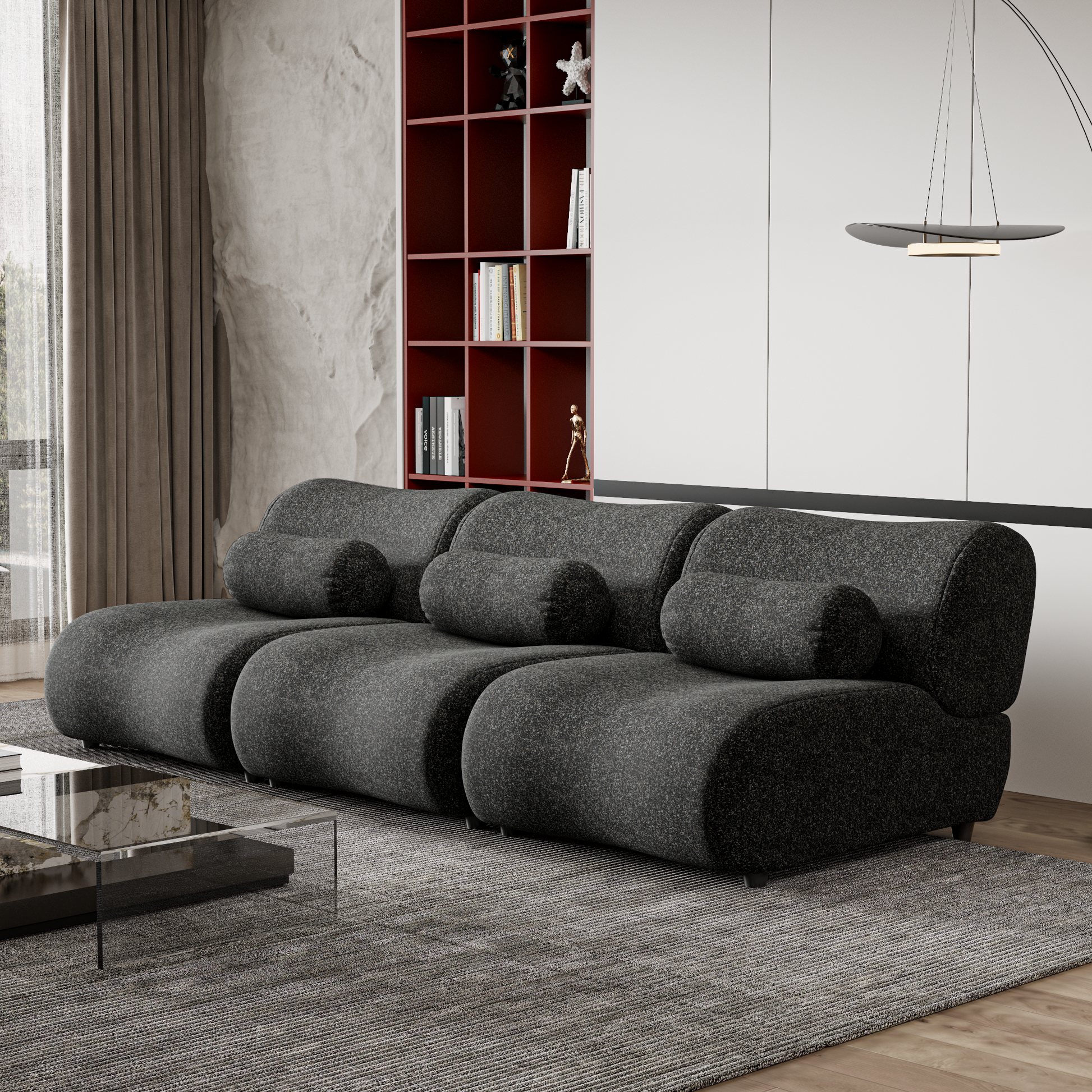Modern Black Chenille Sofa Set 3 Seat Modular Sectional Couch With Cylindrical Pillows For Living Room Stylish & Comfortable Furniture Black Chenille 3 Seat