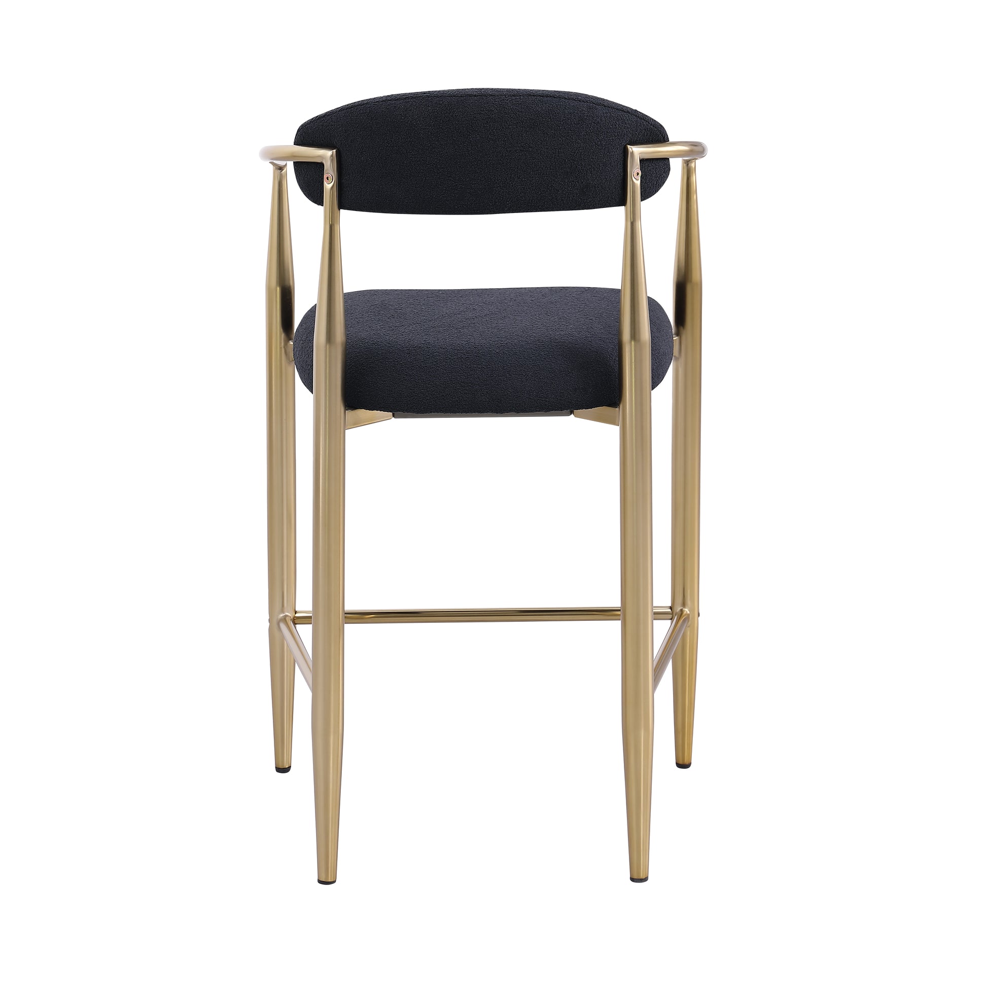 Modern Boucle Bar Stools Set Of 2 Modern Upholstered Bar Height Barstools Vintage High Island Chairs With Metal Frame Back Arms For Kitchen Home Pub Dining Room Iron Solid Black Gold Dining Room