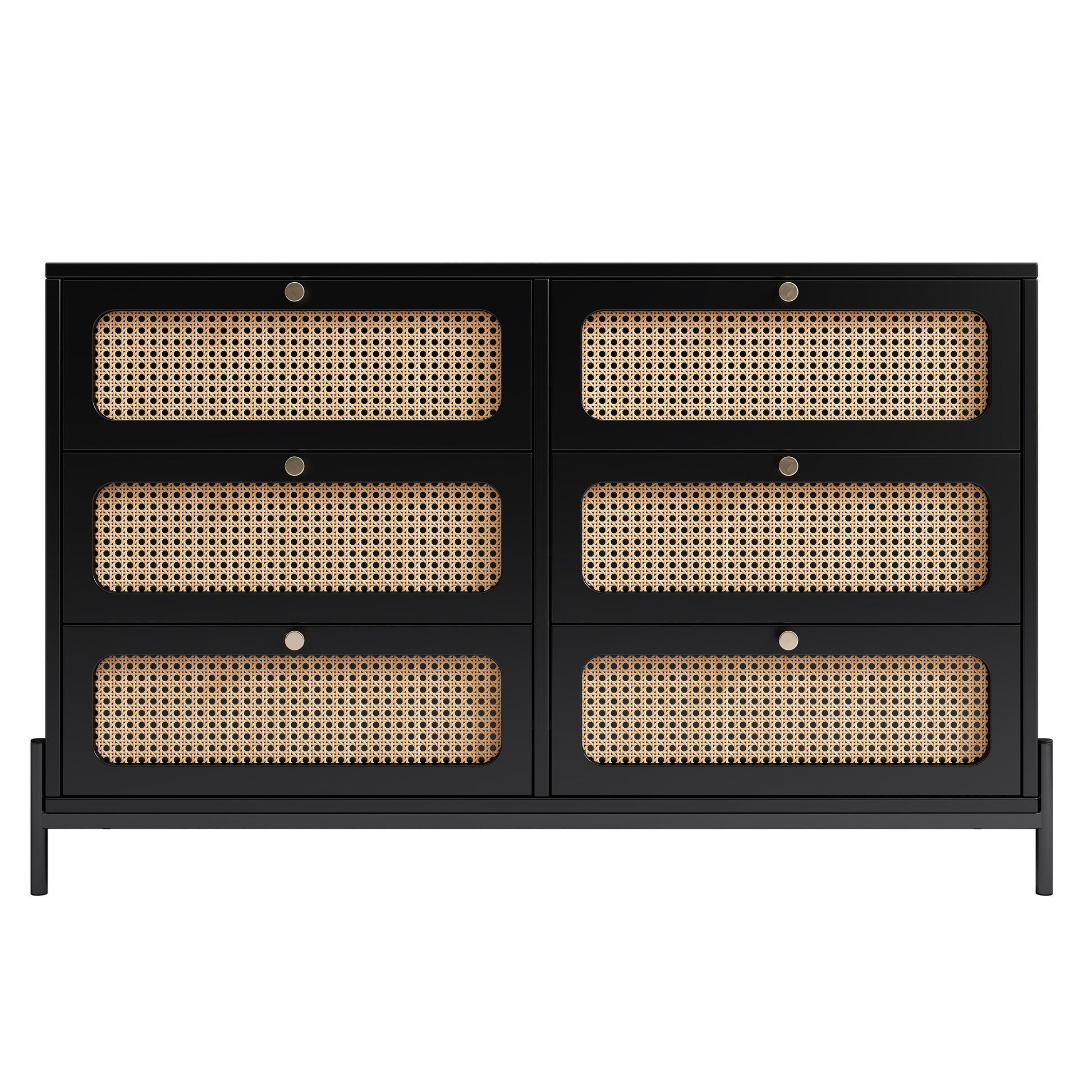 Modern Cannage Rattan Wood Closet 6 Drawer Dresser Wood Storage Cabinet Sideboard For Bedroom, Living Room, Entryway, Hallway, Black Old Sku:Wf303224Aab Black Rattan