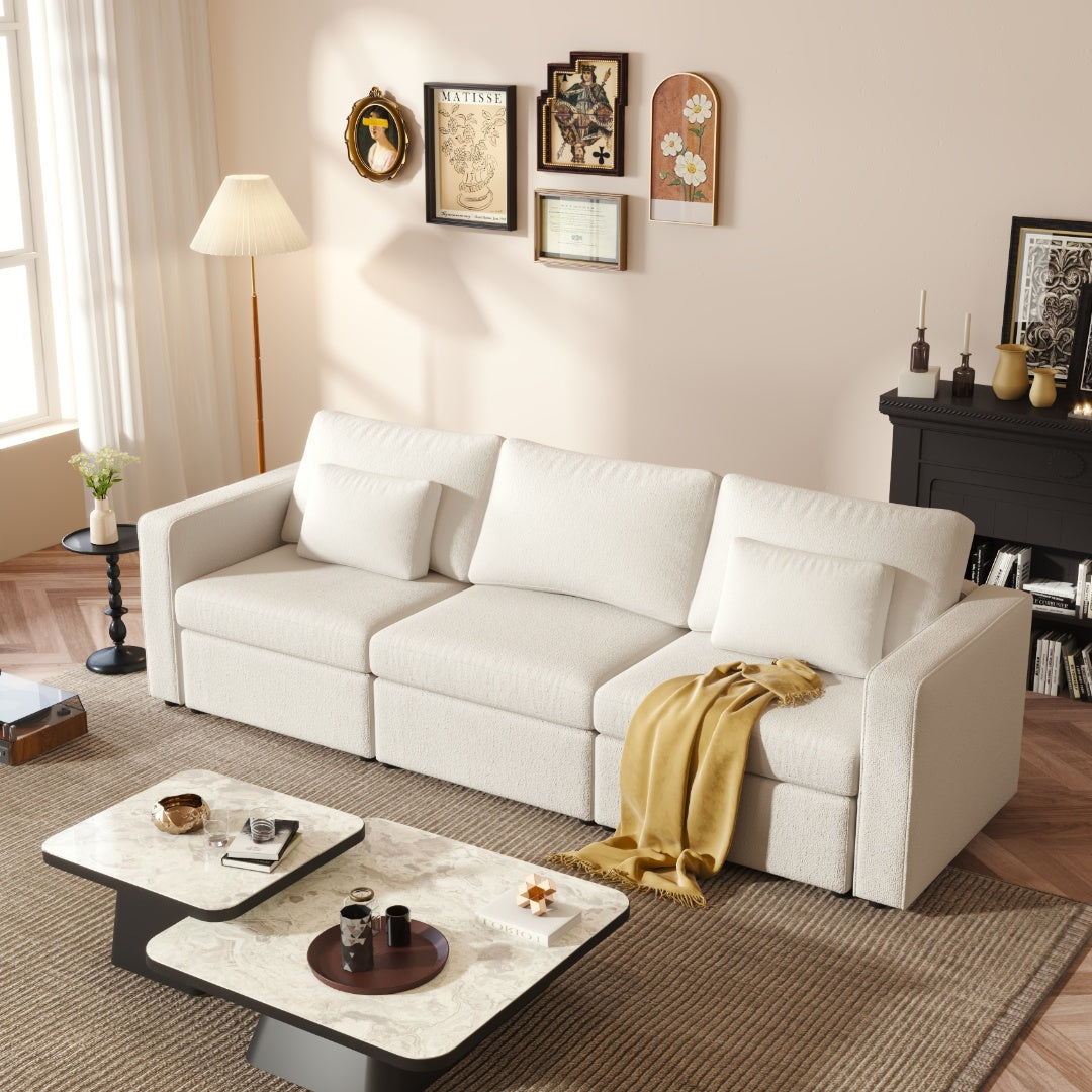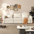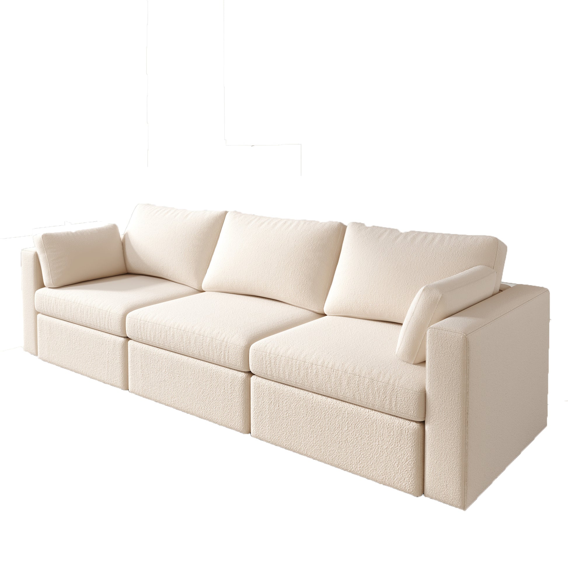 Modern Cotton Linen L Shape Sectional Sofa, Oversized Upholstery Sectional Sofa, Chaise Couch For Living Room Loft Apartment Office White 3 Seats Wood Primary Living Space Medium Duty Pine 3 Seat White Linen Medium Soft Cushion Back Minimalist,Modern