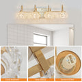 Modern Crystal Bathroom Vanity Light, 4 Light Golden Wall Sconce With Clear Glass Shade, Elegant Wall Mount Lighting For Bathroom, Powder Room, Or Vanity Mirror No Bulbs Golden Crystal Iron