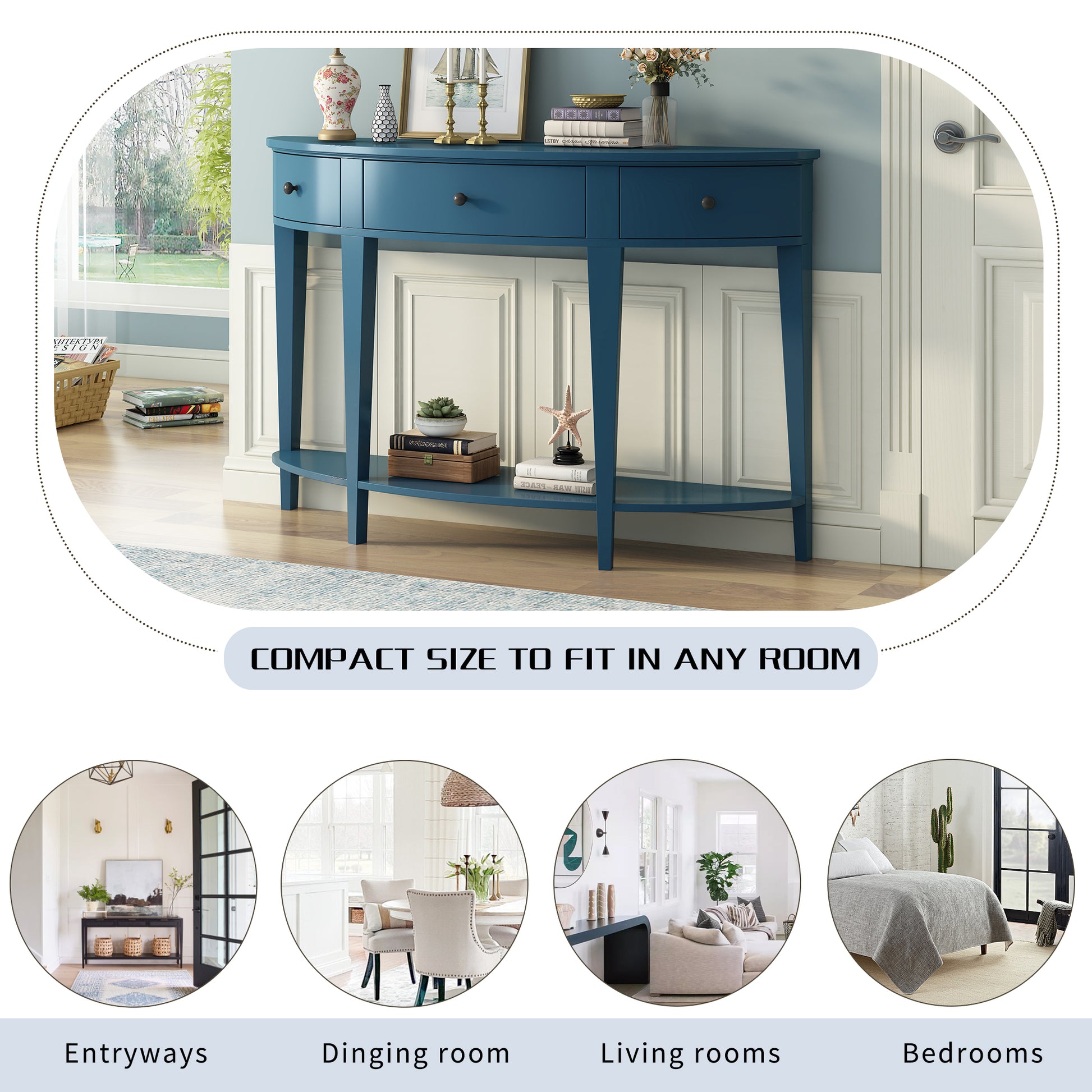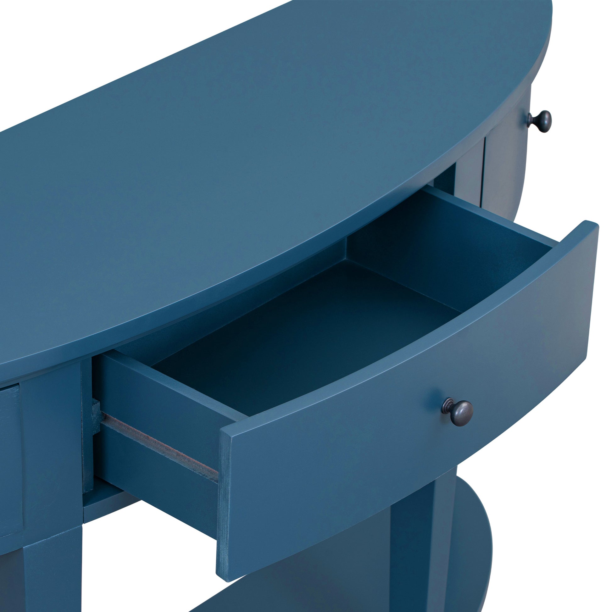 Modern Curved Console Table Sofa Table With 3 Drawers And 1 Shelf For Hallway, Entryway, Living Room Navy Blue Solid Wood Mdf