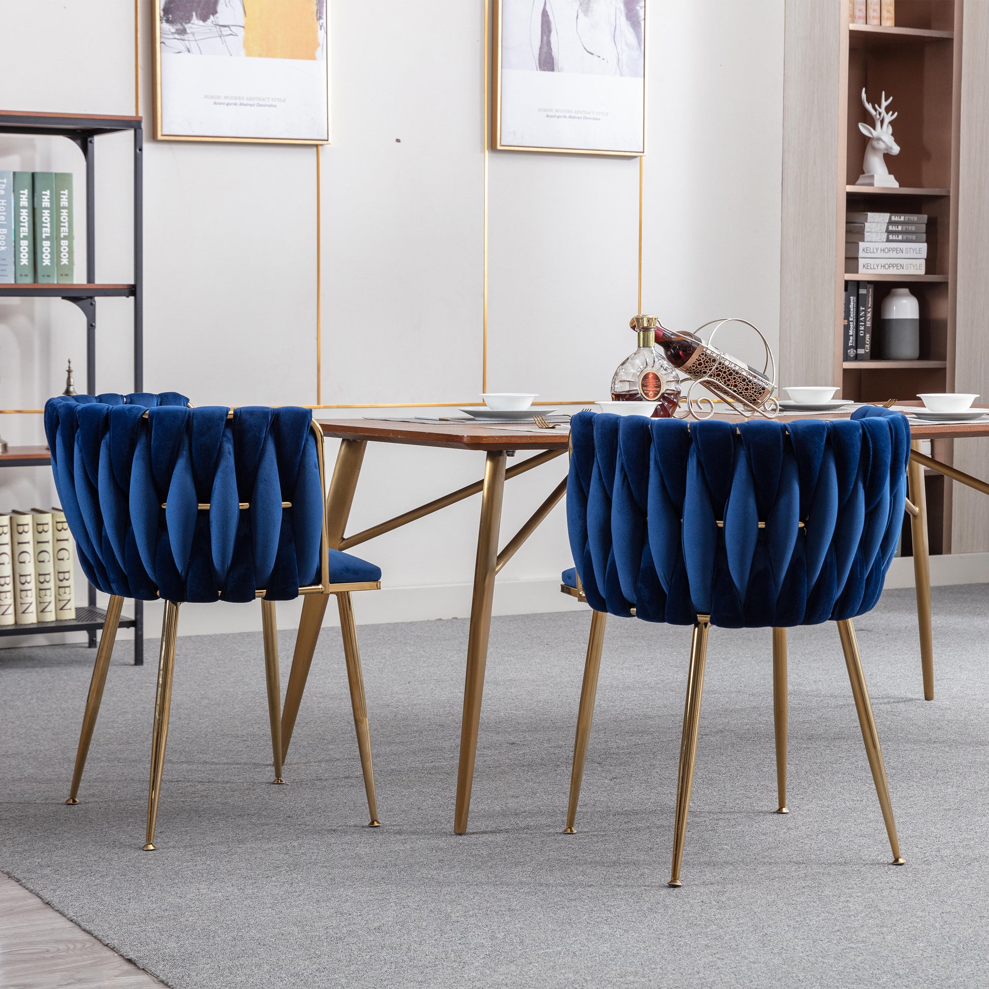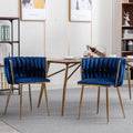 Modern Design Golden Metal Frame Velvet Fabric Dining Chair With Golden Legs,Set Of 2,Navy Navy Foam Fabric