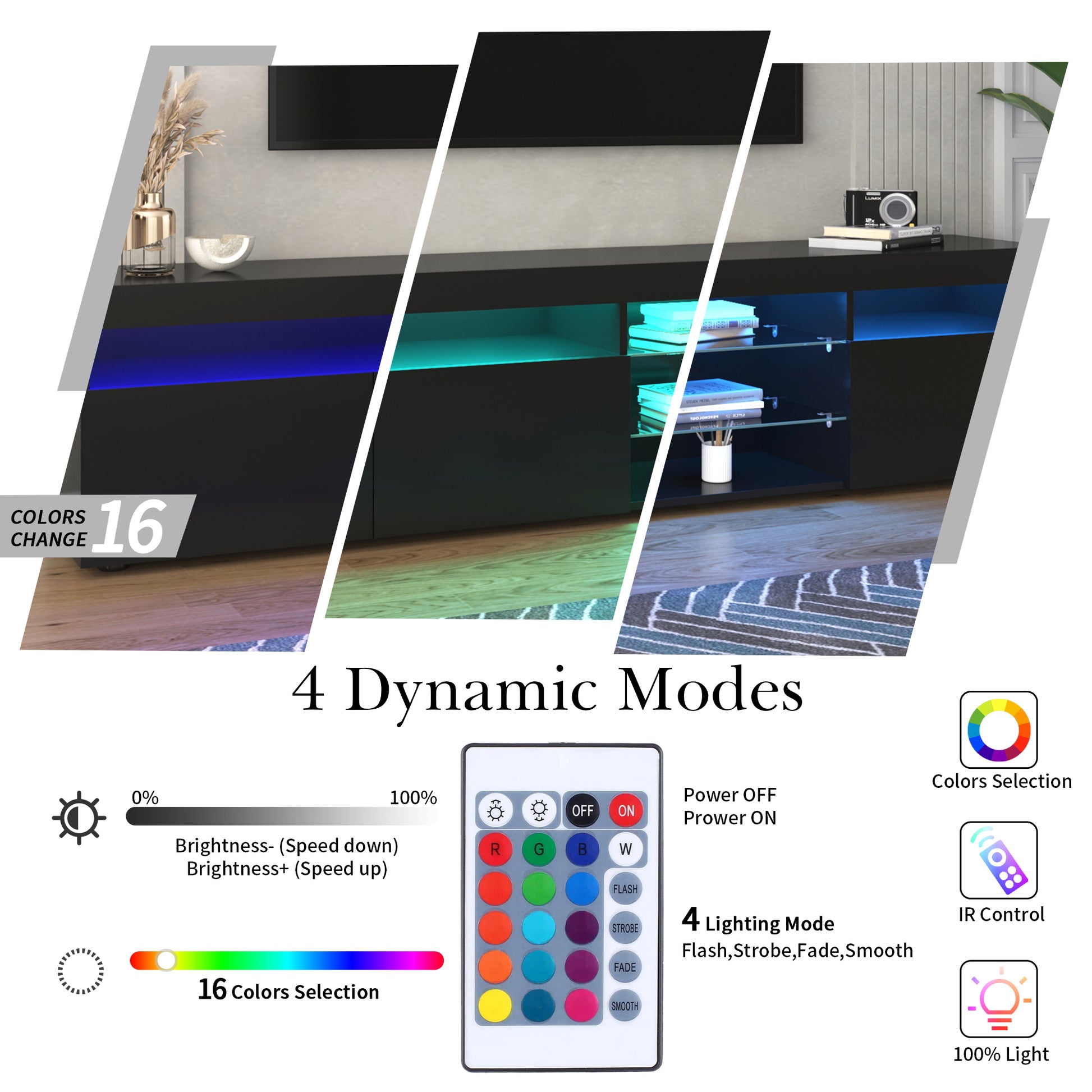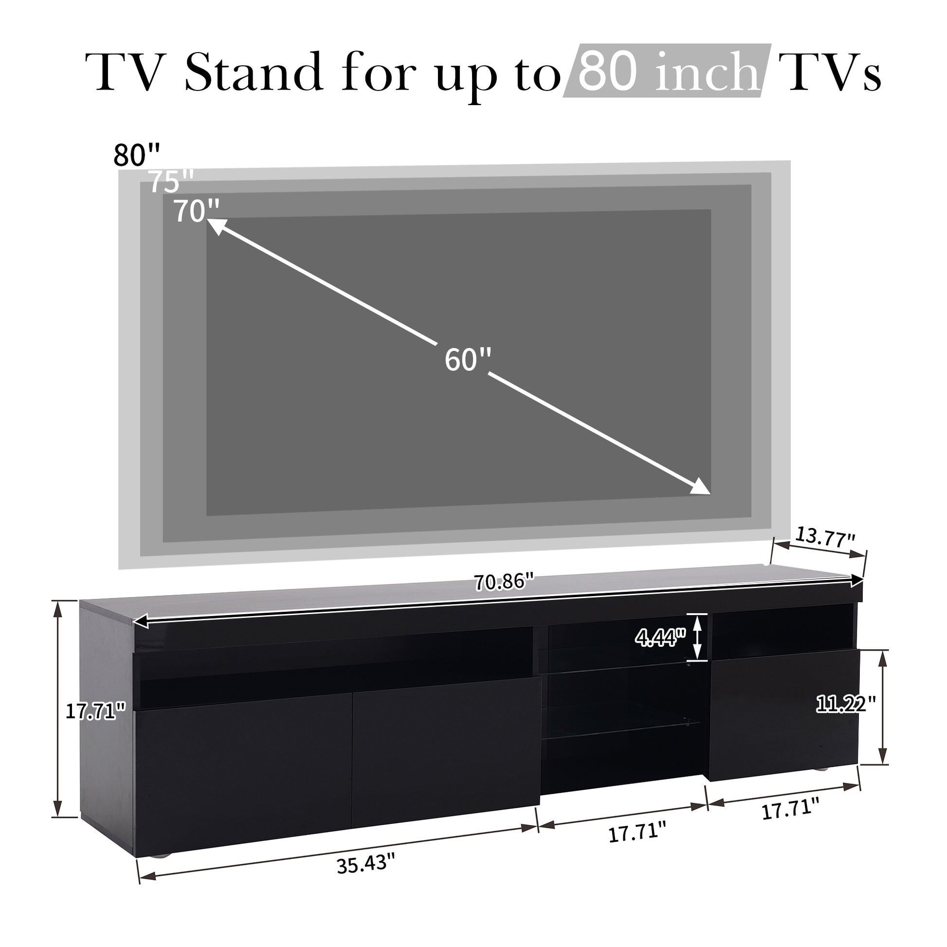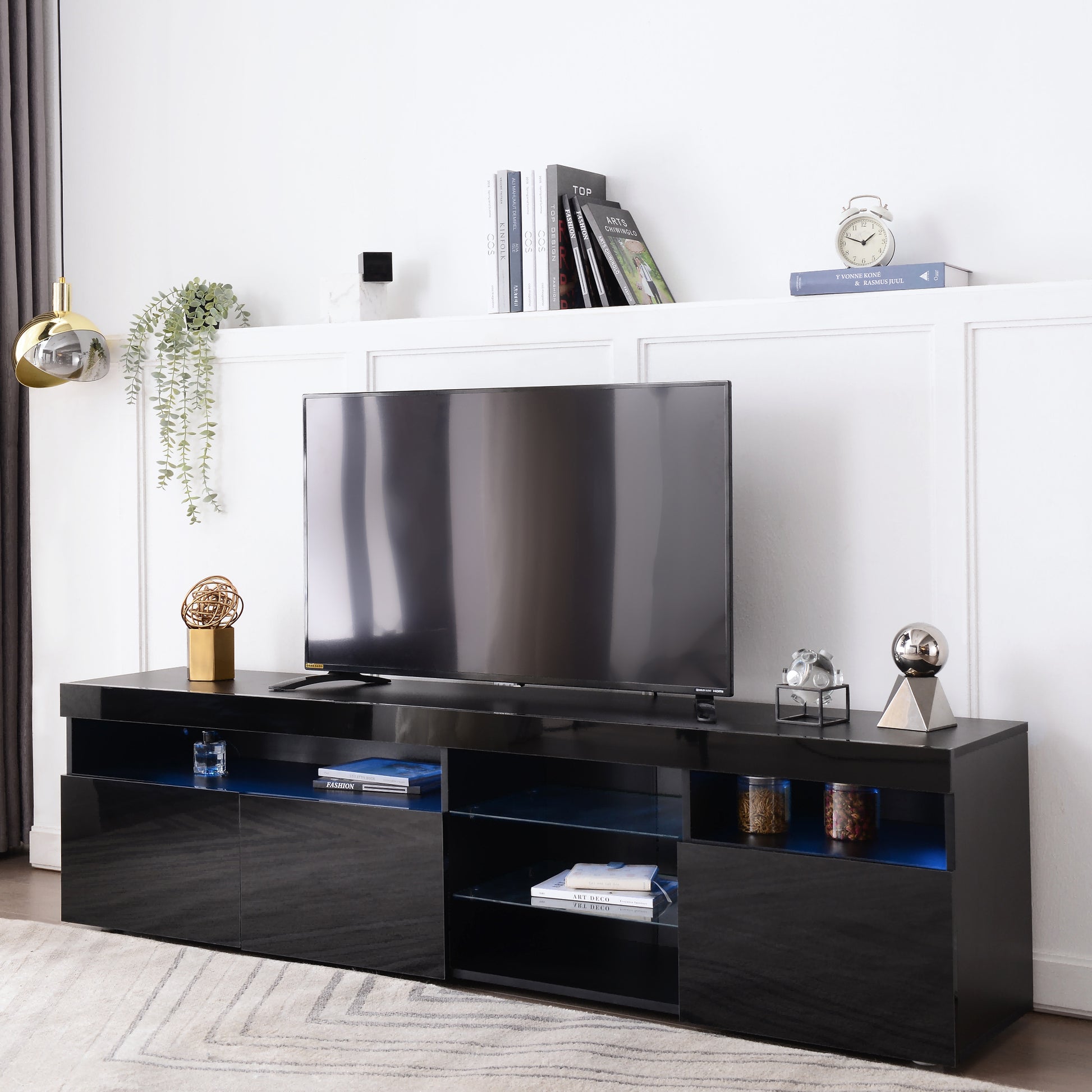Modern Design Tv Stands For Tvs Up To 80'', Led Light Entertainment Center, Media Console With Multi Functional Storage, Tv Cabinet For Living Room,Bedroom, Home Theatre Black Primary Living Space 70 79 Inches 70 79 Inches Particle Board