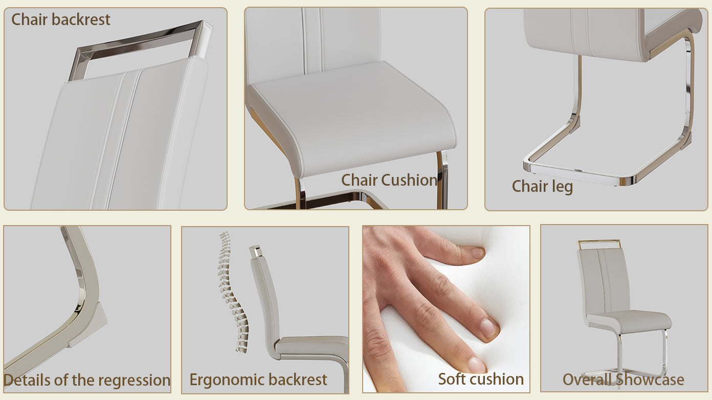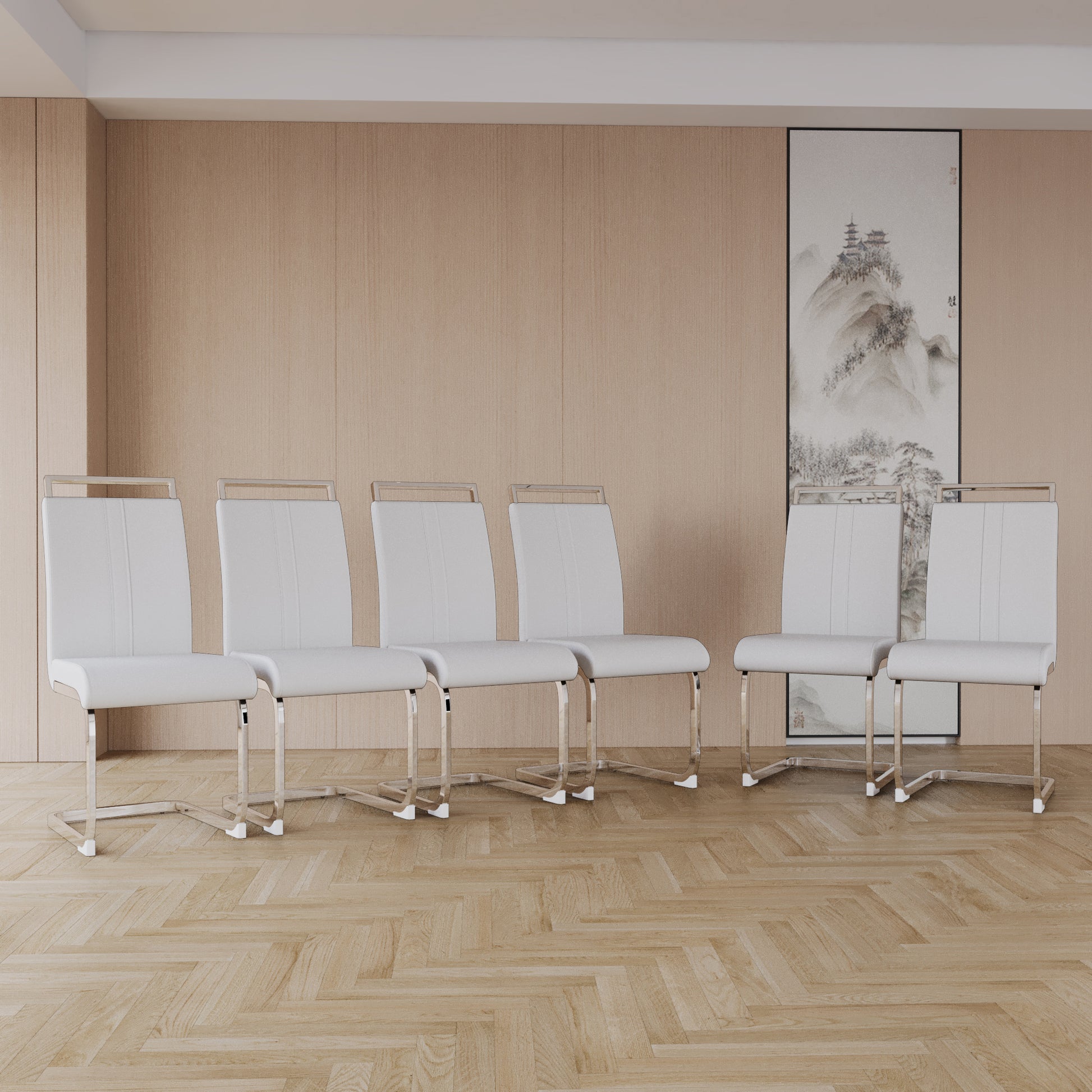 Modern Dining Chairs,Pu Faux Leather High Back Upholstered Side Chair With C Shaped Tube Plating Metal Legs For Dining Room Kitchen Vanity Patio Club Guest Office Chair Set Of 4 White Pu Leather