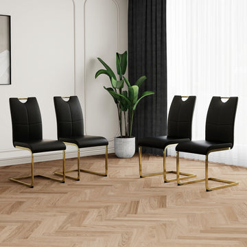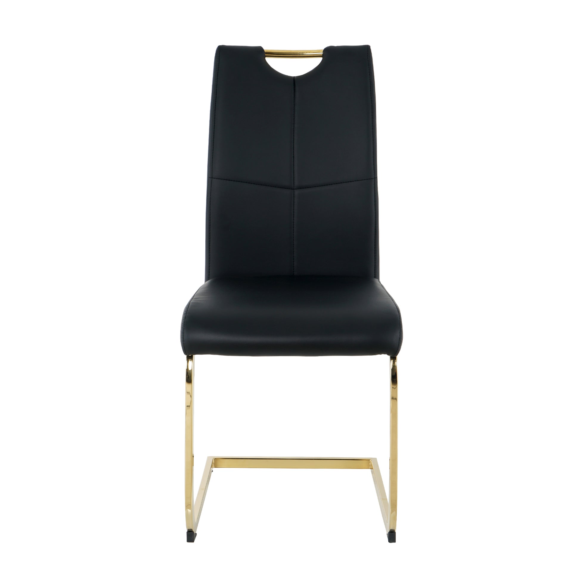 Modern Dining Chairs With Faux Leather Padded Seat Dining Living Room Chairs Upholstered Chair With Gold Metal Legs Design For Kitchen, Living, Bedroom, Dining Room Side Chairs Set Of 4 Black Gold Metal
